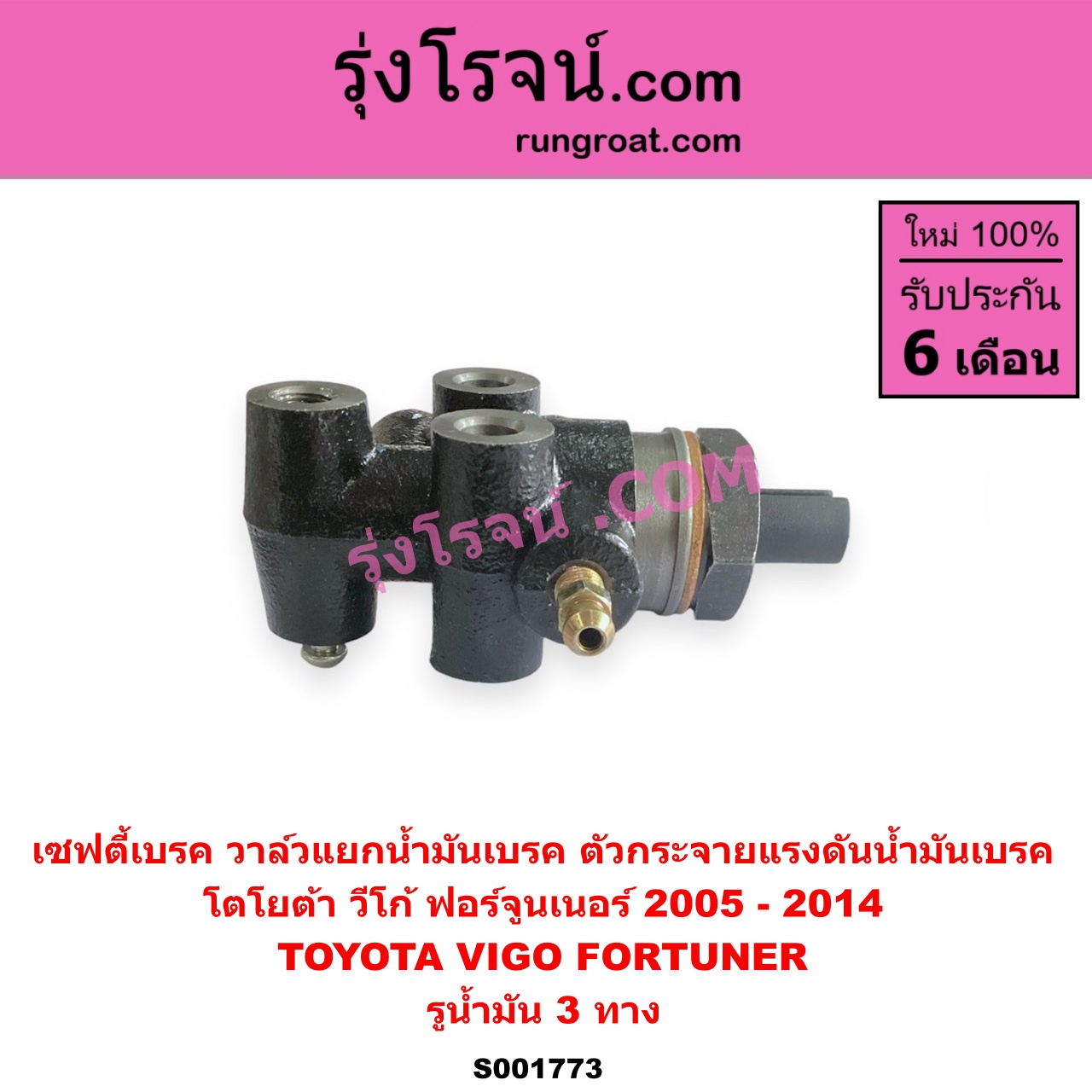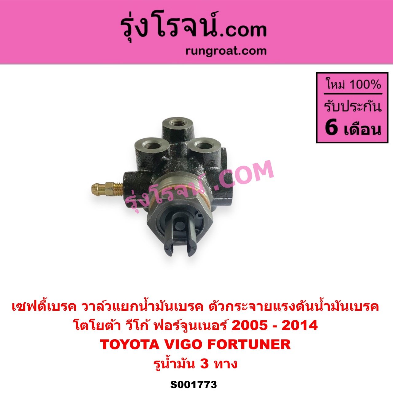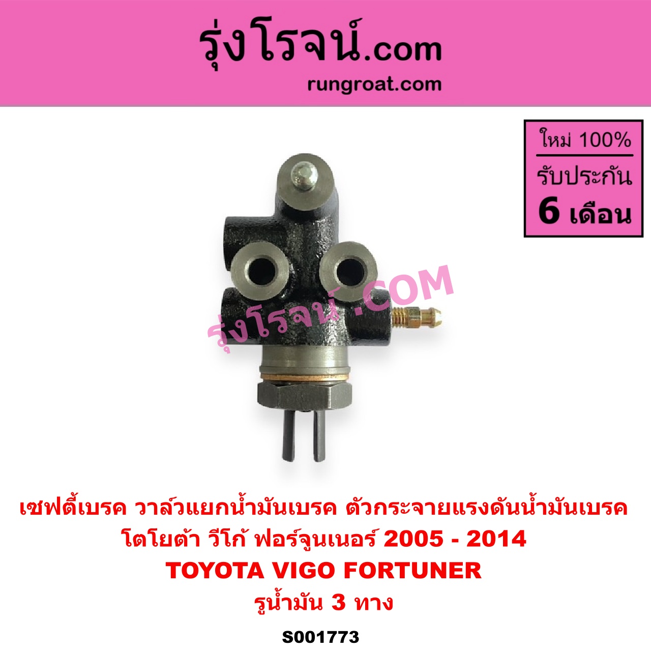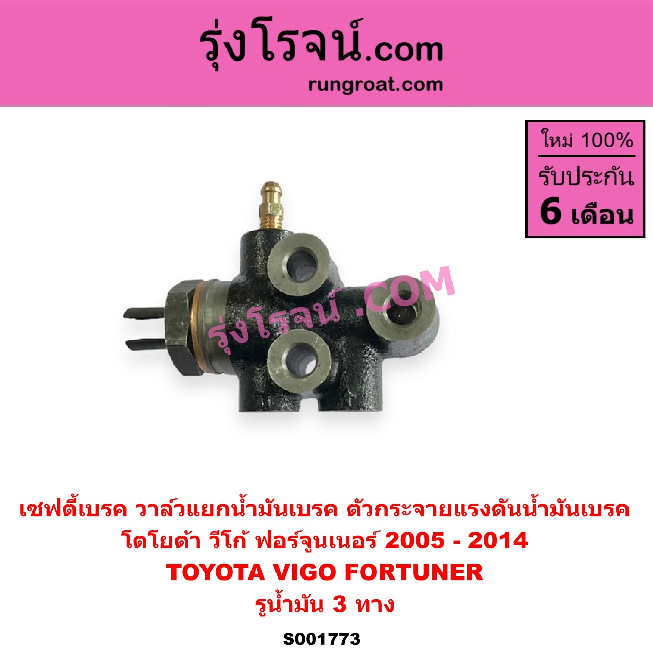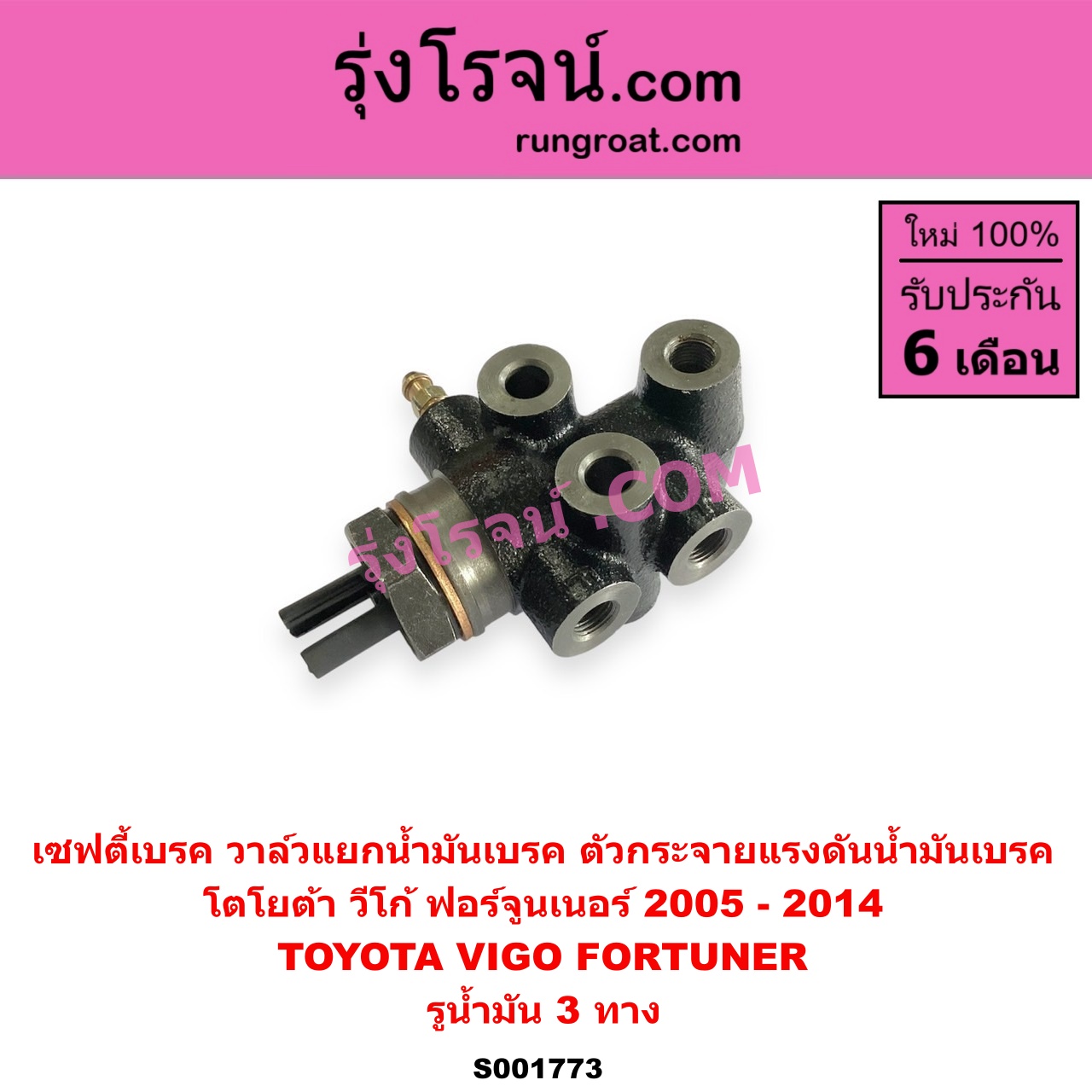 | S001773 | เซฟตี้เบรค (วาล์วแยกน้ำมันเบรค, ตัวกระจายแรงดันน้ำมันเบรค) | TOYOTA (โตโยต้า) / FORTUNER (ฟอร์จูนเนอร์ 05/08/12) (รุ่นแรก) , TOYOTA (โตโยต้า) / VIGO (วีโก้ 04/08/11) |