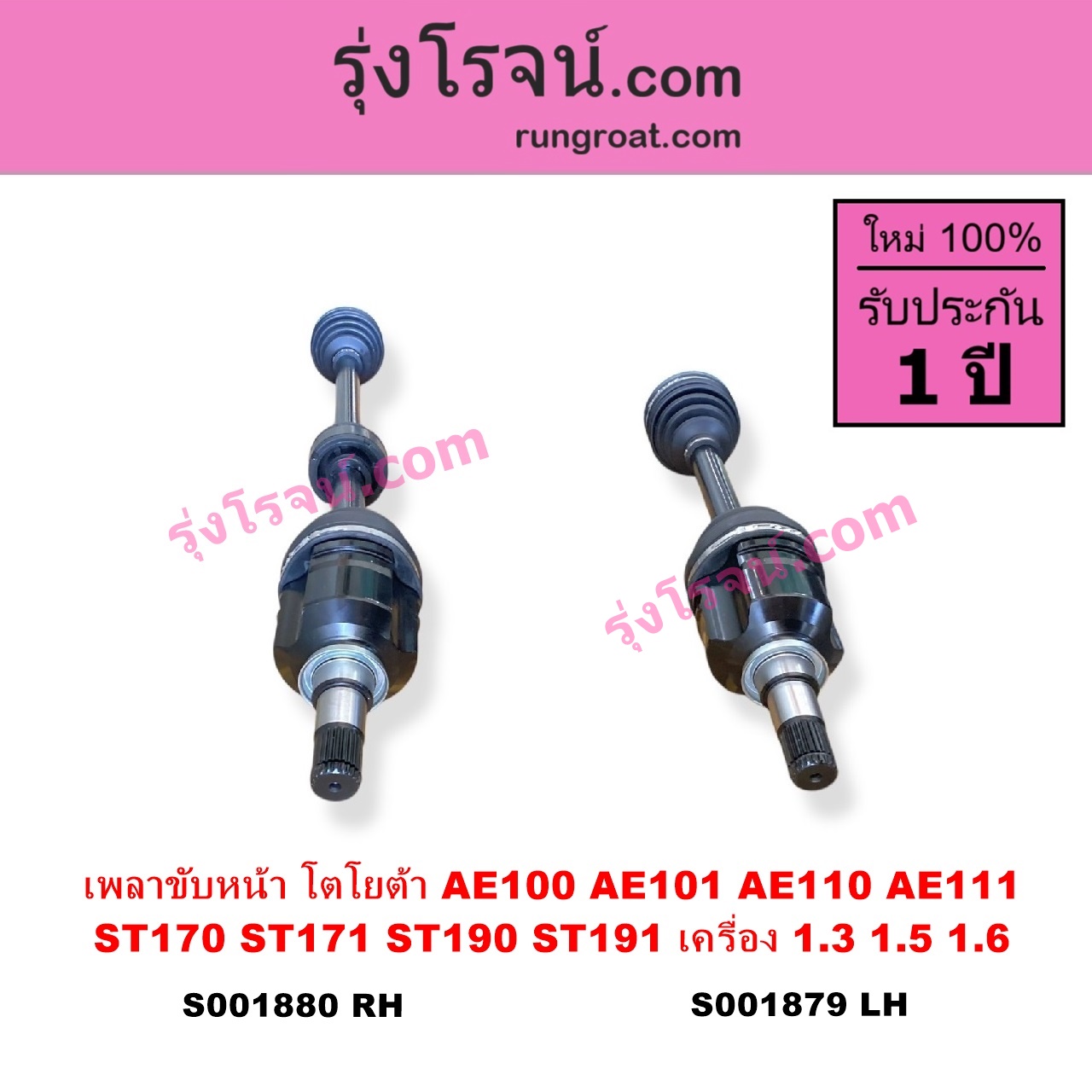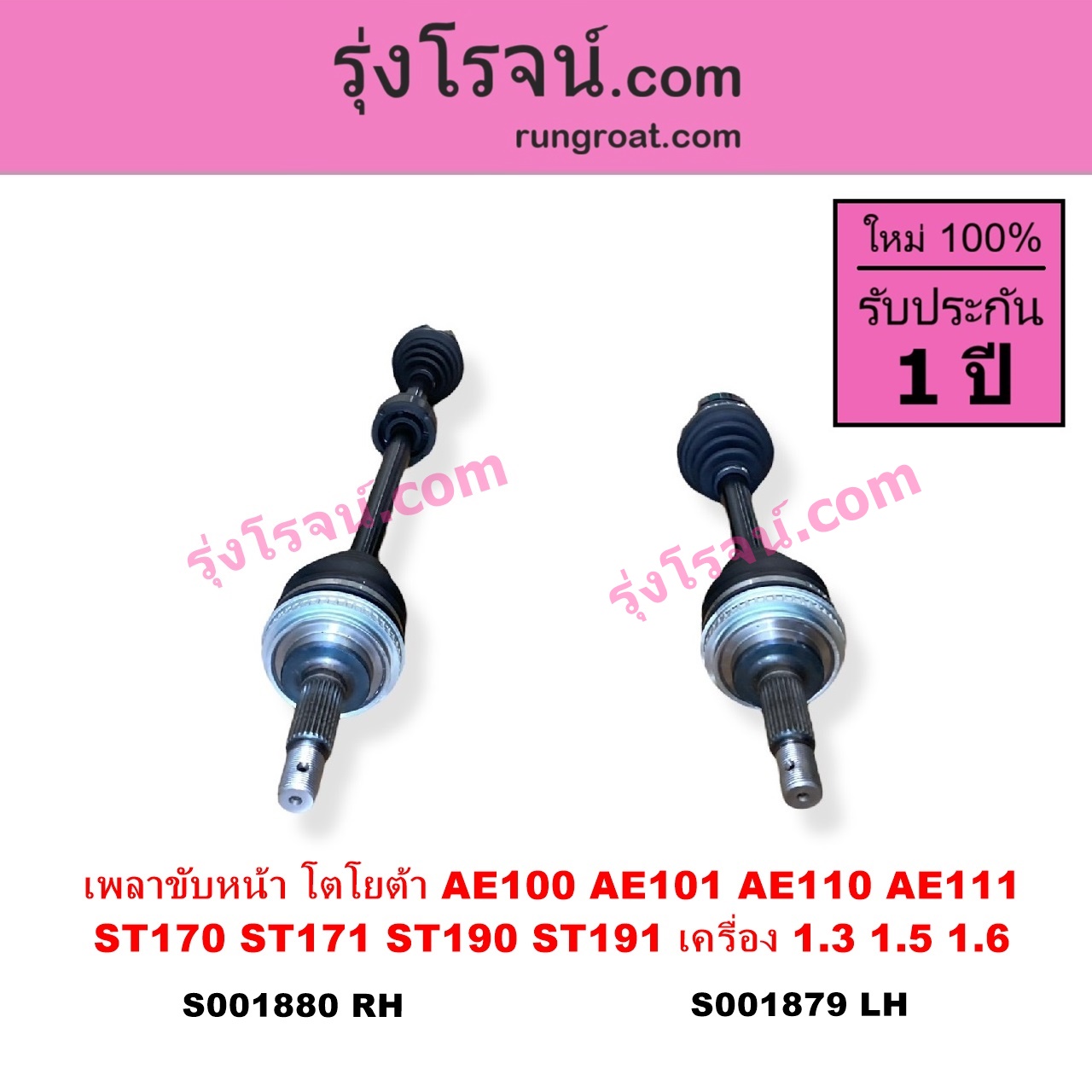 | S001879 | เพลาขับหน้า | TOYOTA (โตโยต้า) / COROLLA (โคโรล่า AE100/101) (สามห่วง) , TOYOTA (โตโยต้า) / COROLLA (โคโรล่า AE110/111) (ตูดเป็ด / ไฮทอร์ค) , TOYOTA (โตโยต้า) / CORONA (โคโรน่า ST170/172) , TOYOTA (โตโยต้า) / CORONA (โคโรน่า ST190/191/EXSIOR) (ท้ายโด่ง) |