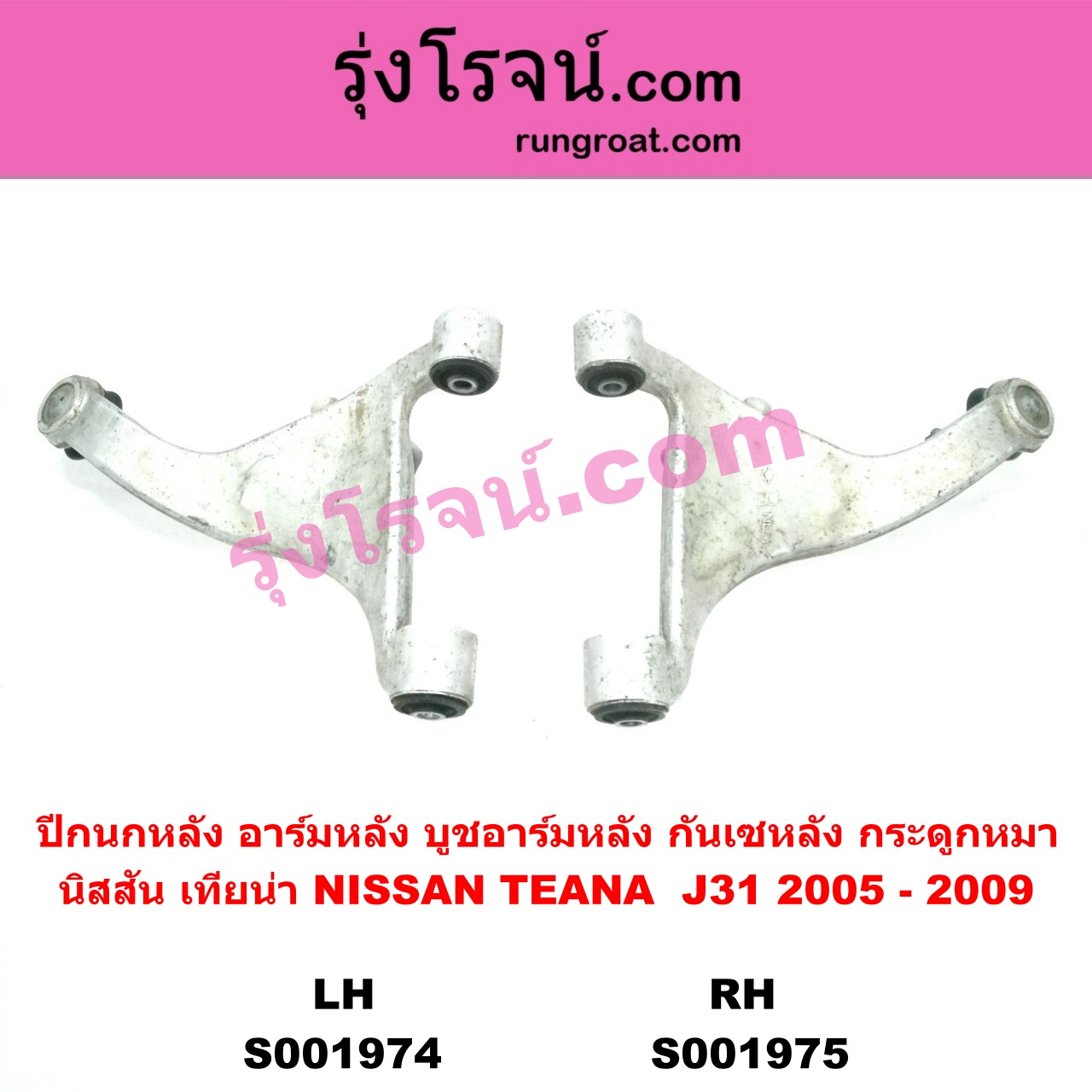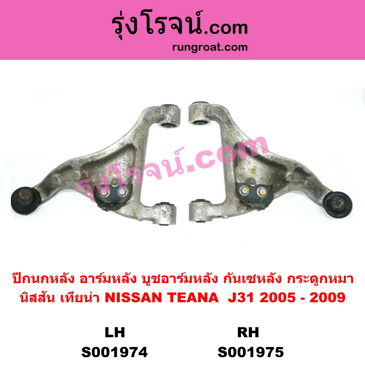 | S001975 | ปีกนกหลัง, อาร์มหลัง, บูชอาร์มหลัง, กันเซหลัง, กระดูกหมา | NISSAN (นิสสัน) / TEANA (เทียน่า J31 2005 – 2009) | (หลัง) RH | เก่าแท้ |
