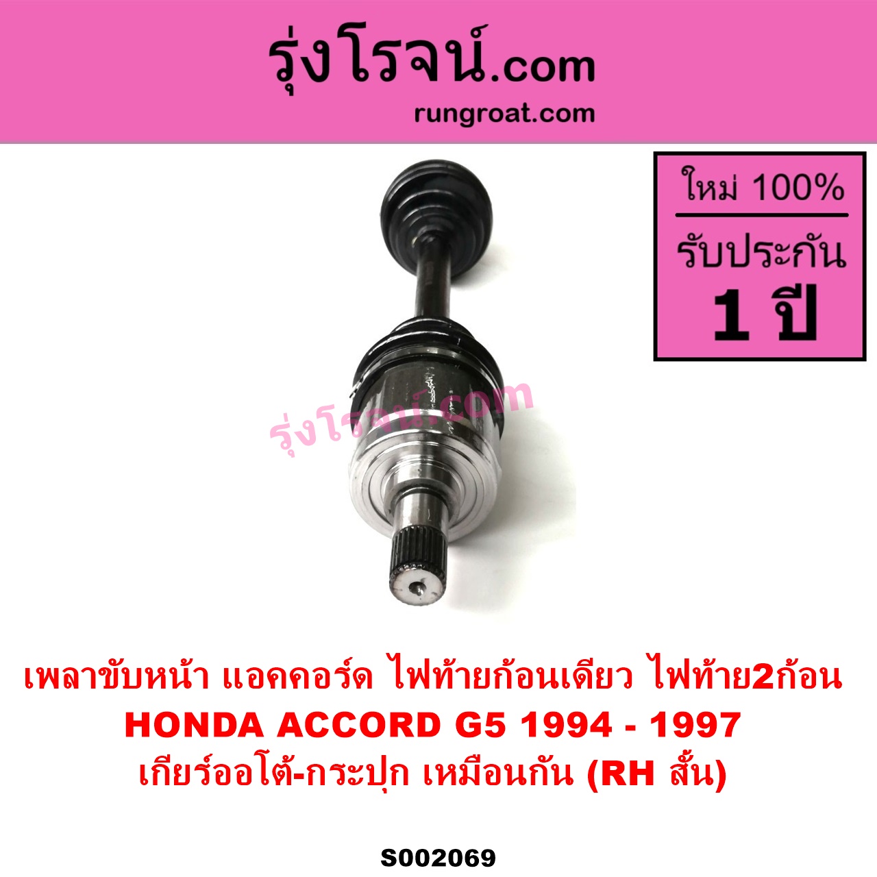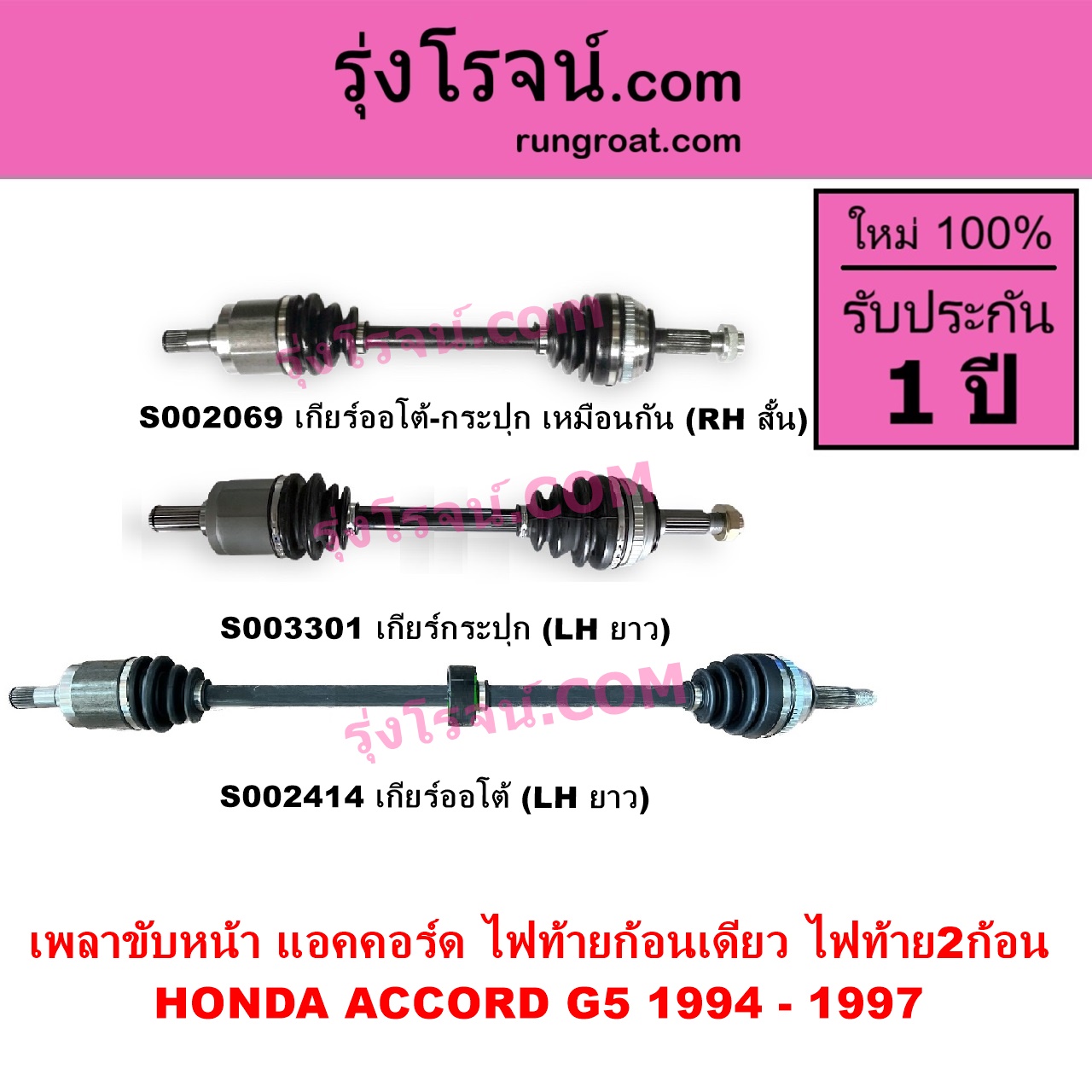 | S002069 | เพลาขับหน้า | HONDA (ฮอนด้า) / ACCORD (แอคคอร์ด 1994 – 1997) (ไฟท้ายก้อนเดียว / ไฟท้าย2ก้อน / G5) | (ABS) (เกียร์ออโต้-กระปุก เหมือนกัน) (RH สั้น) | ไต้หวัน (ใหม่) |