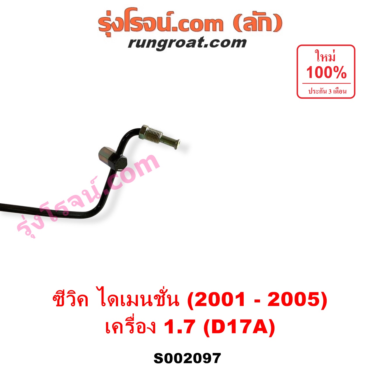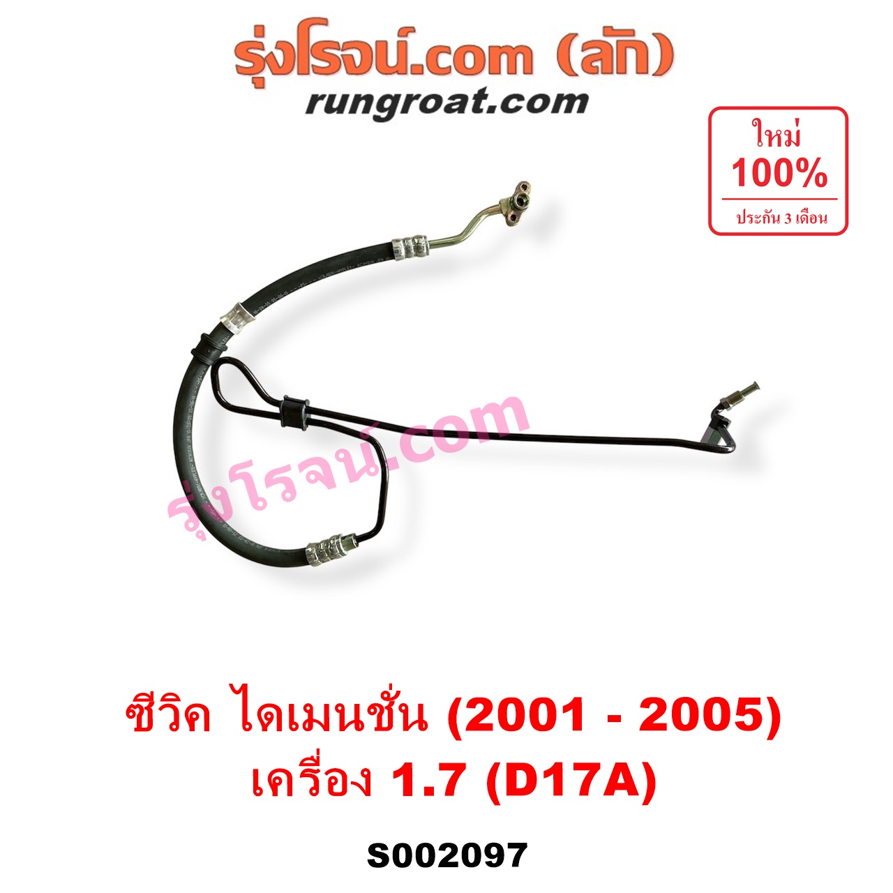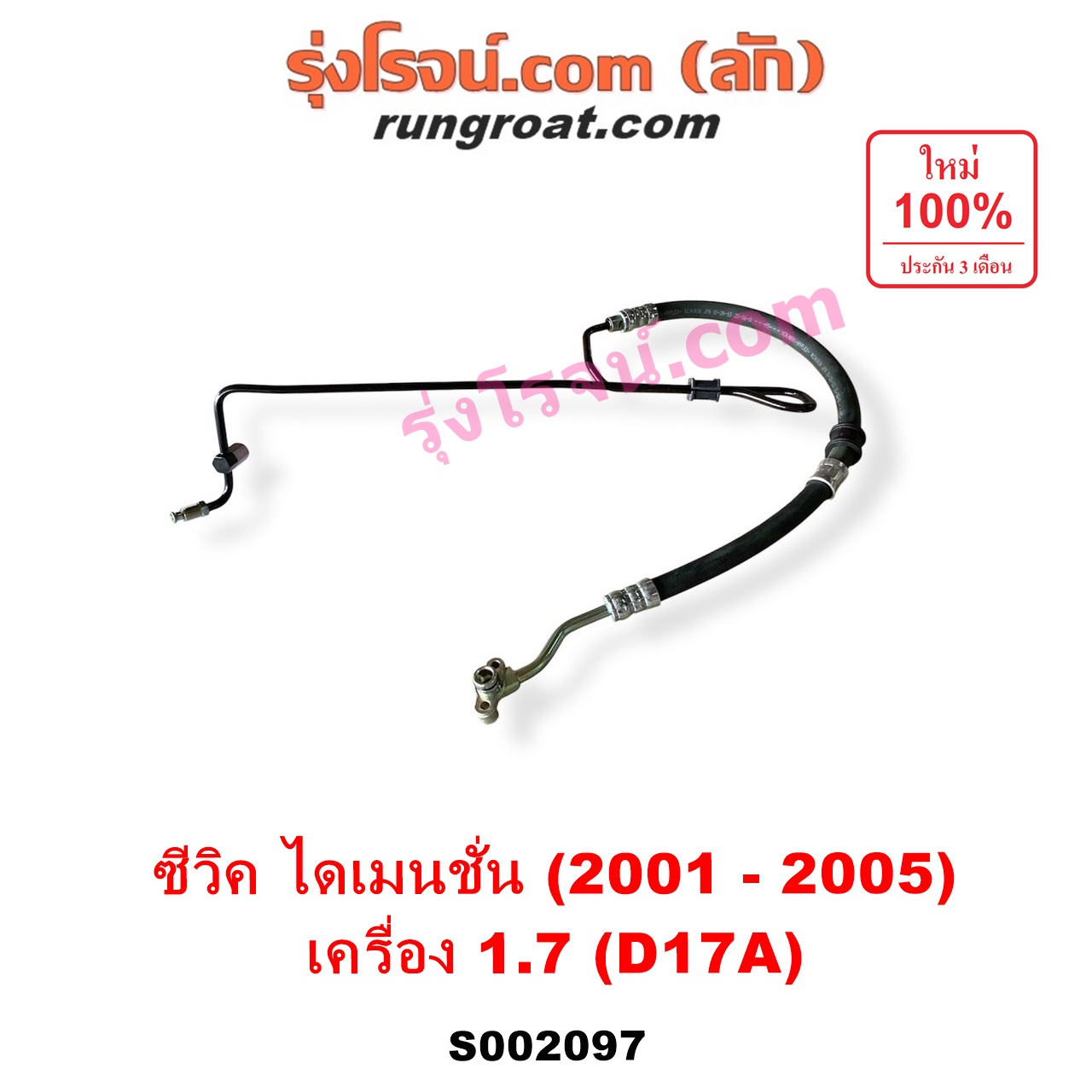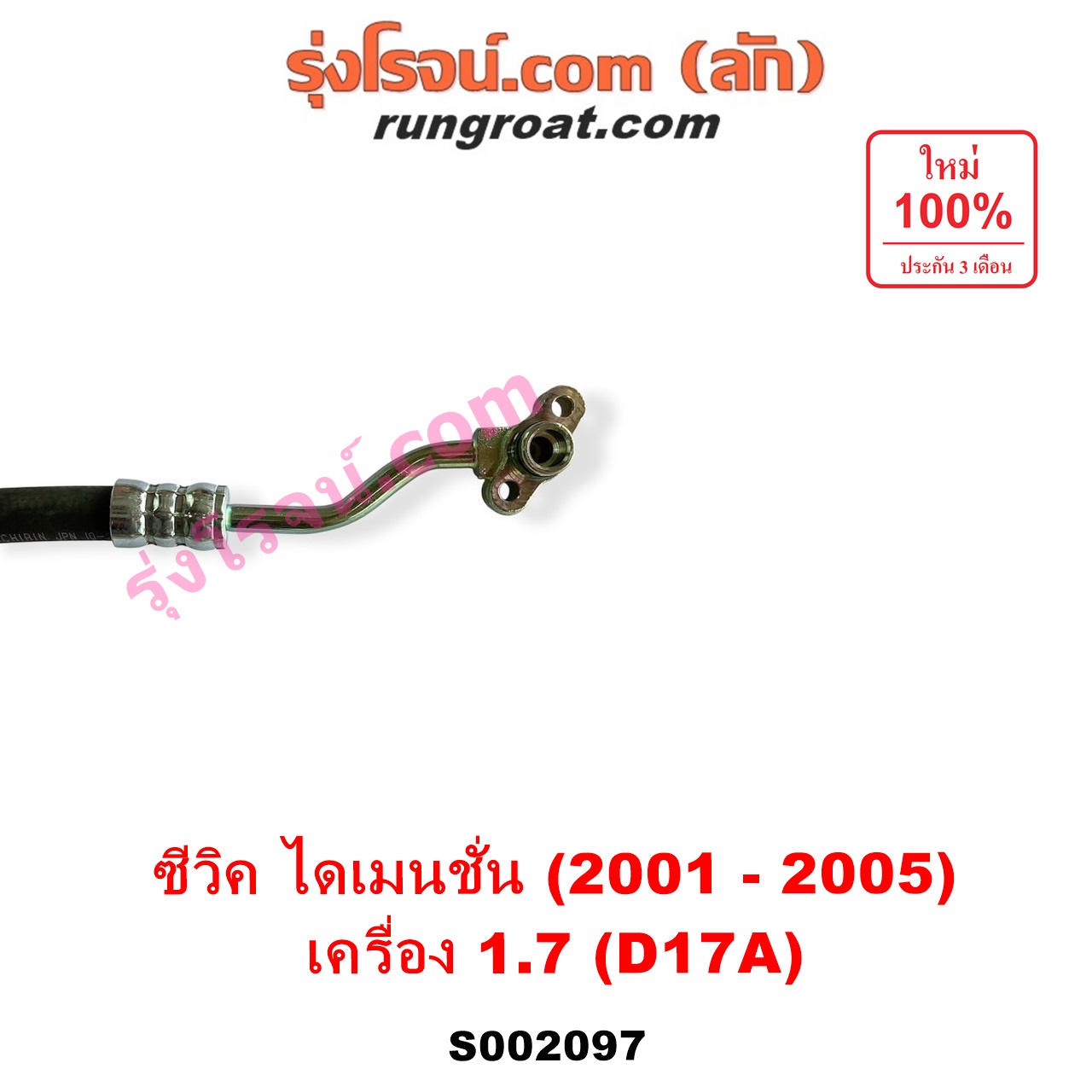 | S002097 | สายน้ำมันเพาเวอร์ (สายท่อแรงดันพาวเวอร์) | HONDA (ฮอนด้า) / CIVIC (ซีวิค 01/04) (ไดเมนชั่น) | เครื่อง 1700 (D17A) | ไต้หวัน (ใหม่) |