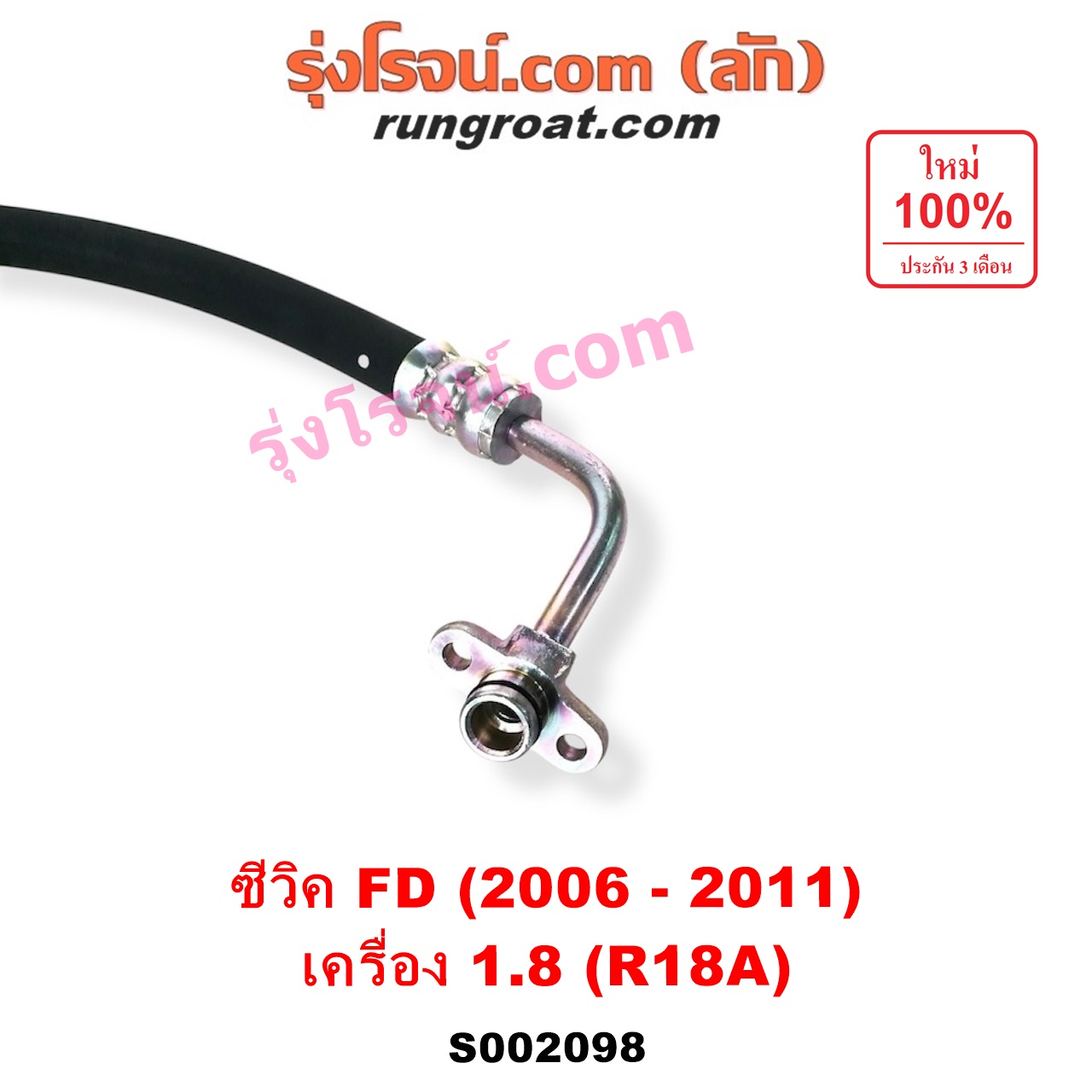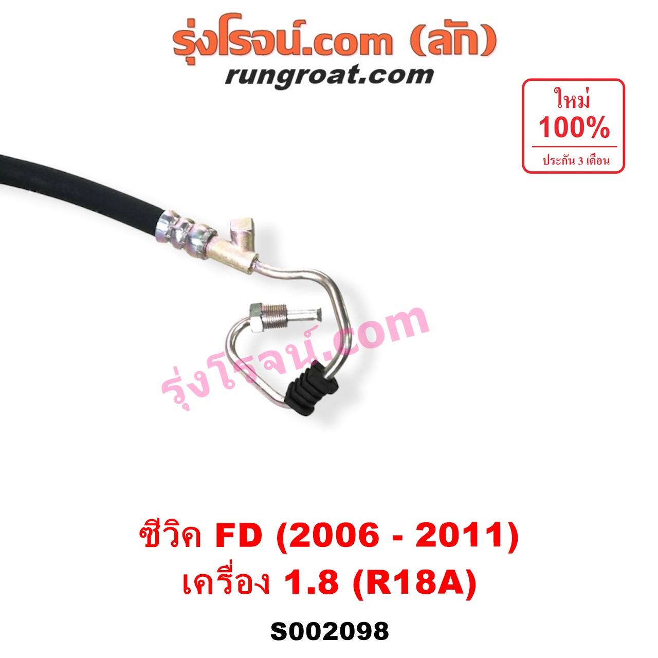 | S002098 | สายน้ำมันเพาเวอร์ (สายท่อแรงดันพาวเวอร์) | HONDA (ฮอนด้า) / CIVIC (ซีวิค 06/09) (FD / นางฟ้า) | เครื่อง 1800 (R18A) | ไต้หวัน (ใหม่) |