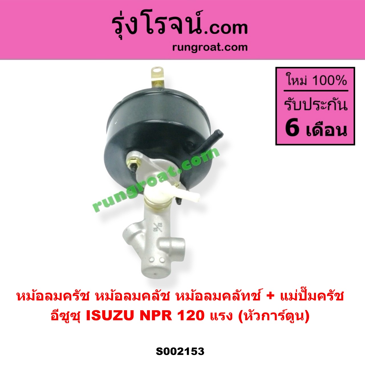 S002153 หม้อลมครัช (หม้อลมคลัช, หม้อลมคลัทช์) + แม่ปั๊มครัช ISUZU (อีซูซุ) / NPR / NQR (เอ็นพีอาร์ / เอ็นคิวอาร์) NPR 120 แรง (หัวการ์ตูน)