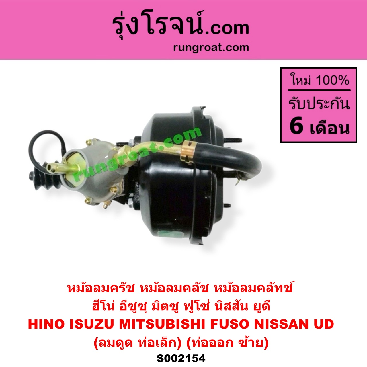 Home » สินค้า » S002154 หม้อลมครัช (หม้อลมคลัช, หม้อลมคลัทช์) HINO (ฮีโน่) / * HINO รุ่นอื่นๆ , ISUZU (อีซูซุ) / * ISUZU รุ่นอื่นๆ , MITSUBISHI (มิตซู) / FUSO (ฟูโซ่) , NISSAN (นิสสัน) / UD (ยูดี) (ลมดูด) (ท่อเล็ก) (ท่อออก ซ้าย)