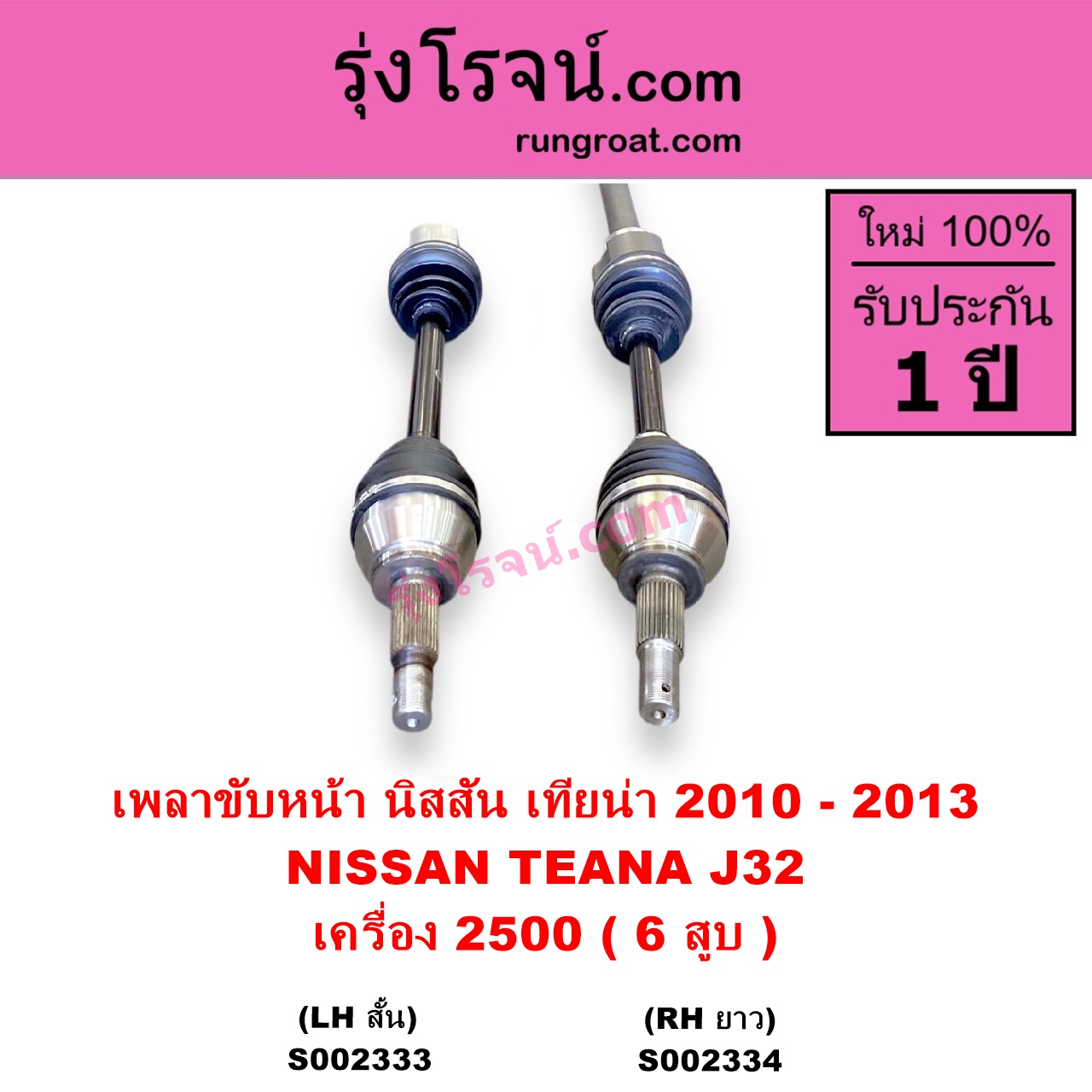 | S002334 | เพลาขับหน้า | NISSAN (นิสสัน) / TEANA (เทียน่า J32 2010 – 2013) | เครื่อง 2500 (6 สูบ) (RH ยาว) | ไต้หวัน (ใหม่) |