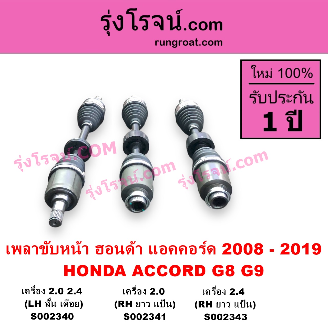 | S002341 | เพลาขับหน้า | HONDA (ฮอนด้า) / ACCORD (แอคคอร์ด 2008 – 2012) (G8) , HONDA (ฮอนด้า) / ACCORD (แอคคอร์ด 2013 – 2019 ไฮบริด) (G9) |