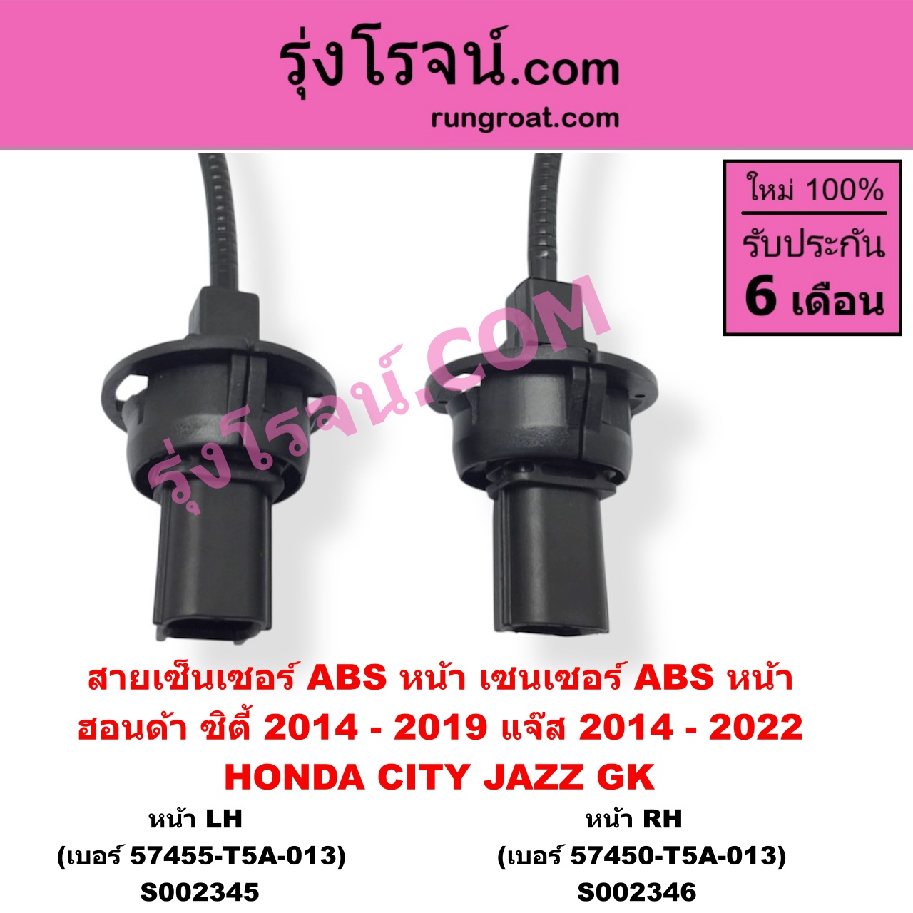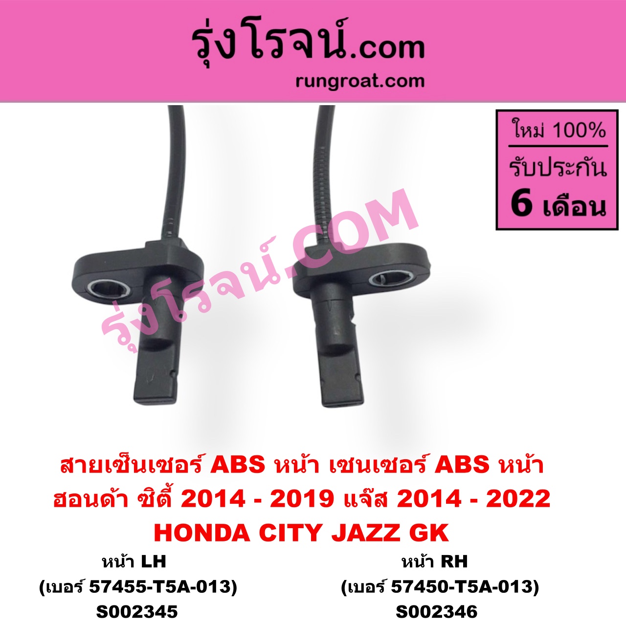 | S002346 | สายเซ็นเซอร์ ABS หน้า | HONDA (ฮอนด้า) / CITY (ซิตี้ 2014 – 2019) , HONDA (ฮอนด้า) / JAZZ (แจ๊ส 2014 – 2022) (GK) |