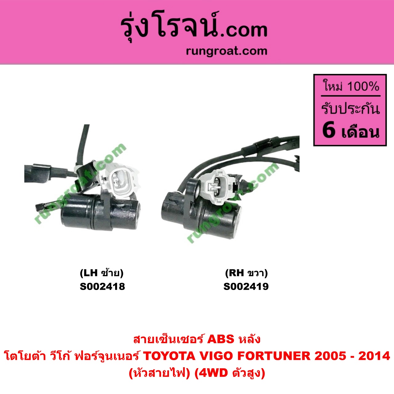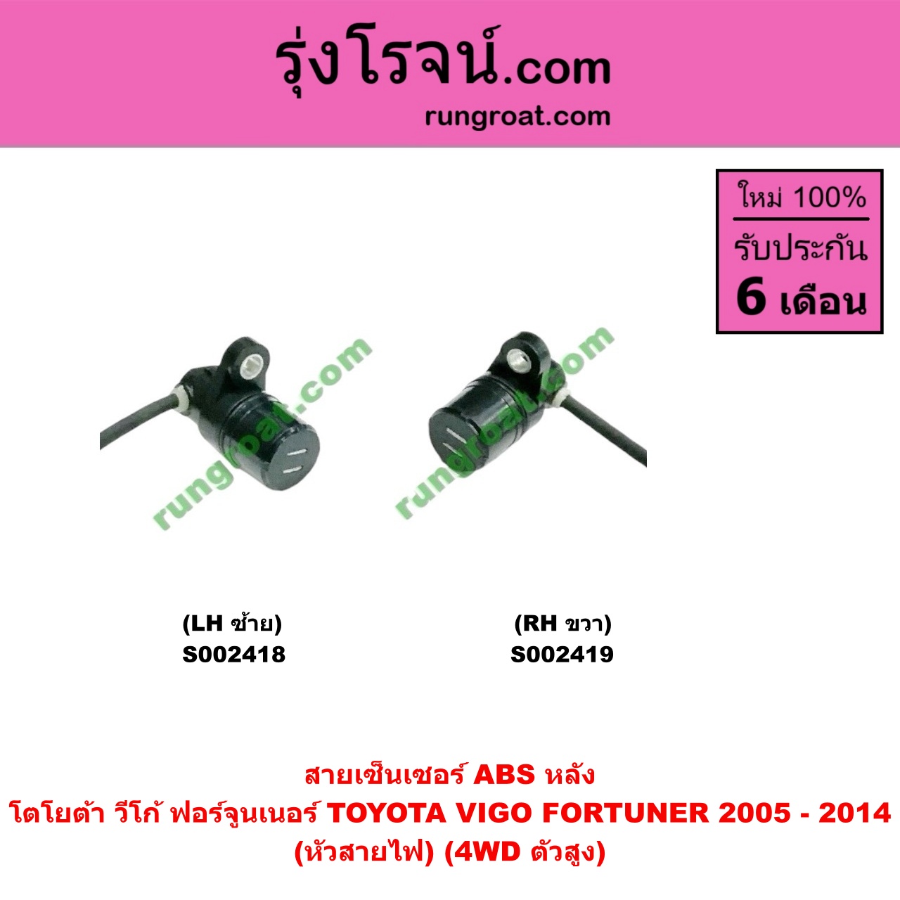 S002418 สายเซ็นเซอร์ ABS หลัง TOYOTA (โตโยต้า) / FORTUNER (ฟอร์จูนเนอร์ 05/08/12) (รุ่นแรก) , VIGO (วีโก้ 04/08/11) (หัวสายไฟ) (4WD ตัวสูง) LH