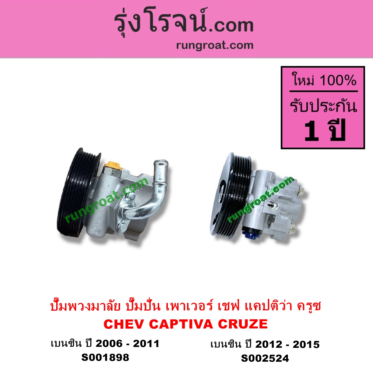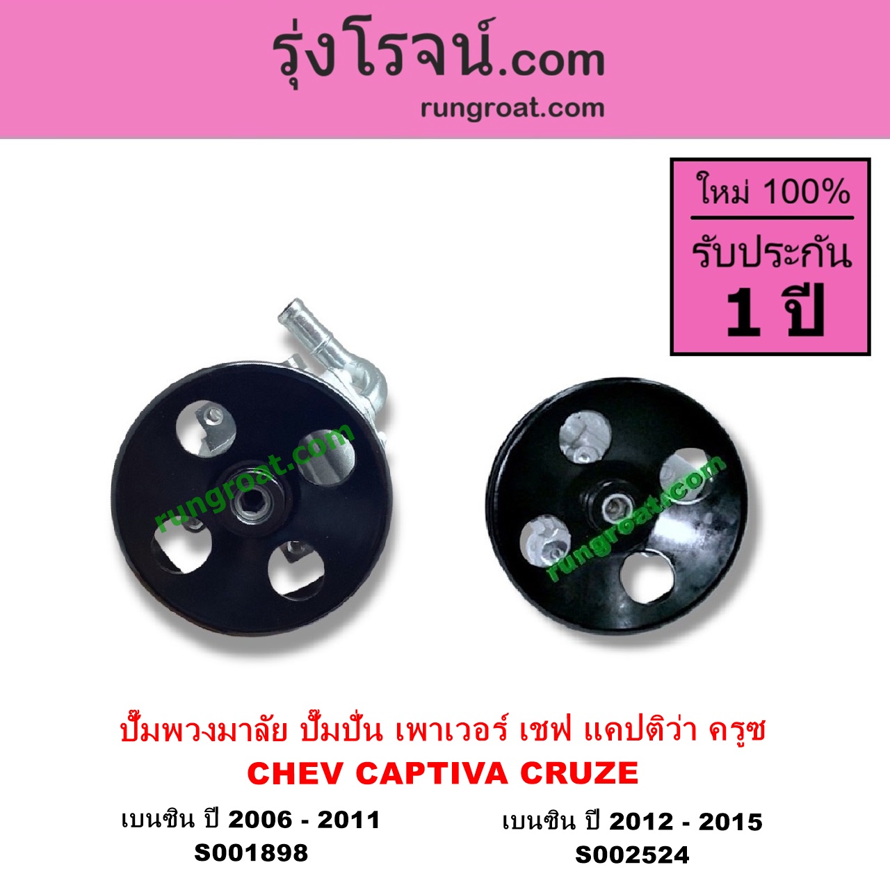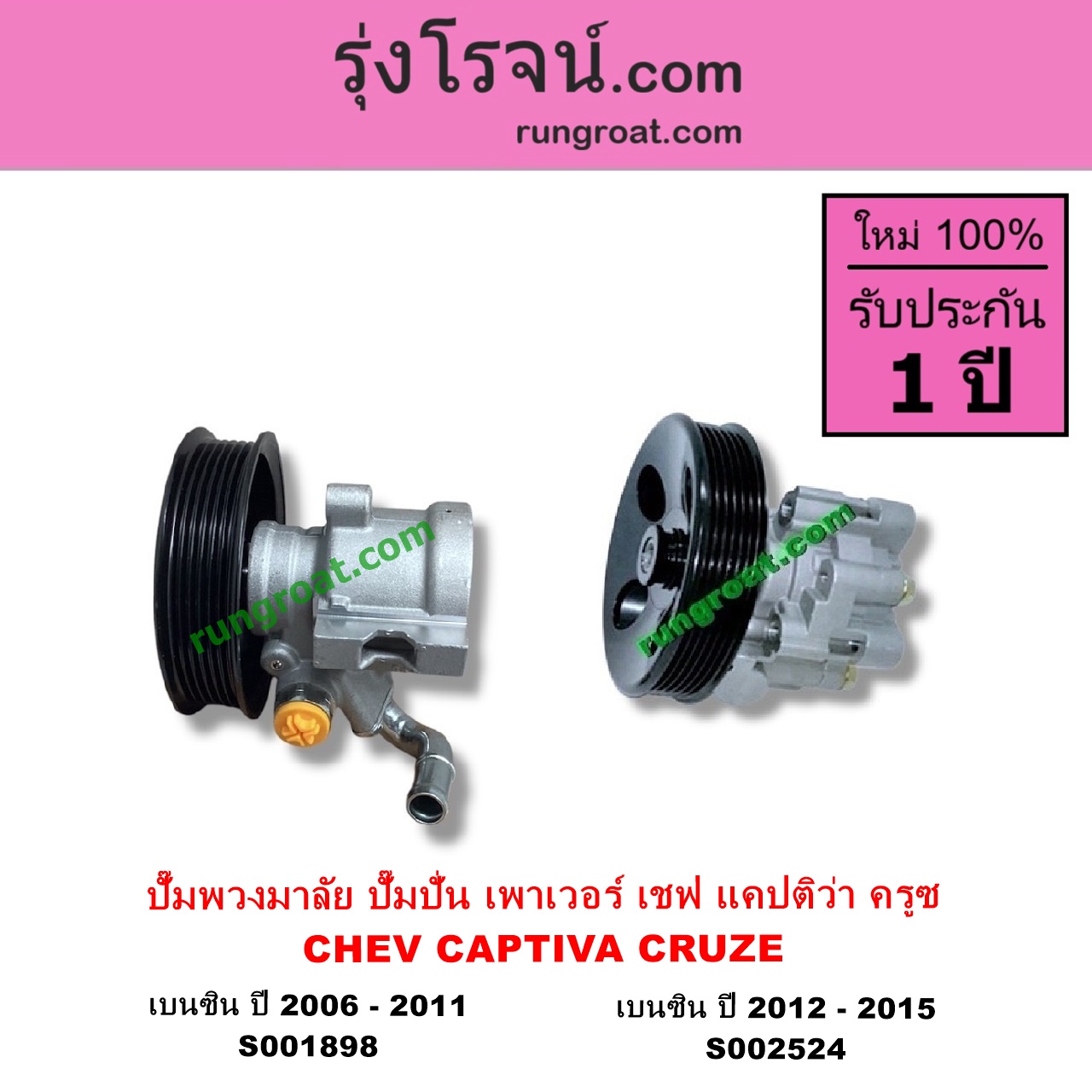 | S002524 | ปั๊มปั่นเพาเวอร์ (ปั๊มพวงมาลัย ตัวปั่น เพาเวอร์) | CHEVROLET (เชฟโรเลต) / CAPTIVA (แคปติว่า 08/12/15) (C100 / C140) , CHEVROLET (เชฟโรเลต) / CRUZE (ครูซ 12/14) |