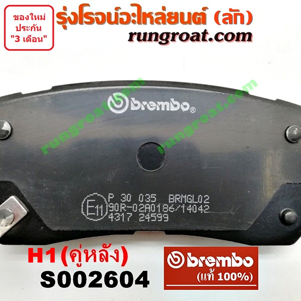Home » สินค้า » S002604 ผ้าเบรค หลัง (คู่ละ) HYUNDAI (ฮุนได) / H1 (เอชวัน) (BLACK ผ้านุ่ม หลังดำ) (BREMBO ยี่ห้อ เบรมโบ้ แท้) (เบอร์ P30 035B)
