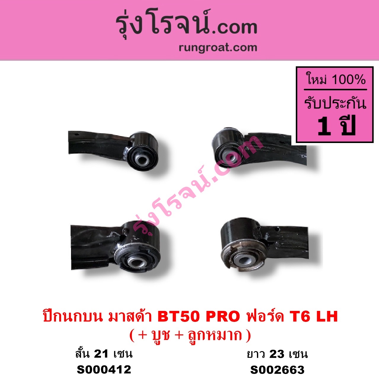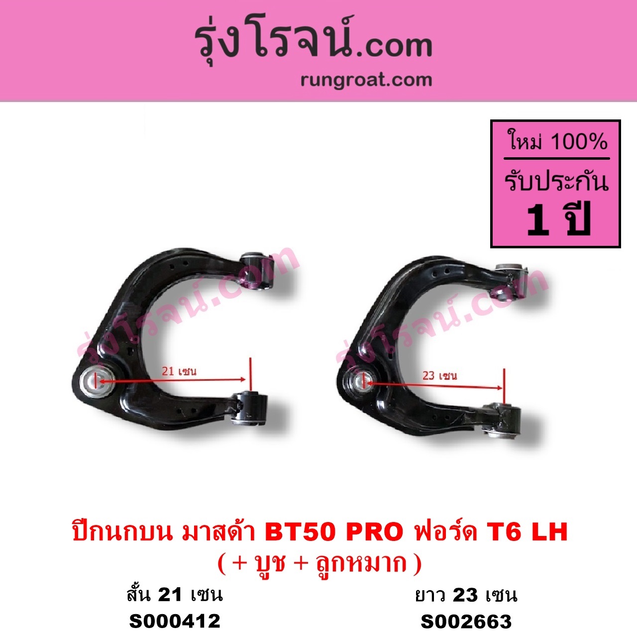 | S002663 | ปีกนกบน (+ บูท + ลูกหมาก) | FORD (ฟอร์ด) / RANGER (เรนเจอร์ T6 T7 2012 – 2021) (ไวล์ดแทรค แร็ปเตอร์ WILD TRAK RAPTOR) , MAZDA (มาสด้า) / BT-50 PRO (บีที 50 โปร 2012 – 2020) |