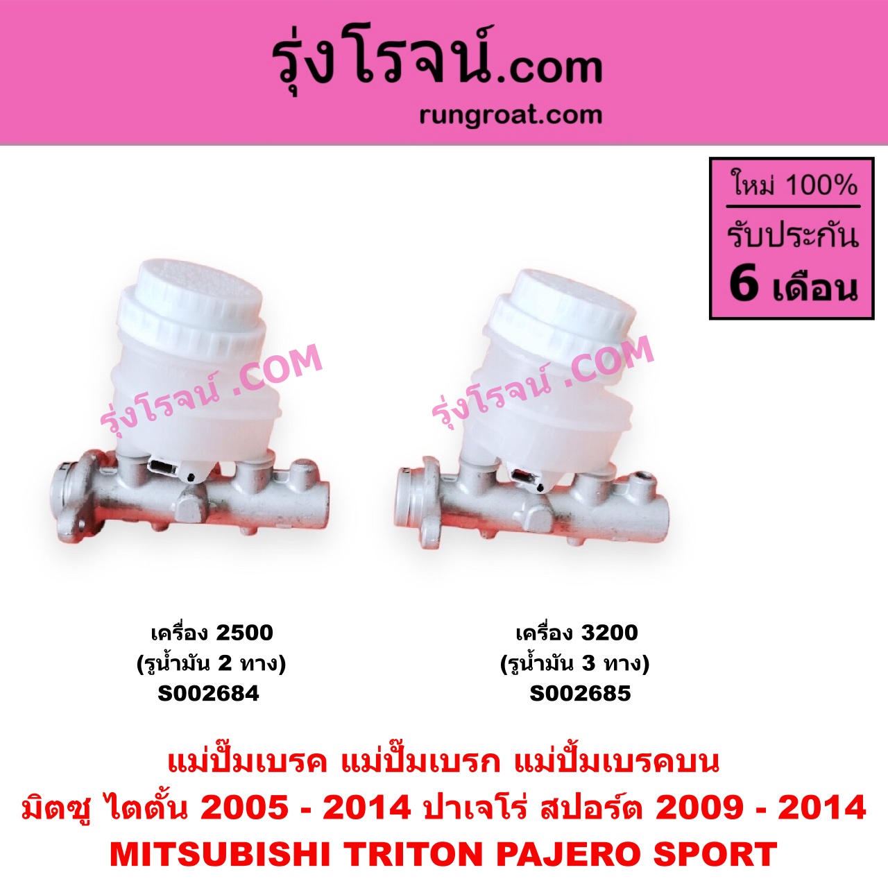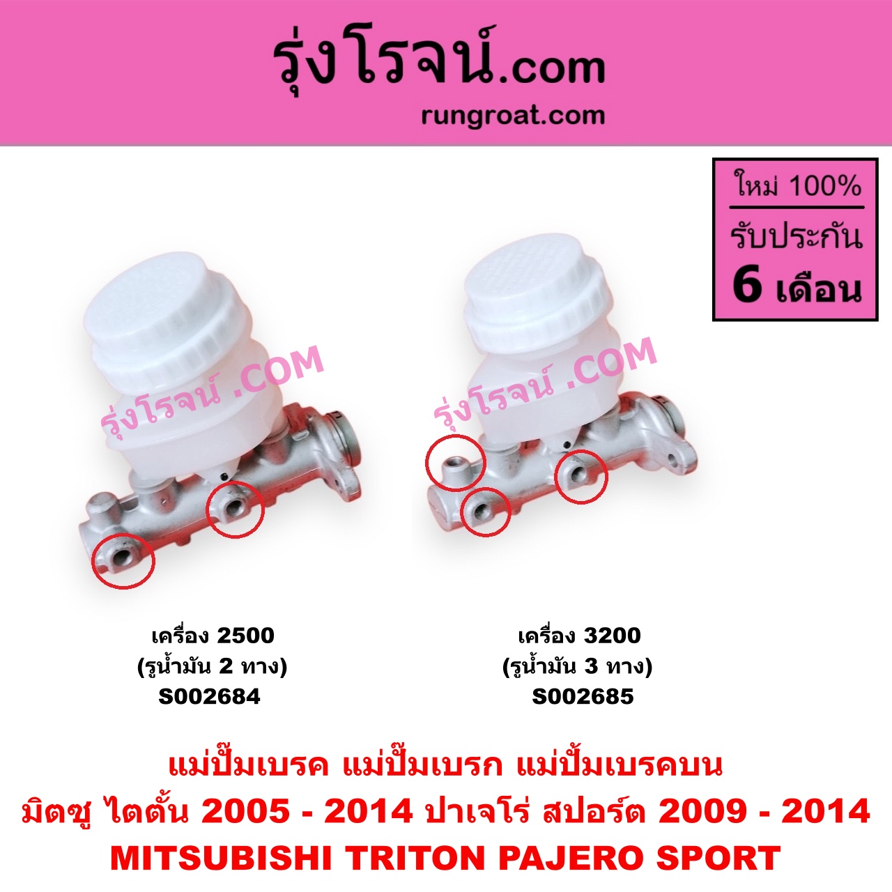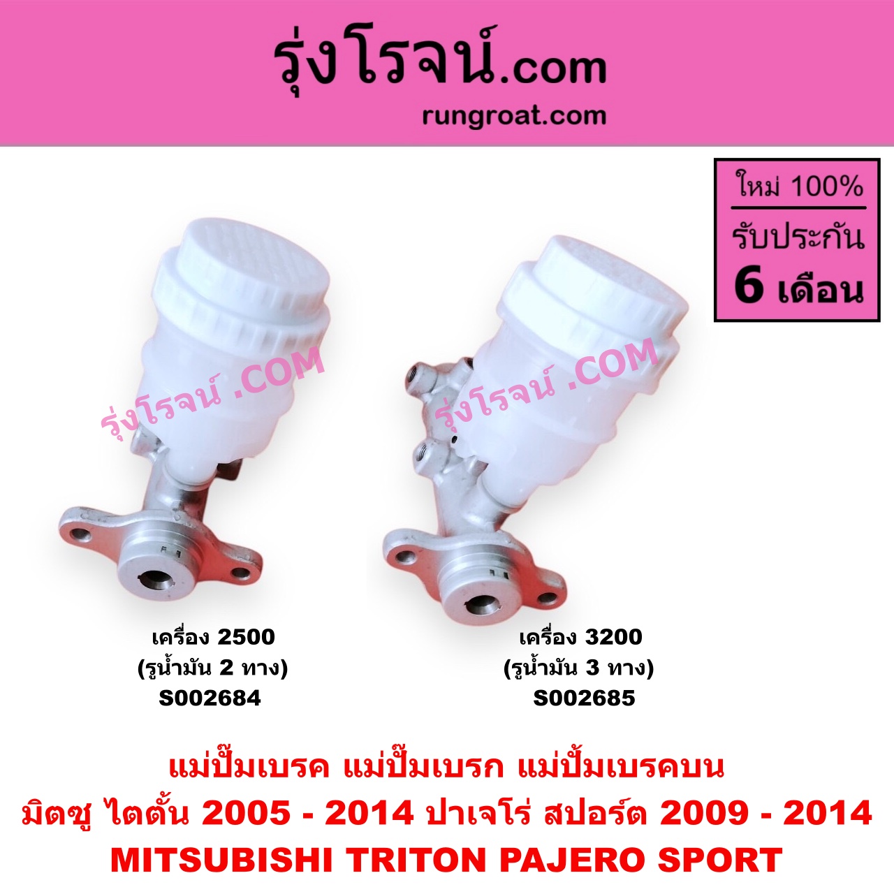 | S002685 | แม่ปั๊มเบรค | MITSUBISHI (มิตซู) / PAJERO SPORT (ปาเจโร่ สปอร์ต 09/12) (รุ่นแรก) , MITSUBISHI (มิตซู) / TRITON (ไทรทัน ไตตั้น 07/09 PLUS) (รุ่นแรก) |