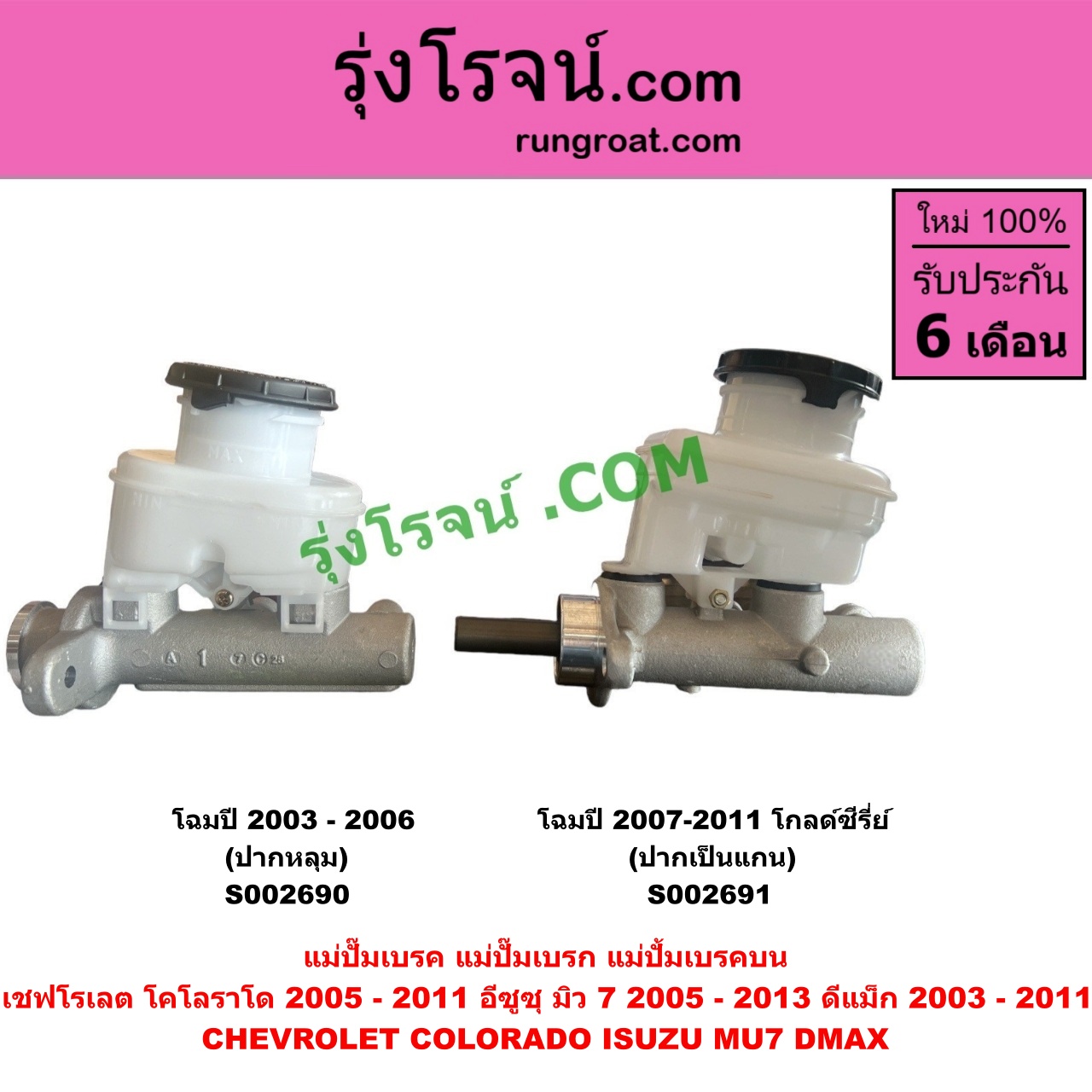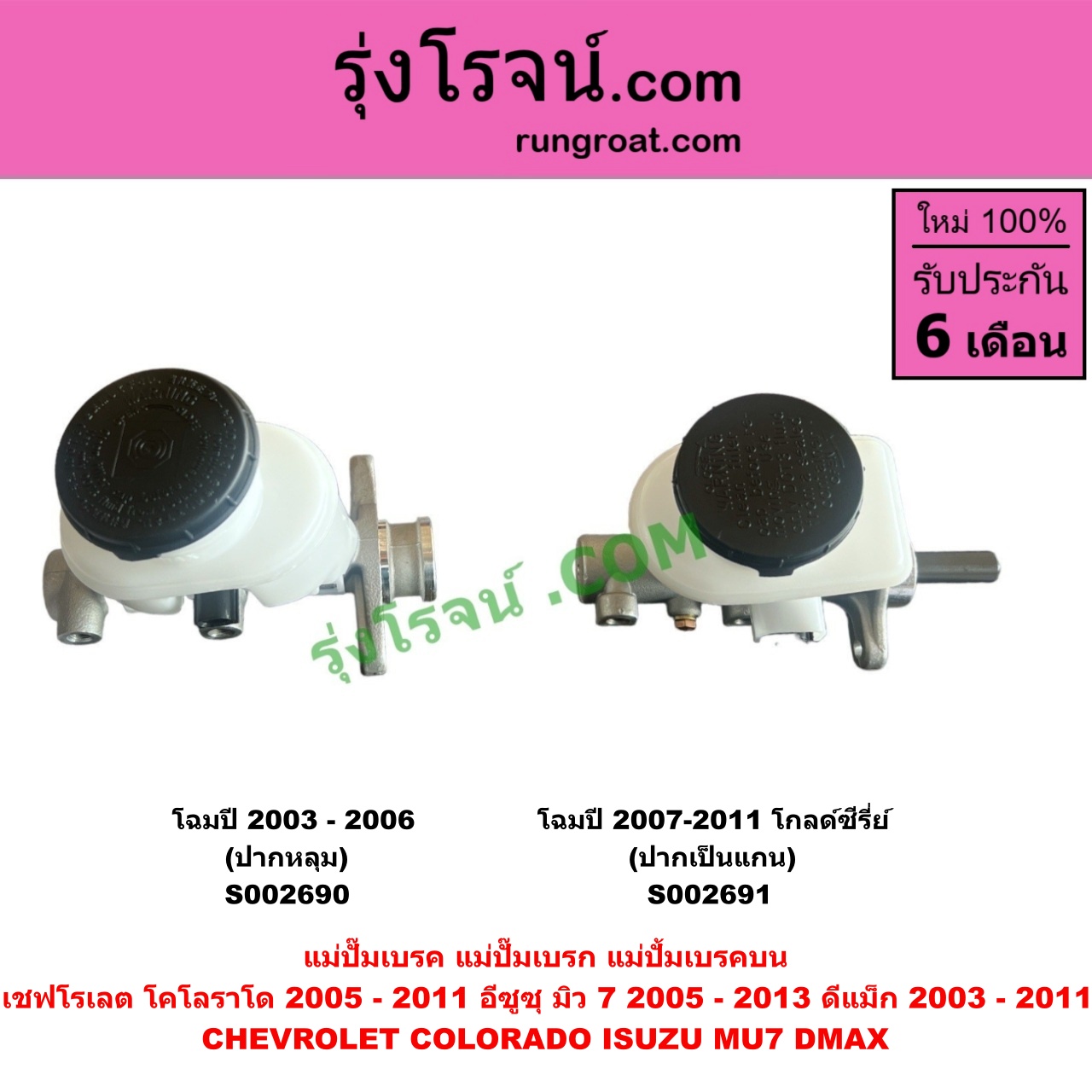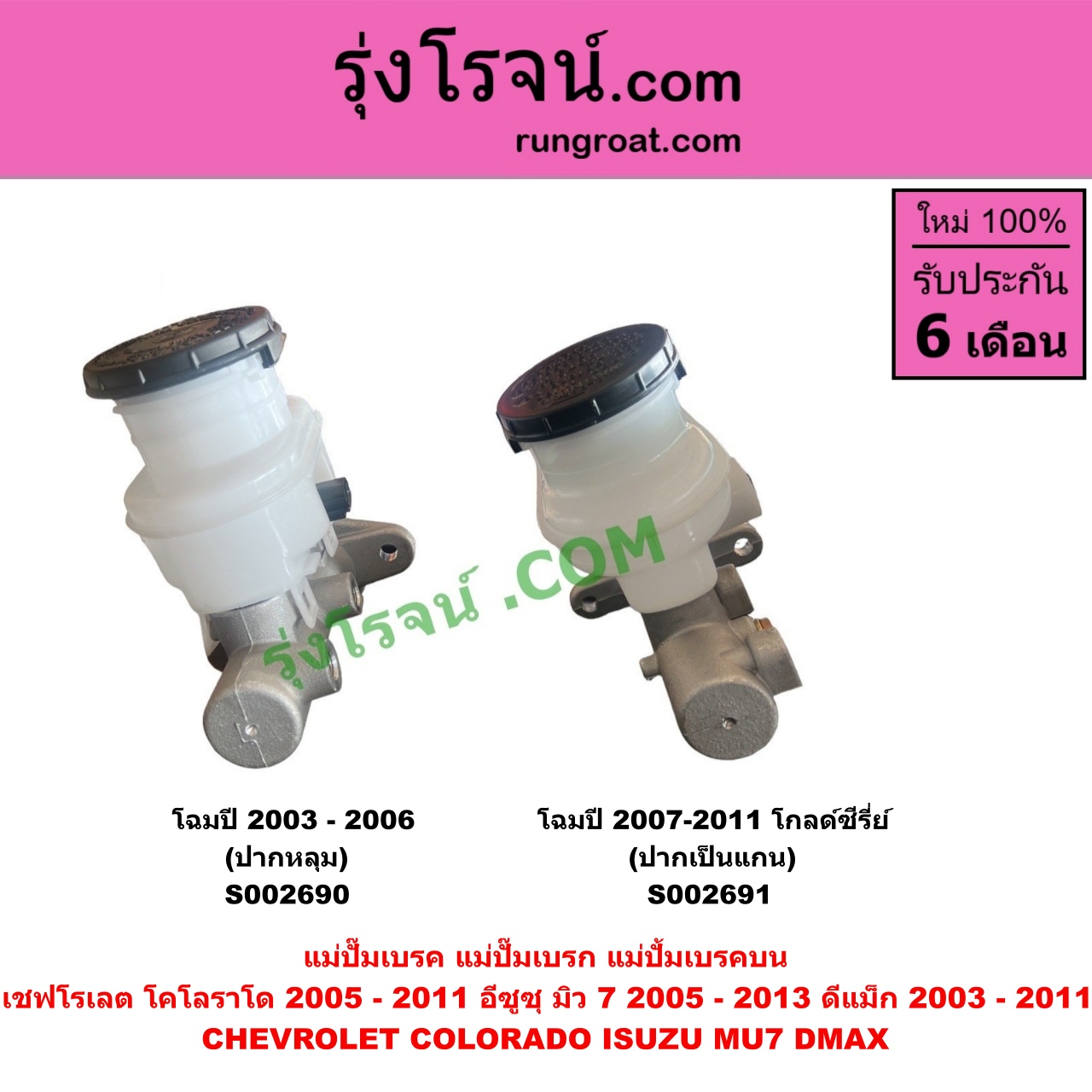 Home » สินค้า » S002691 แม่ปั๊มเบรค (แม่ปั๊มเบรก, แม่ปั้มเบรคบน) CHEVROLET (เชฟโรเลต) / COLORADO (โคโลราโด 05/09) (ตา 2 ชั้น / ตาชั้นเดียว) , ISUZU (อีซูซุ) / D-MAX (ดีแม็ก 03/05/07) (รุ่นแรก) , MU 7 (มิว 7 05/09) โฉมปี 2007-2011โกลด์ซีรี่ย์ (ปากเป็นแกน)