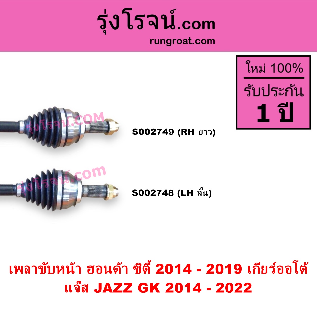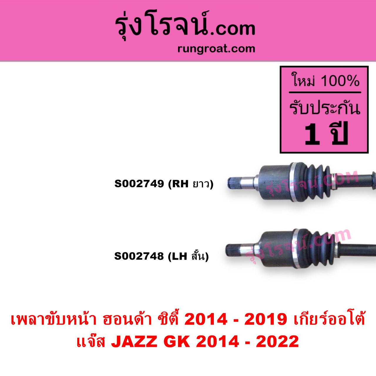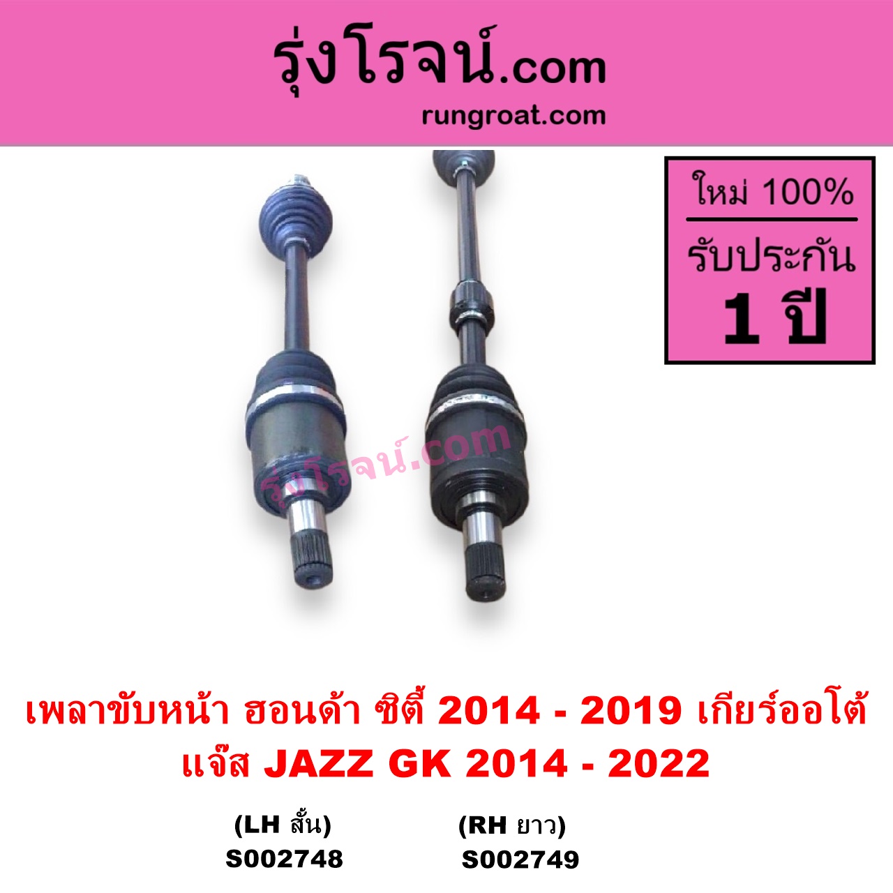 | S002748 | เพลาขับหน้า | HONDA (ฮอนด้า) / CITY (ซิตี้ 2014 – 2019) , HONDA (ฮอนด้า) / JAZZ (แจ๊ส 2014 – 2022) (GK) |