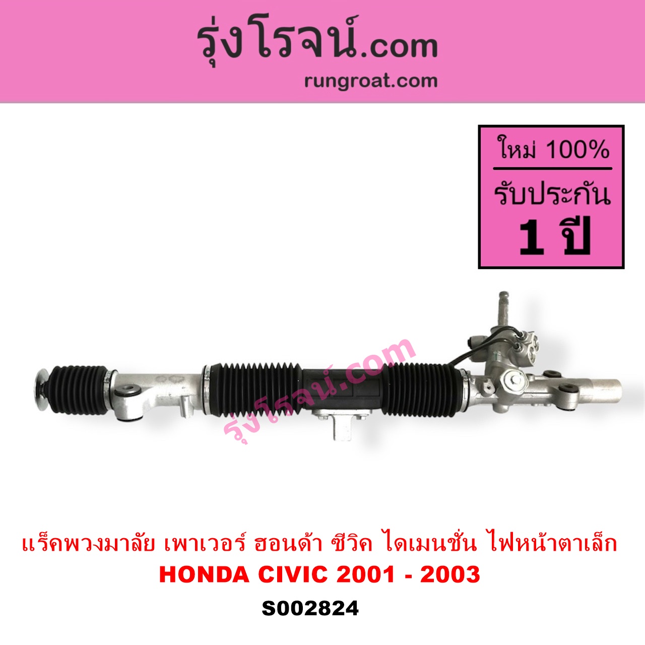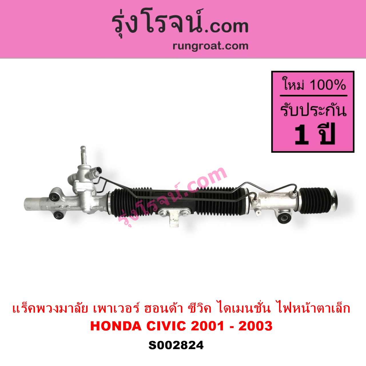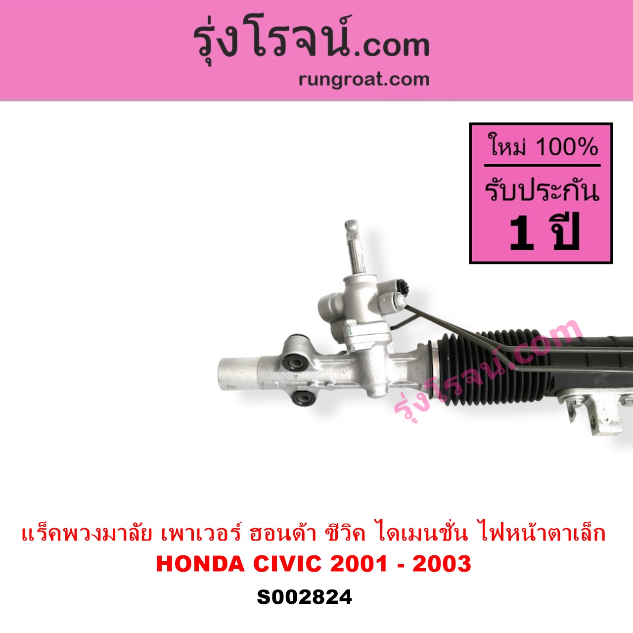 | S002824 | แร็คพวงมาลัย (แร็คเพาเวอร์) | HONDA (ฮอนด้า) / CIVIC (ซีวิค 01/04) (ไดเมนชั่น) (ES) | โฉม 2001 – 2003 (ไฟหน้าสั้น) (บูชเล็ก) ไม่มีลูกหมากปลาย | ไต้หวัน (ใหม่) |
