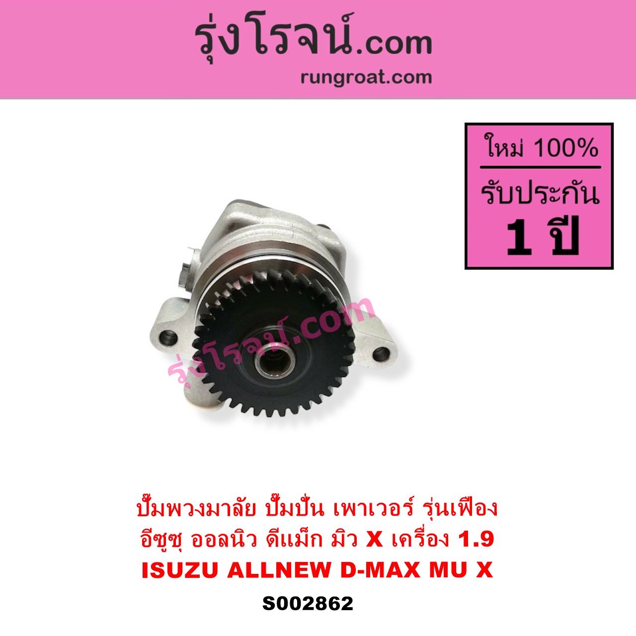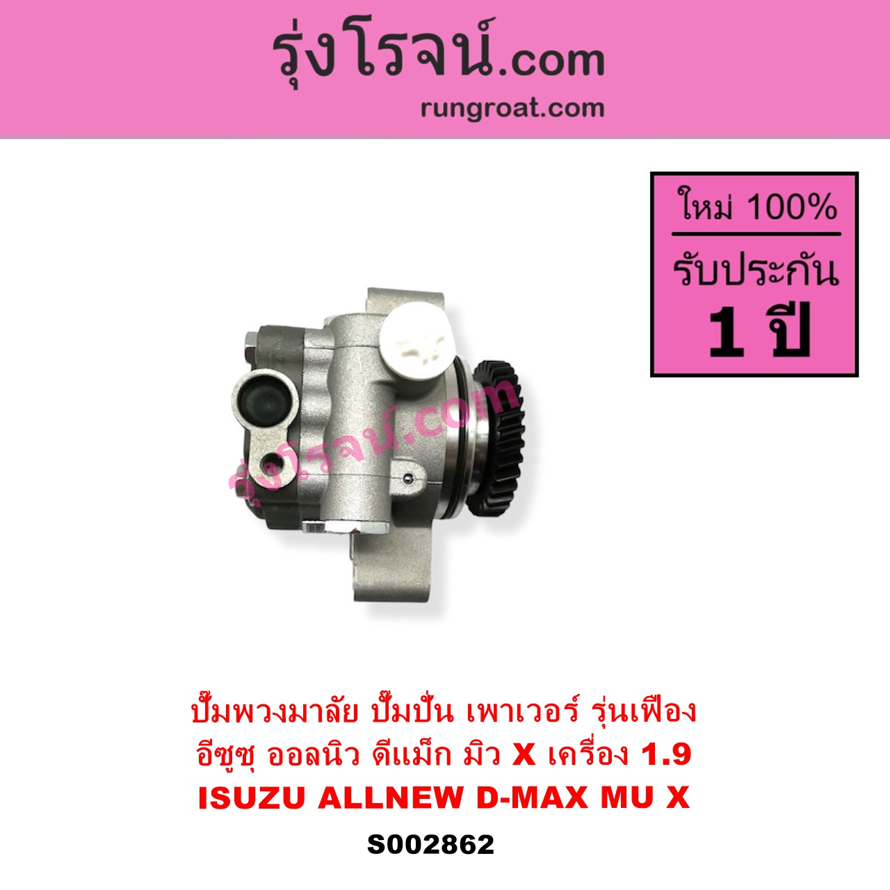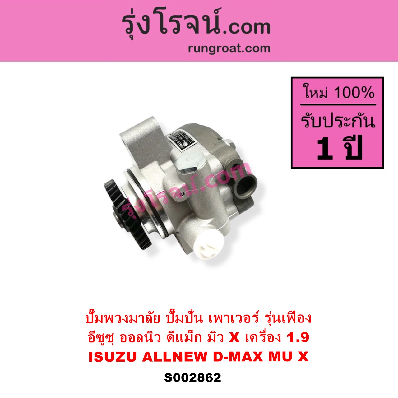 | S002862 | ปั๊มปั่นเพาเวอร์ (ปั๊มพวงมาลัย ตัวปั่น เพาเวอร์) | ISUZU (อีซูซุ) / D-MAX (ออนิว ออลนิว ดีแม็ก ดีแม็ค DMAX 2012 – 2019) (วีครอส V-CROSS / บลูเพาเวอร์ / 1.9) , ISUZU (อีซูซุ) / MU X (มิว X 2014 – 2019) |