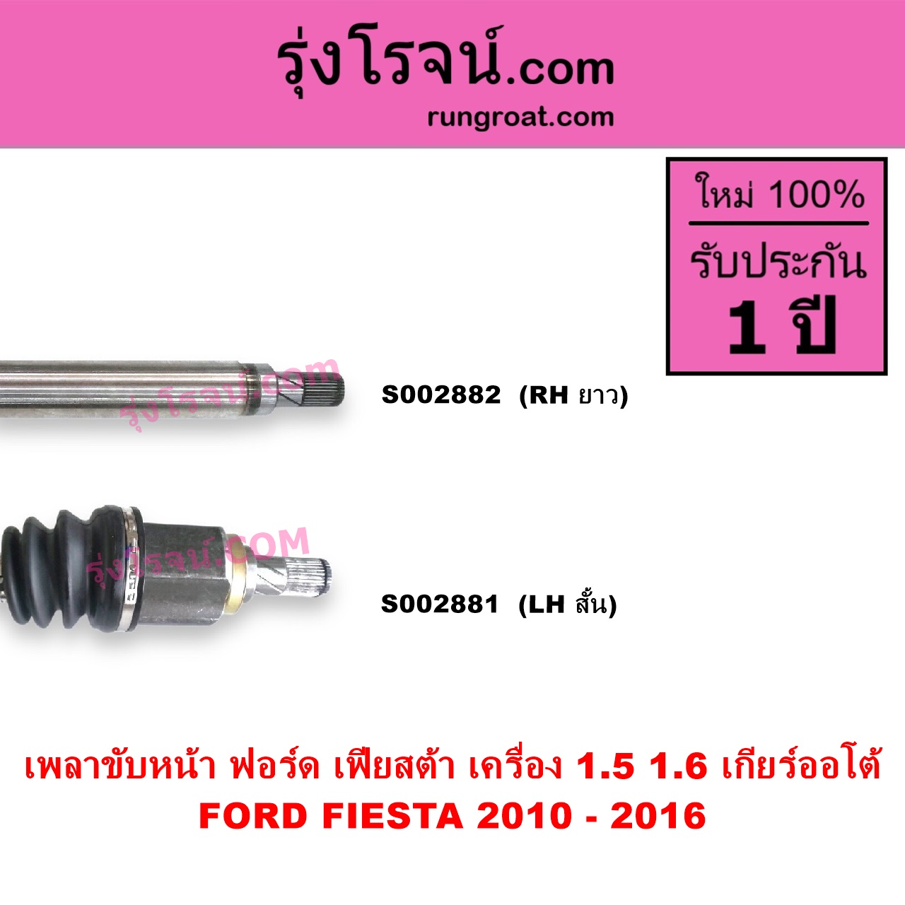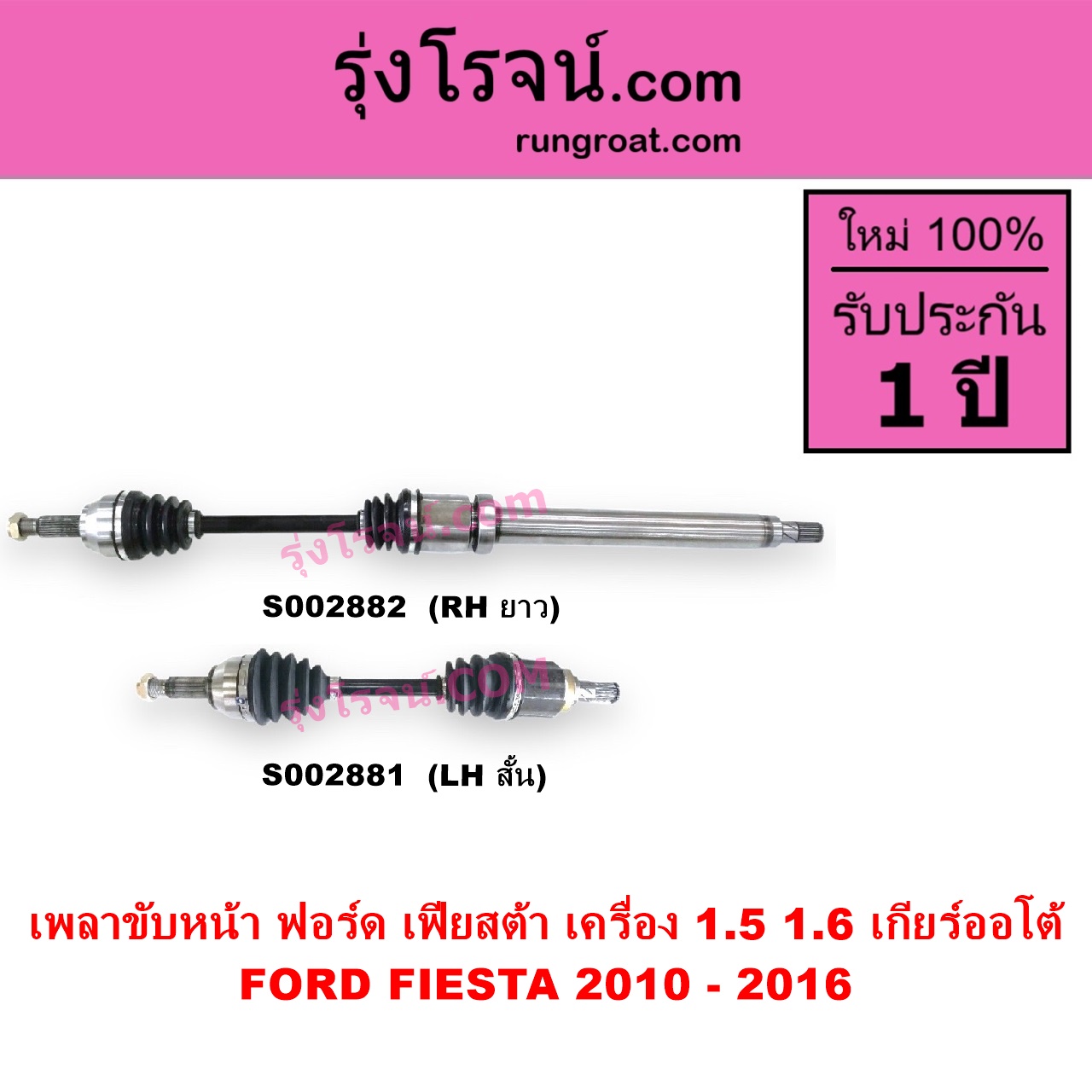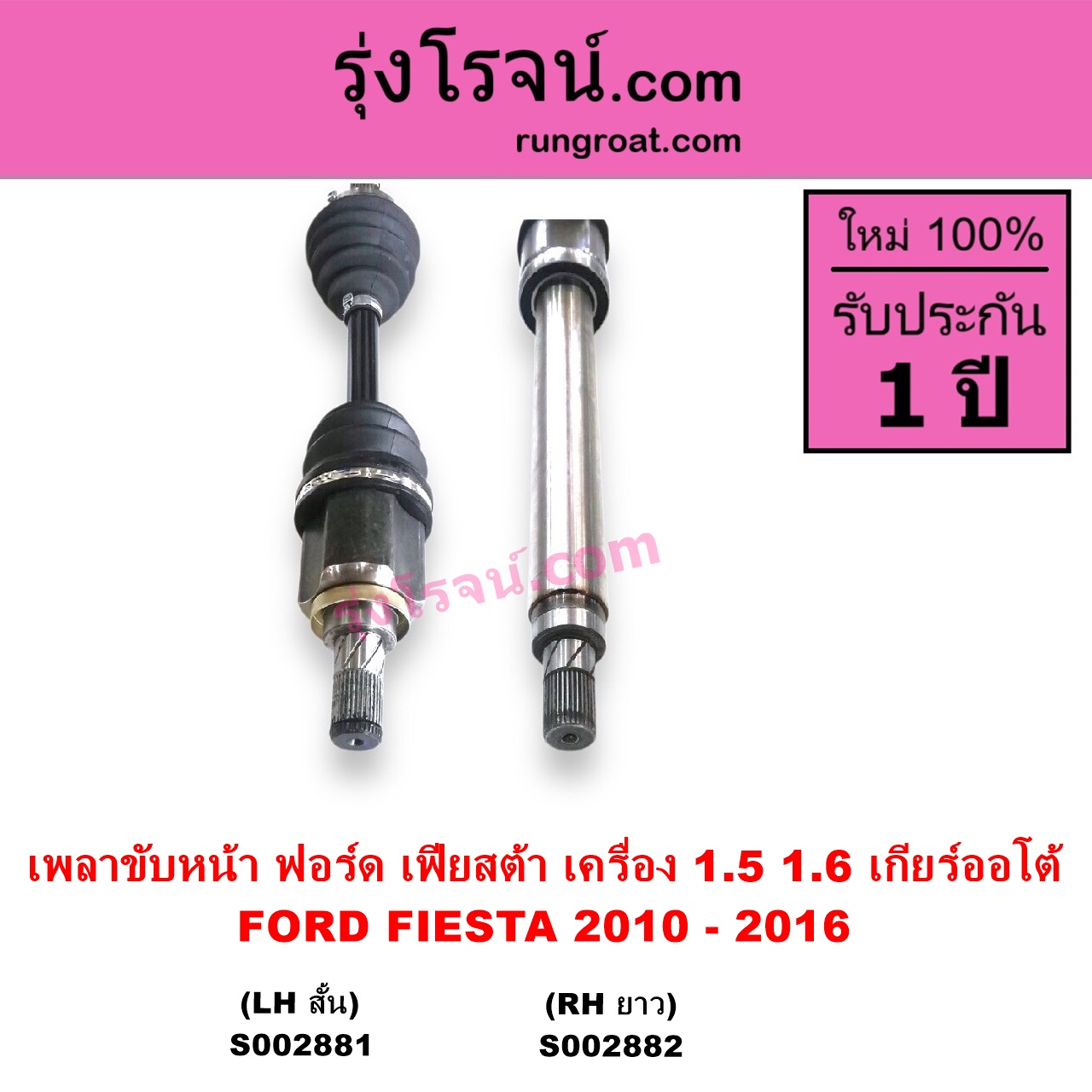 | S002882 | เพลาขับหน้า | FORD (ฟอร์ด) / FIESTA (เฟียสต้า 12/14) (4ประตู/5ประตู) | เครื่อง 1500, 1600 (เกียร์ออโต้) RH | ไต้หวัน (ใหม่) |
