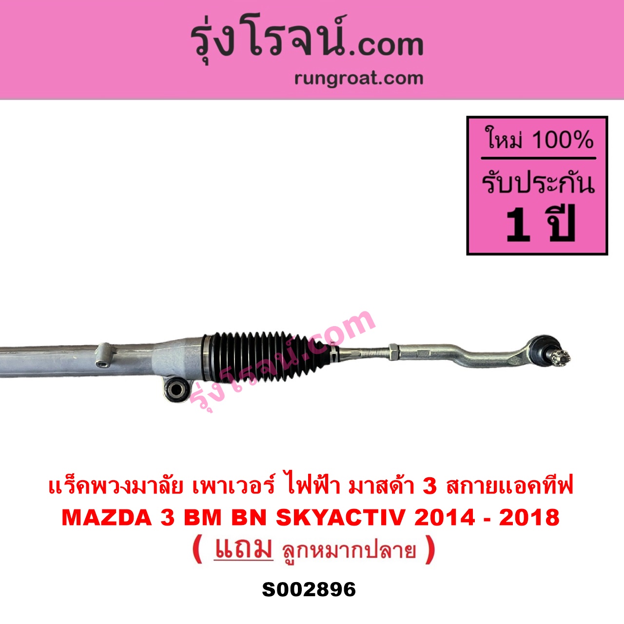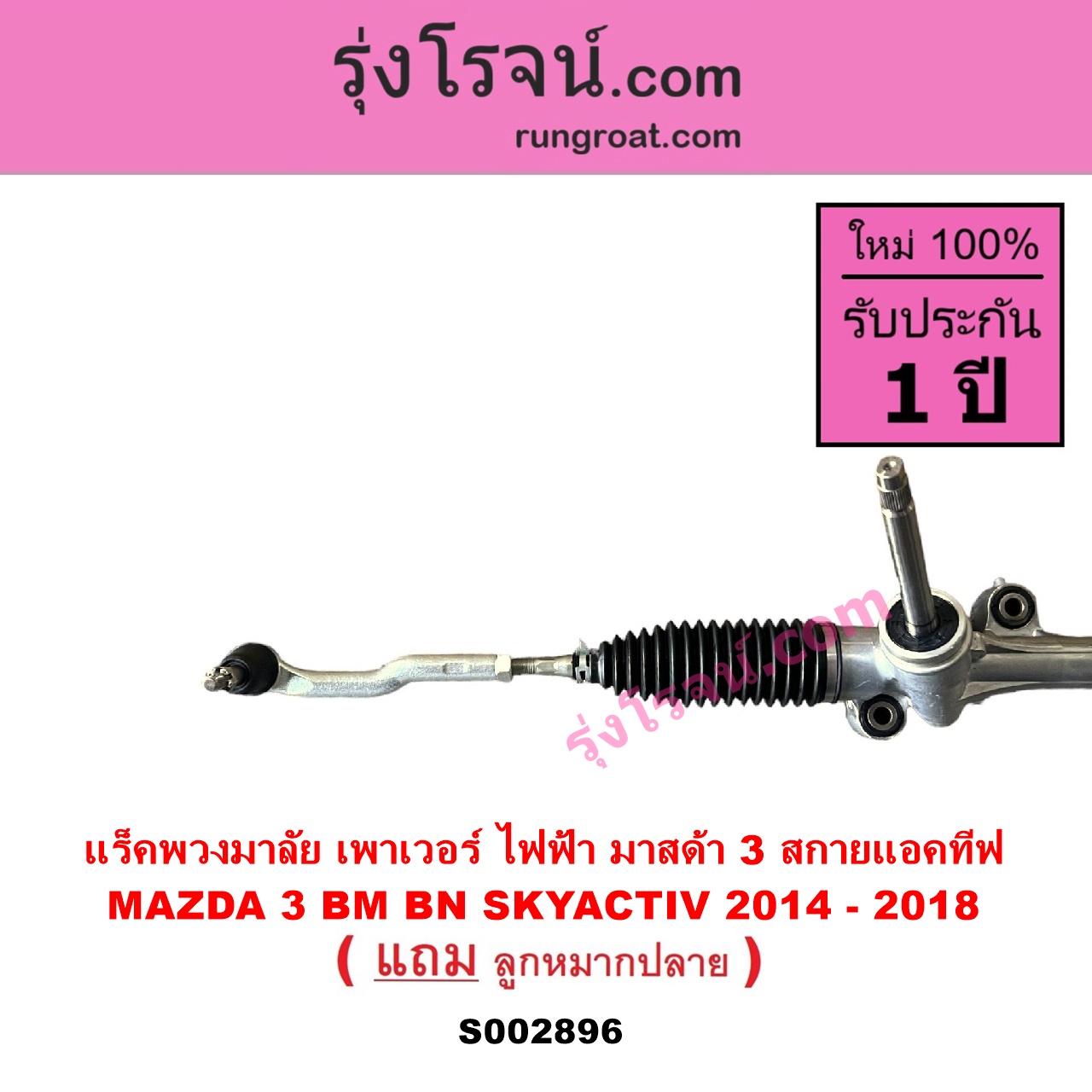 | S002896 | แร็คพวงมาลัย (แร็คเพาเวอร์) | MAZDA (มาสด้า) / MAZDA 3 (มาสด้า 3 2014 – 2018) (BM BN รุ่น 3, สกายแอคทีฟ SKYACTIV) | ไฟฟ้า | ไต้หวัน (ใหม่) |
