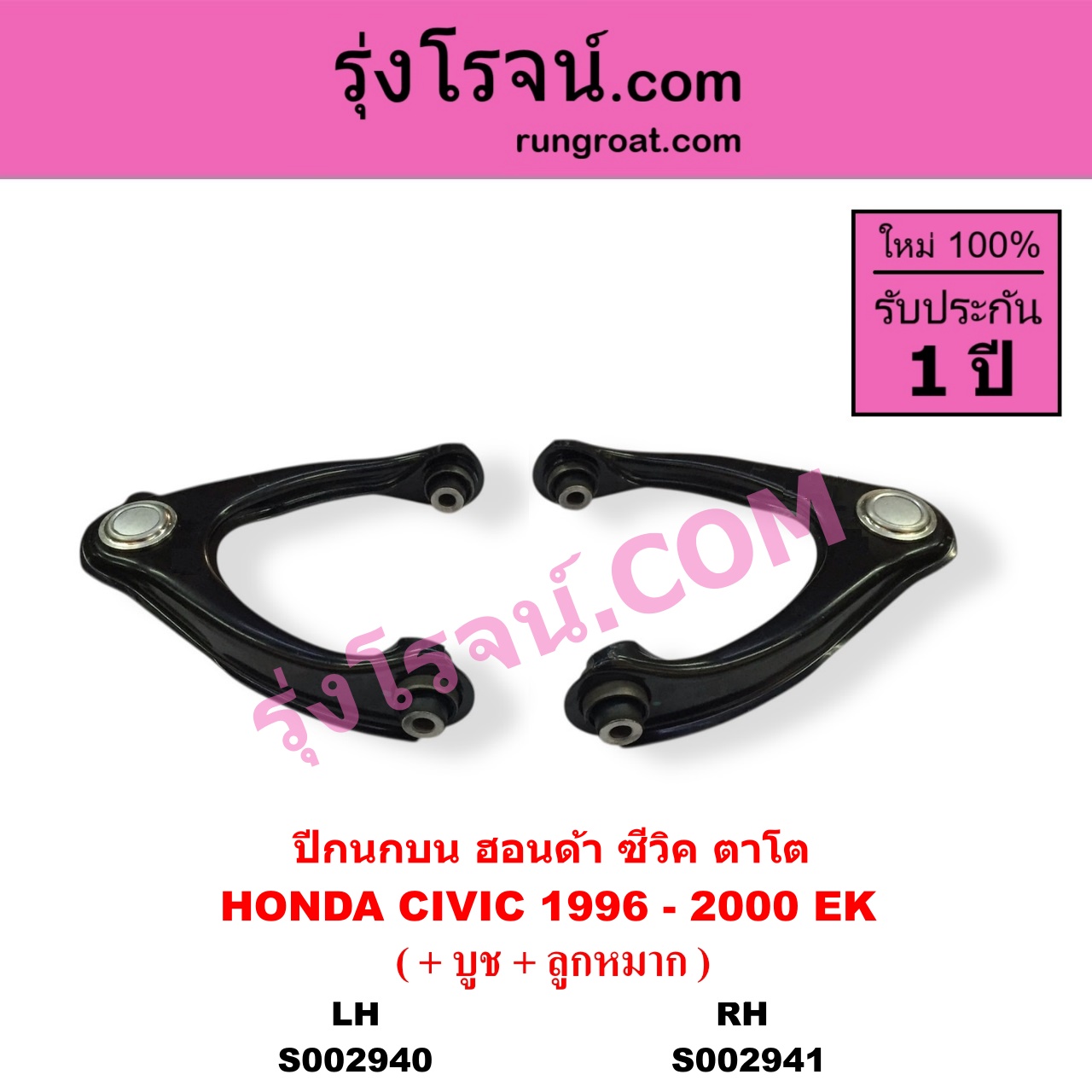 Home » สินค้า » S002941 ปีกนกบน + บูท + ลูกหมาก HONDA ฮอนด้า CIVIC ซีวิค 1996 – 2000 ตาโต EK RH