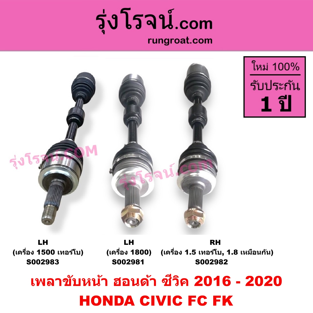 | S002983 | เพลาขับหน้า | HONDA (ฮอนด้า) / CIVIC (ซีวิค 2016 – 2020) (FC / FK) | เครื่อง 1500 (1.5 เทอร์โบ) LH | ไต้หวัน (ใหม่) |