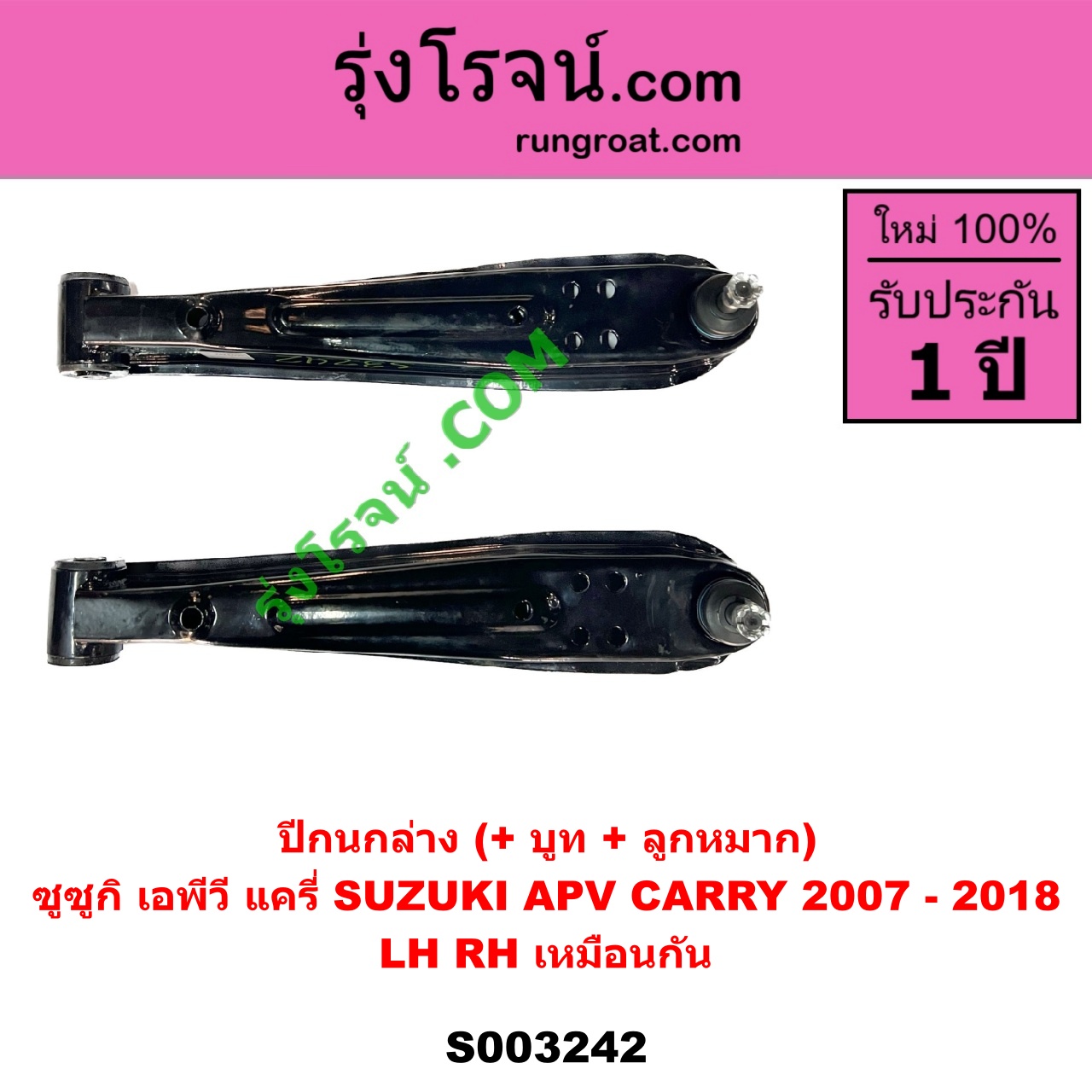 | S003242 | ปีกนกล่าง (+ บูท + ลูกหมาก) | SUZUKI (ซูซูกิ) / APV (เอพีวี 05) , SUZUKI (ซูซูกิ) / CARRY (แครี่) |