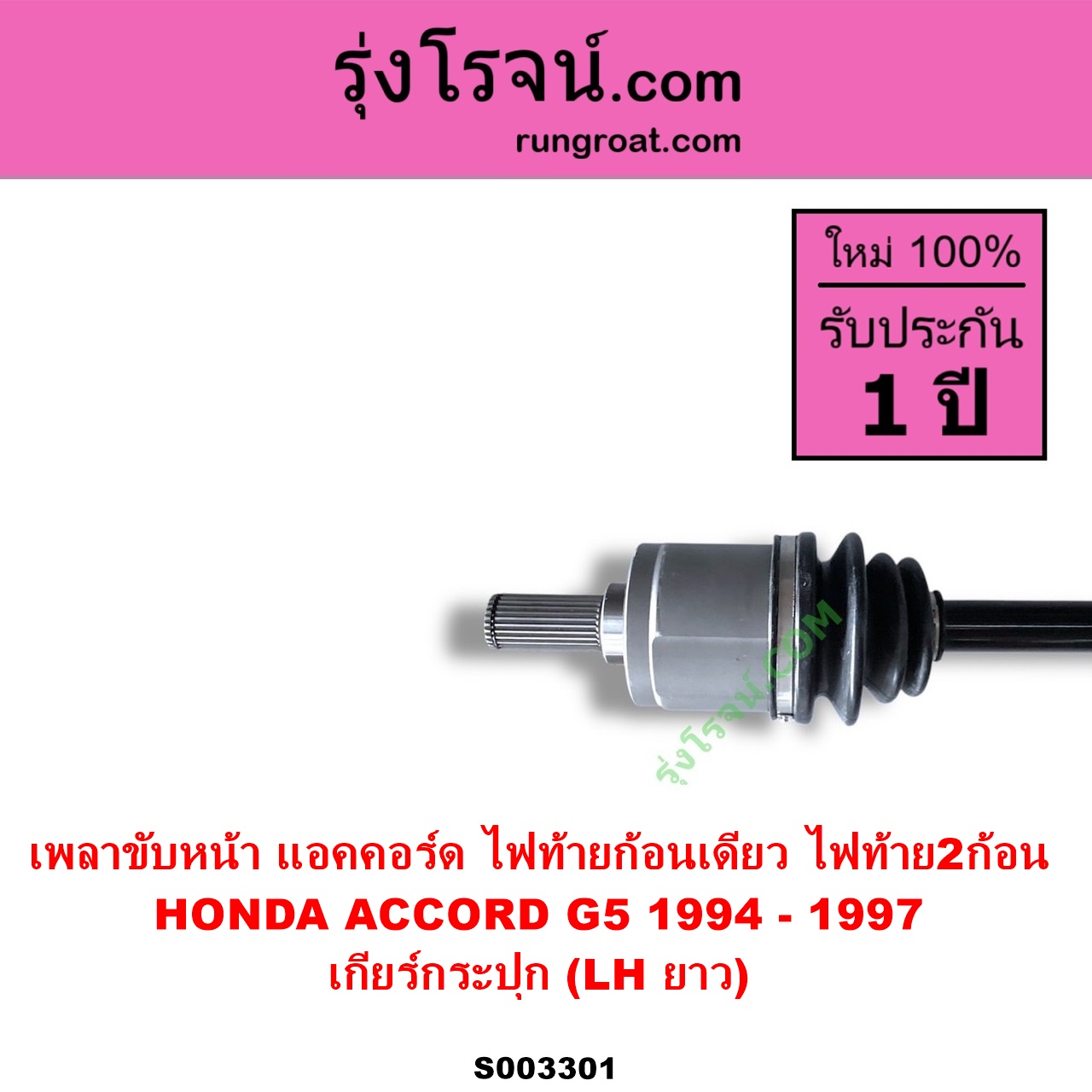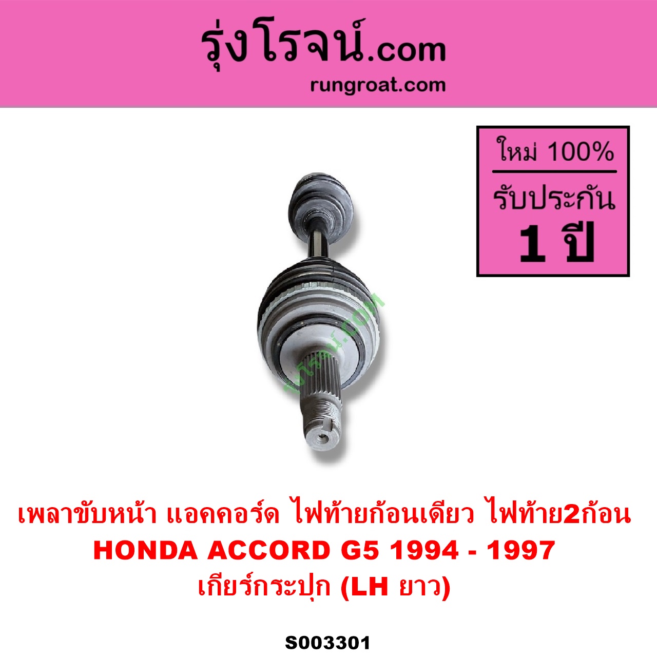 | S003301 | เพลาขับหน้า | HONDA (ฮอนด้า) / ACCORD (แอคคอร์ด 1994 – 1997) (ไฟท้ายก้อนเดียว / ไฟท้าย2ก้อน / G5) | (ABS) (เกียร์กระปุก) (LH ยาว) | ไต้หวัน (ใหม่) |