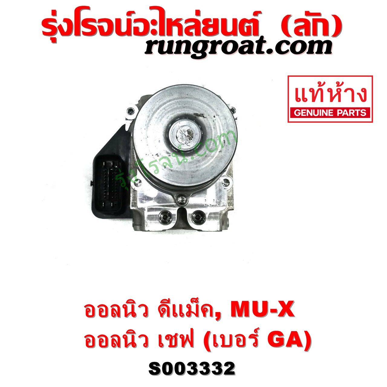 | S003332 | ปั๊ม ABS (โมดูล ABS) | CHEVROLET (เชฟโรเลต) / COLORADO (โคโลราโด 2012 – 2020) (นิว เชฟ ดูราแมกซ์, Z71, DURAMAX) , ISUZU (อีซูซุ) / D-MAX (ออนิว ออลนิว ดีแม็ก ดีแม็ค DMAX 2012 – 2019) (วีครอส V-CROSS / บลูเพาเวอร์ / 1.9) , ISUZU (อีซูซุ) / MU X (มิว X 14) |