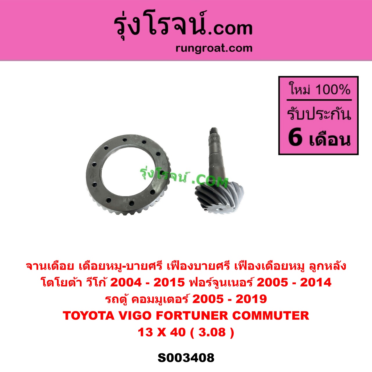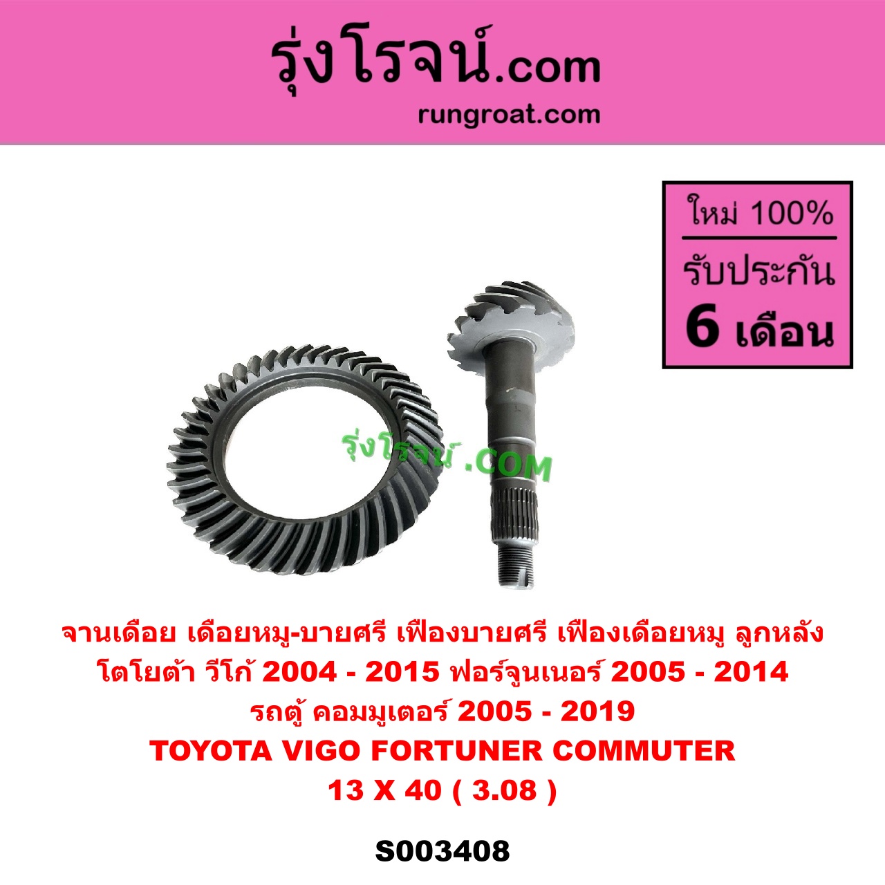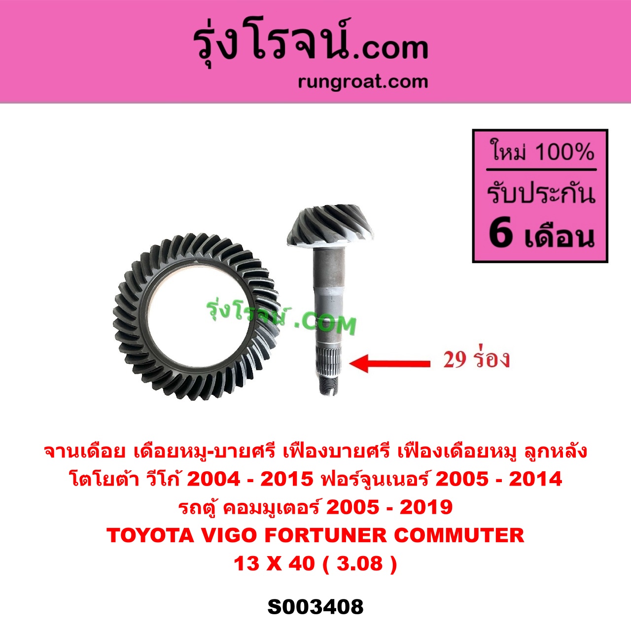 | S003408 | จานเดือย (เดือยหมู-บายศรี, เฟืองบายศรี เฟืองเดือยหมู) | TOYOTA (โตโยต้า) / COMMUTER (รถตู้ คอมมิวเตอร์ คอมมูเตอร์ 2005 – 2019) , TOYOTA (โตโยต้า) / FORTUNER (ฟอร์จูนเนอร์ 2005 – 2014) (รุ่นแรก) , TOYOTA (โตโยต้า) / VIGO (วีโก้ 2004 – 2015) |
