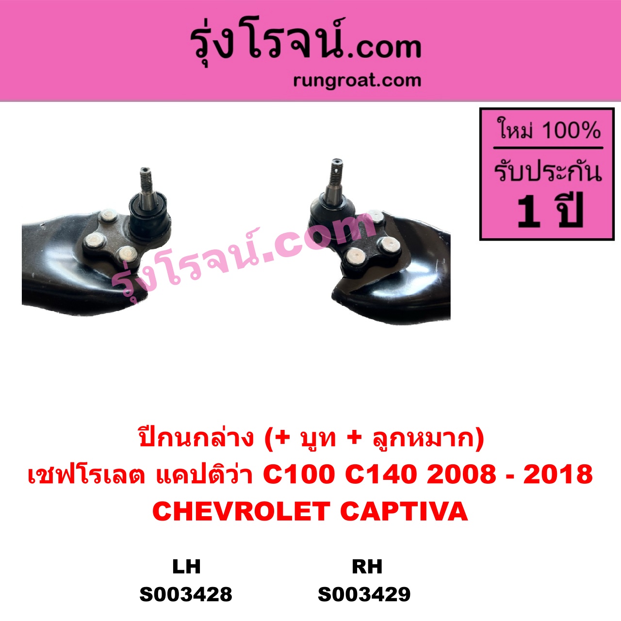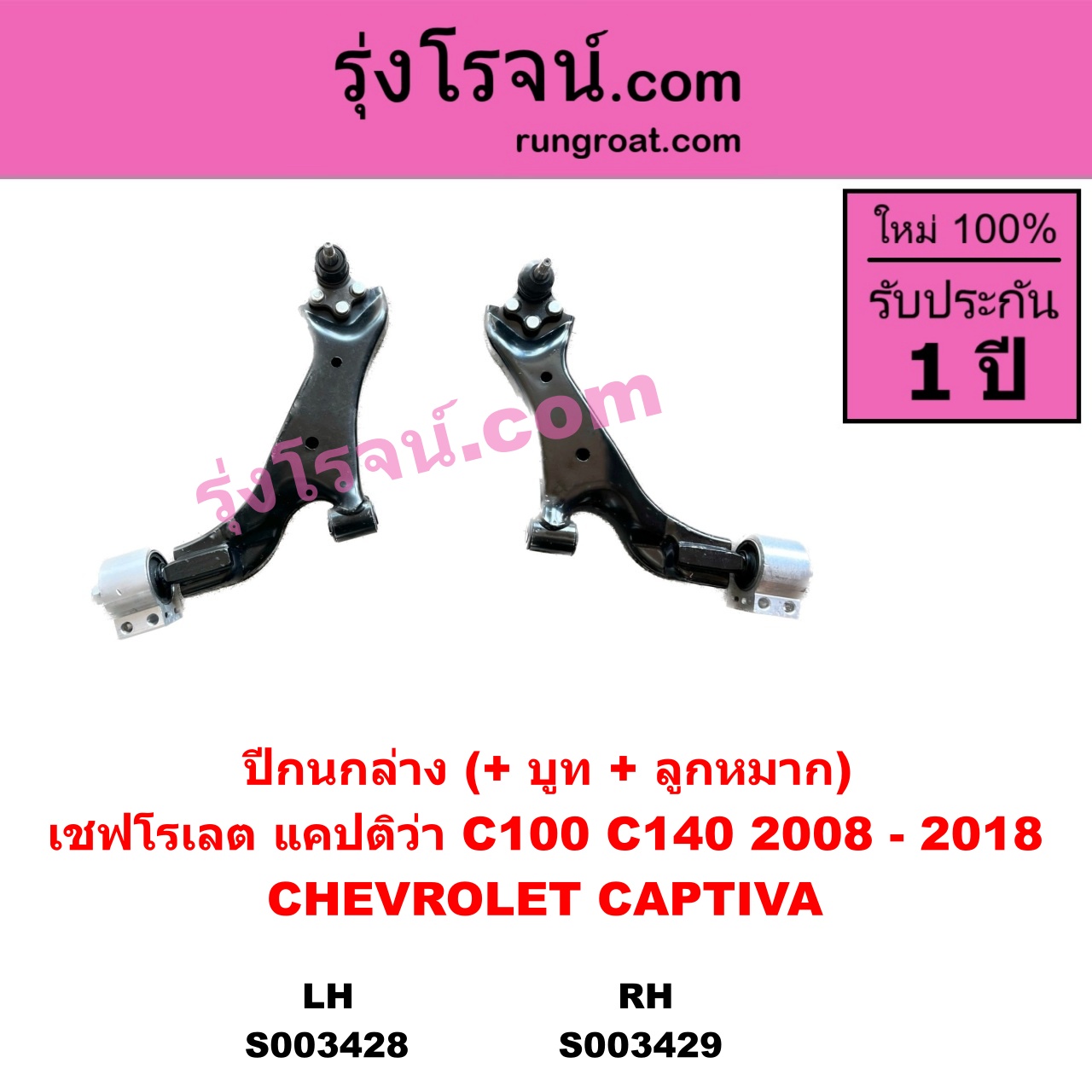 | S003429 | ปีกนกล่าง (+ บูท + ลูกหมาก) | CHEVROLET (เชฟโรเลต) / CAPTIVA (แคปติว่า แคปติวา 2008 2012 2015) (C100 / C140) | RH | ไต้หวัน (ใหม่) |