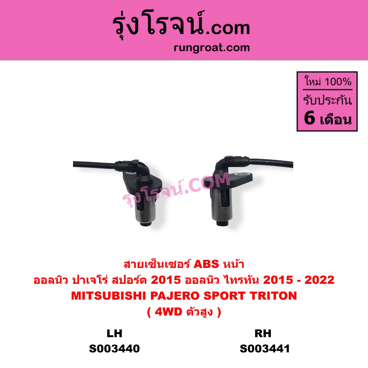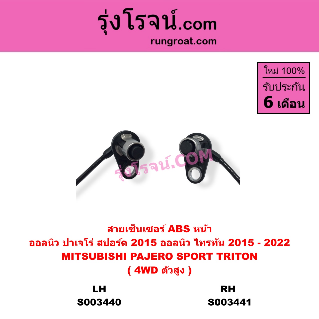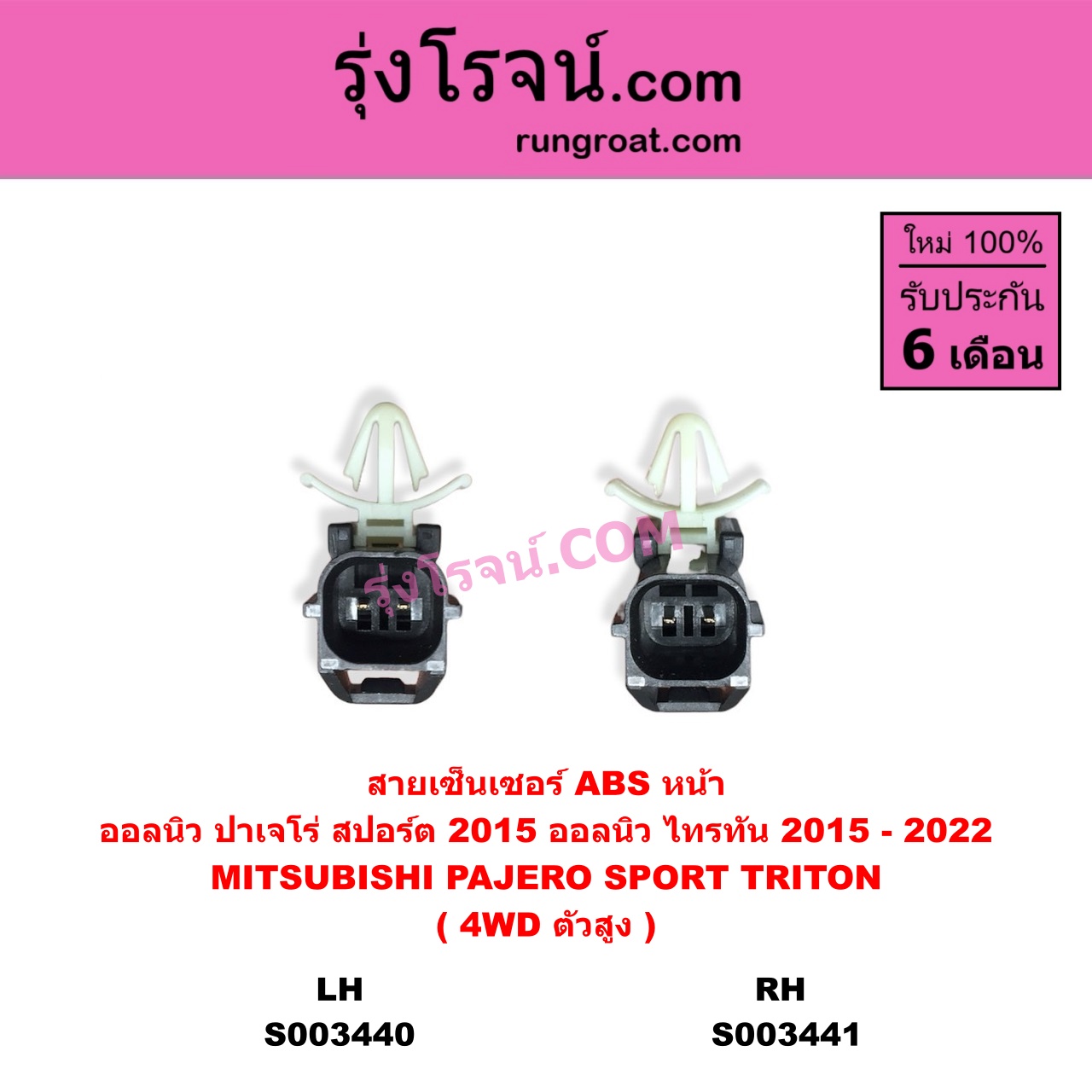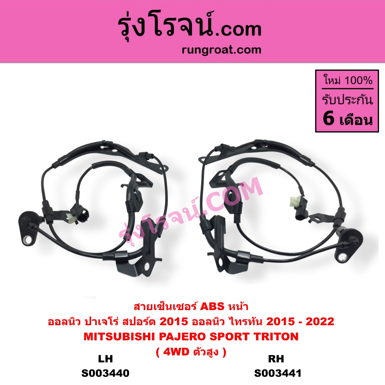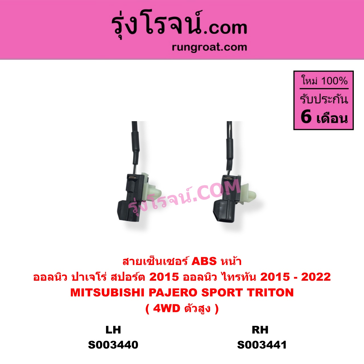 | S003441 | สายเซ็นเซอร์ ABS หน้า | MITSUBISHI (มิตซู) / PAJERO SPORT (ออลนิว ปาเจโร่ สปอร์ต 2015) (รุ่น 2) , MITSUBISHI (มิตซู) / TRITON (ออลนิว ไทรทัน ไตตั้น 2015 – 2022) (รุ่น 2) |