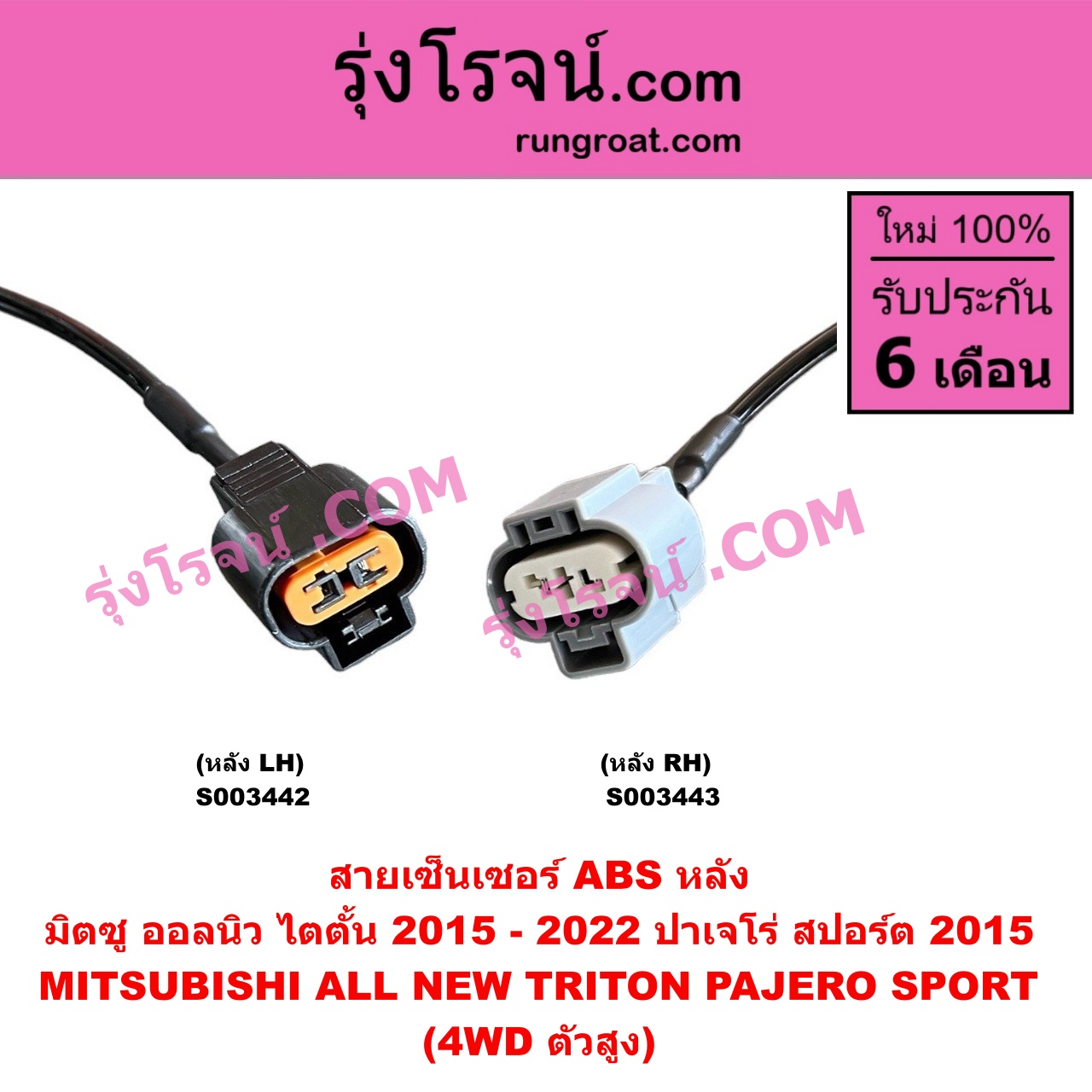 | S003443 | สายเซ็นเซอร์ ABS หลัง | MITSUBISHI (มิตซู) / PAJERO SPORT (ออลนิว ปาเจโร่ สปอร์ต 2015) (รุ่น 2) , MITSUBISHI (มิตซู) / TRITON (ออลนิว ไทรทัน ไตตั้น 2015 – 2022) (รุ่น 2) |