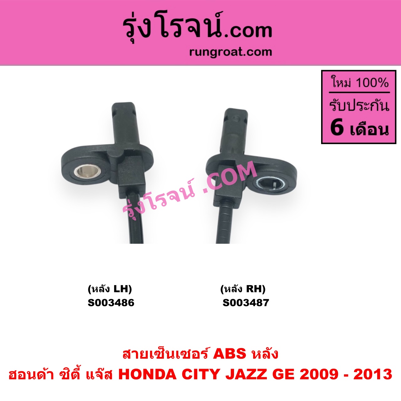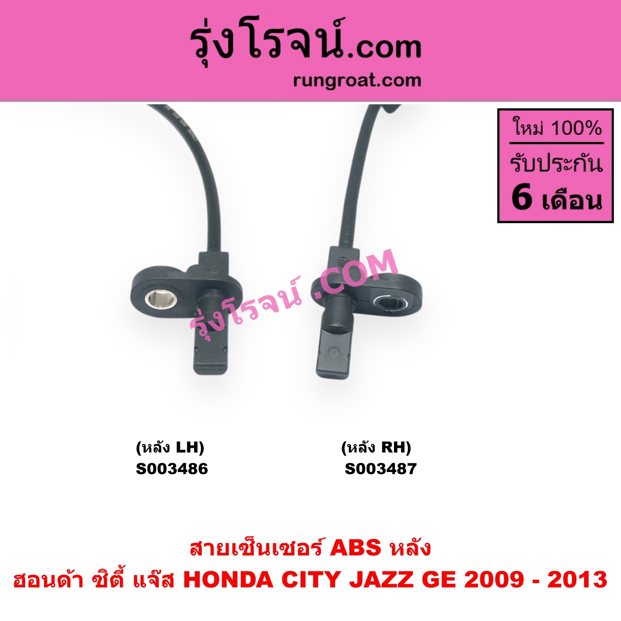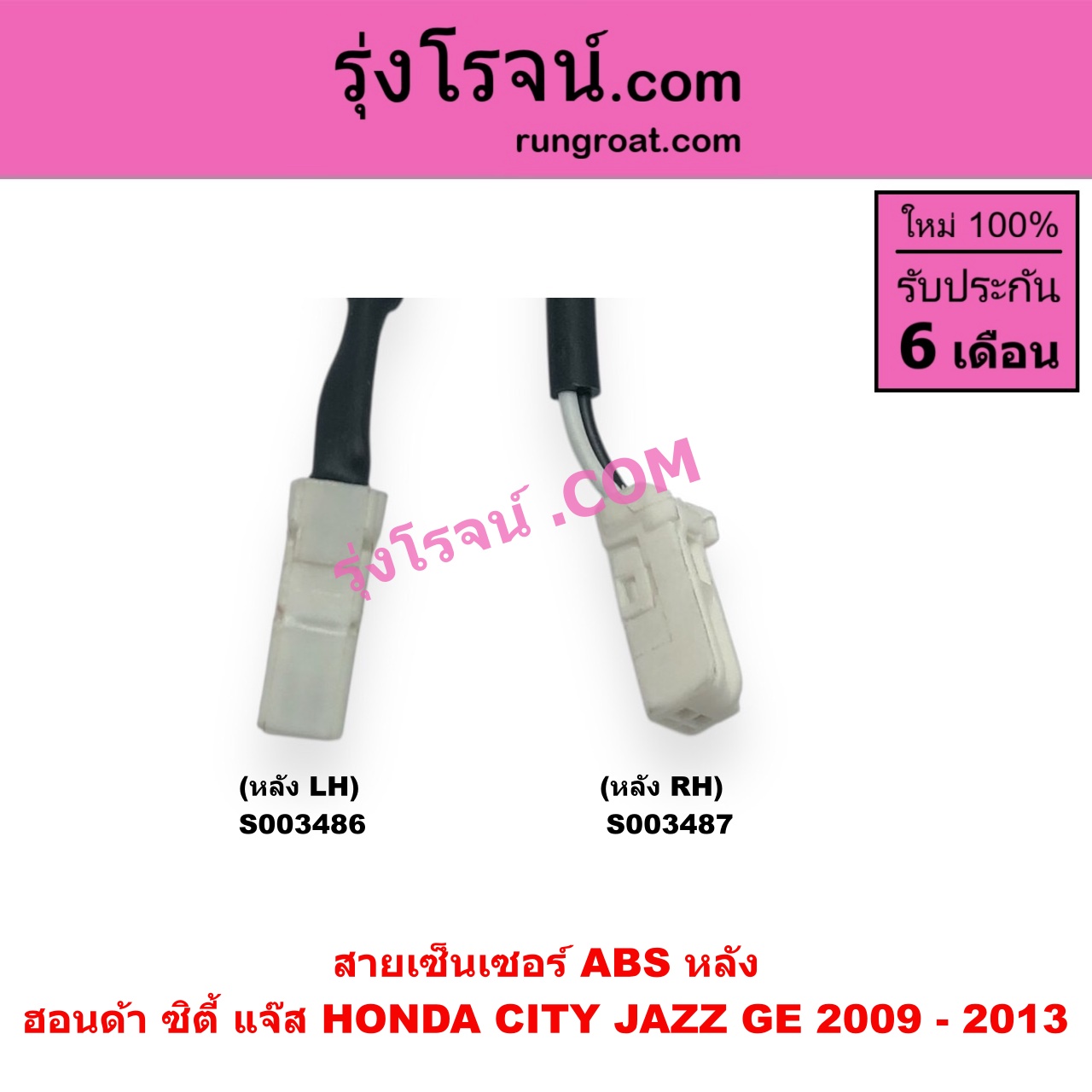 | S003486 | สายเซ็นเซอร์ ABS หลัง | HONDA (ฮอนด้า) / CITY (ซิตี้ 2009 – 2013) , HONDA (ฮอนด้า) / JAZZ (แจ๊ส 2009 – 2013 ไฮบริด) (GE) |