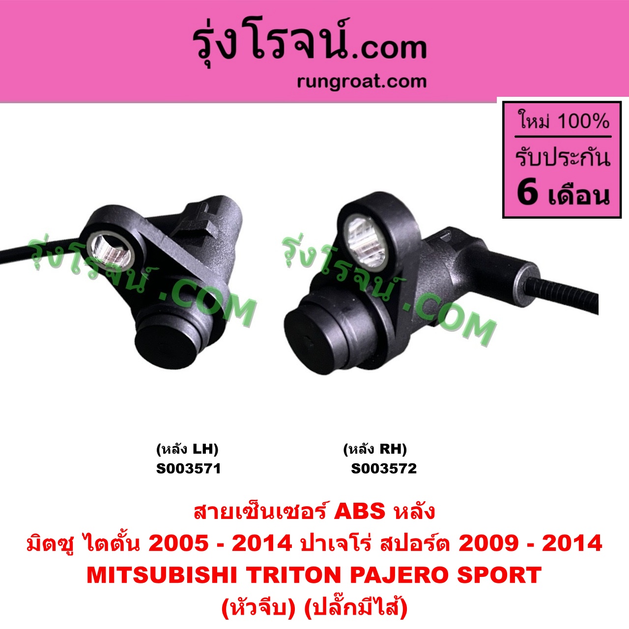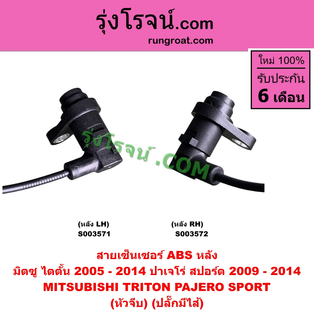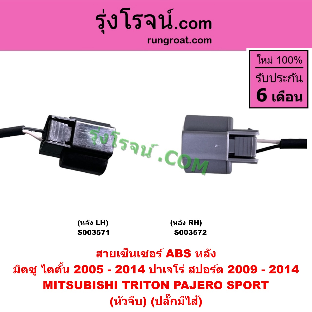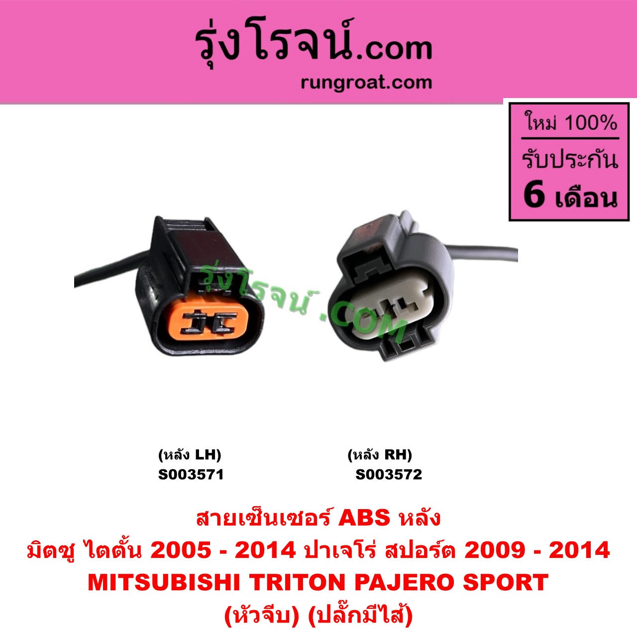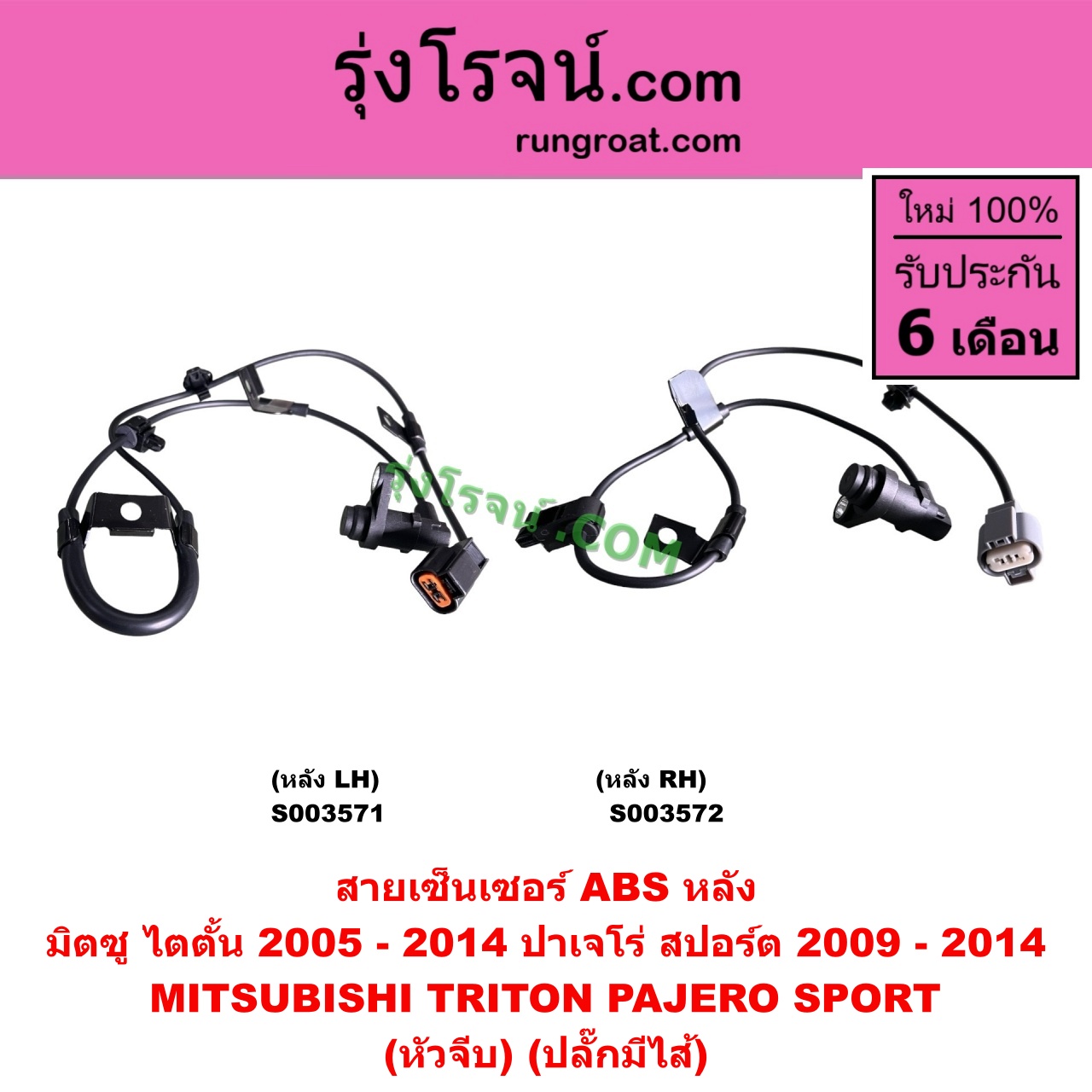 S003571 สายเซ็นเซอร์ ABS หลัง MITSUBISHI (มิตซู) / PAJERO SPORT (ปาเจโร่ สปอร์ต 2009 – 2014) (รุ่นแรก), TRITON (ไทรทัน ไตตั้น 2005 – 2014 PLUS) (รุ่นแรก) (หัวจีบ) (ปลั๊กมีไส้) หลัง LH