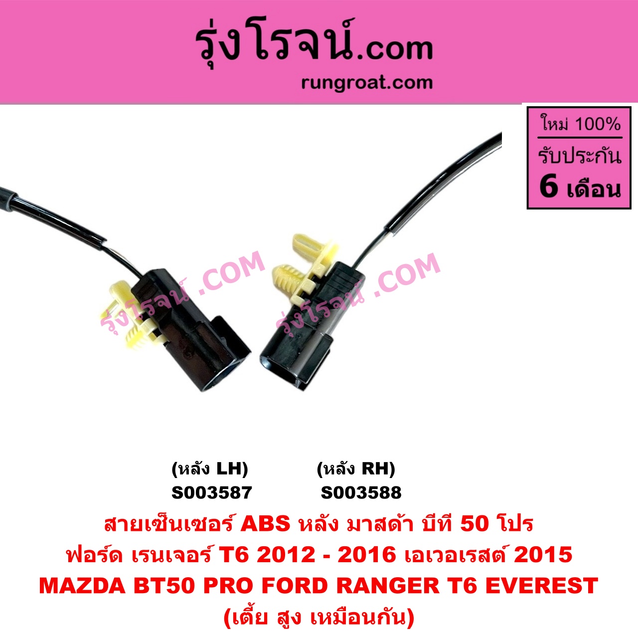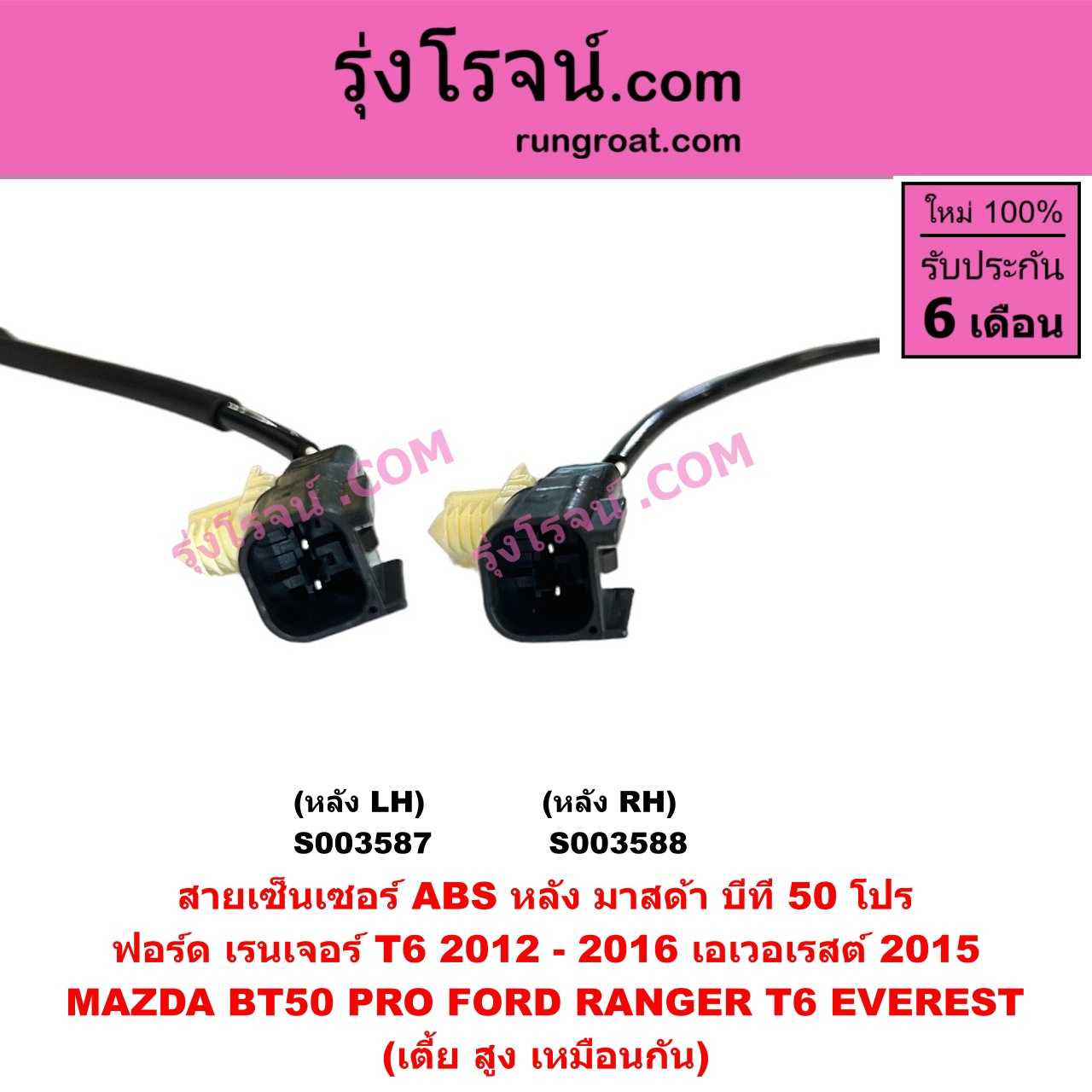 | S003587 | สายเซ็นเซอร์ ABS หลัง | FORD (ฟอร์ด) / EVEREST (เอเวอเรสต์ 2015 – 2021) (T6 T7 รุ่น 3) , FORD (ฟอร์ด) / RANGER (เรนเจอร์ T6 T7 2012 – 2021) (ไวล์ดแทรค แร็ปเตอร์ WILD TRAK RAPTER) , MAZDA (มาสด้า) / BT-50 PRO (บีที 50 โปร 12/15) |