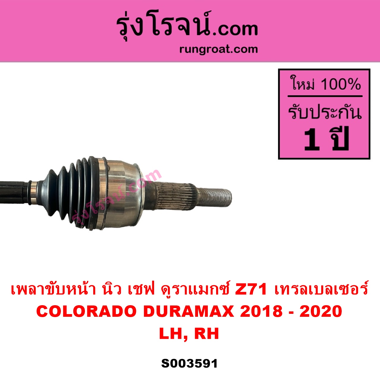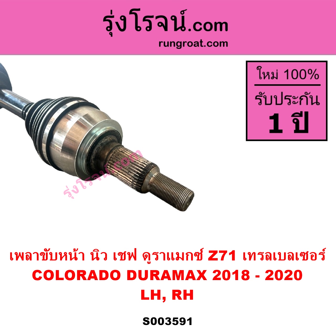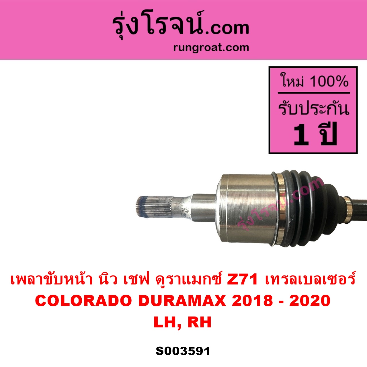 | S003591 | เพลาขับหน้า | CHEVROLET (เชฟโรเลต) / COLORADO (โคโลราโด 2012 – 2020) (นิว เชฟ ดูราแมกซ์, Z71, DURAMAX) , CHEVROLET (เชฟโรเลต) / TRAILBLAZER (เทรลเบลเซอร์ 2013 – 2020) |