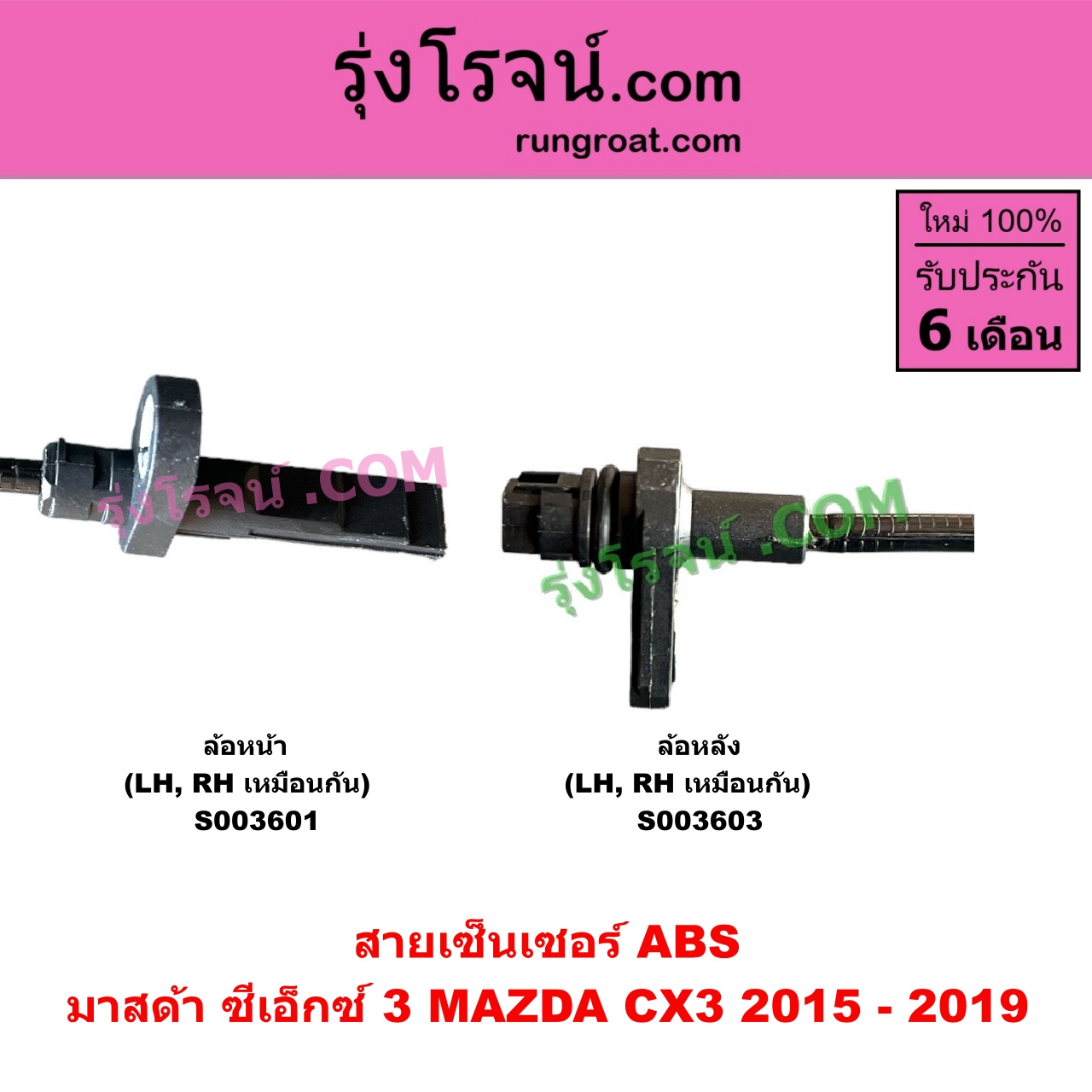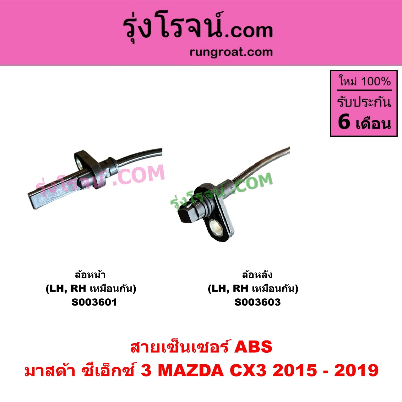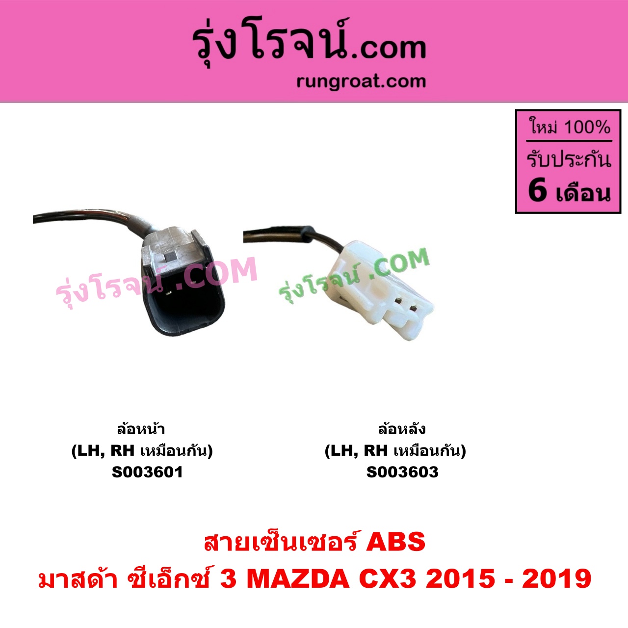 | S003601 | สายเซ็นเซอร์ ABS หน้า | MAZDA (มาสด้า) / CX-3 (ซีเอ็กซ์ 3) (CX3 2015 – 2019) | หน้า LH, RH (เหมือนกัน) | ไต้หวัน (ใหม่) |