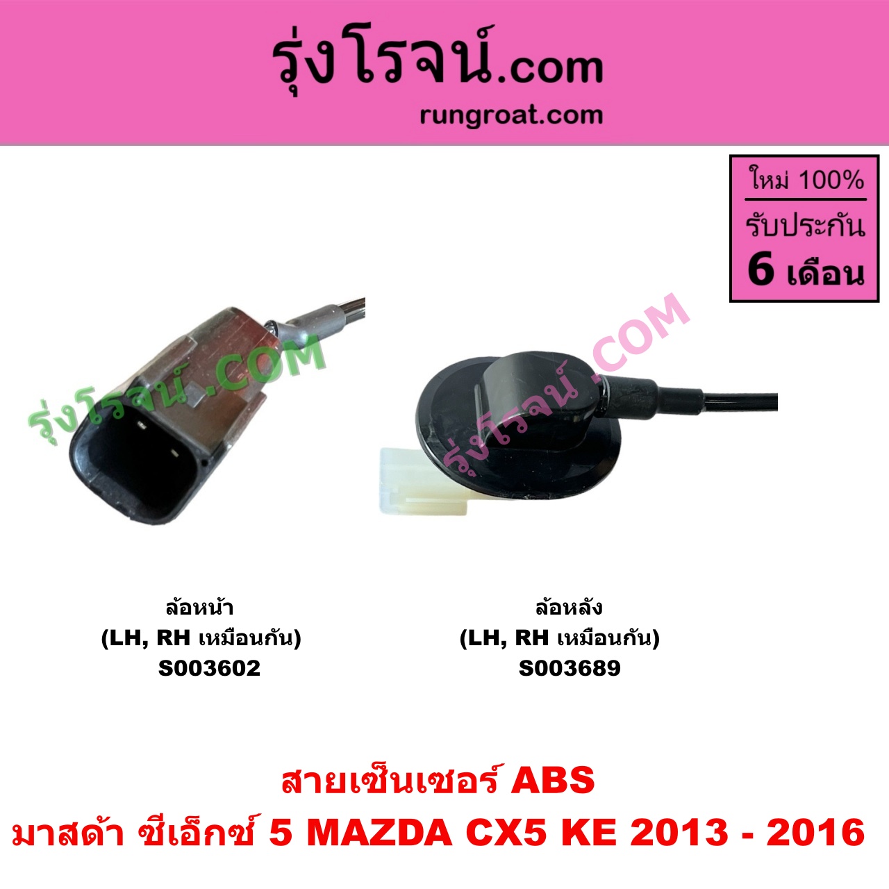 | S003602 | สายเซ็นเซอร์ ABS หน้า | MAZDA (มาสด้า) / CX-5 (ซีเอ็กซ์ 5) (2013 – 2016) | หน้า LH, RH (เหมือนกัน) | ไต้หวัน (ใหม่) |