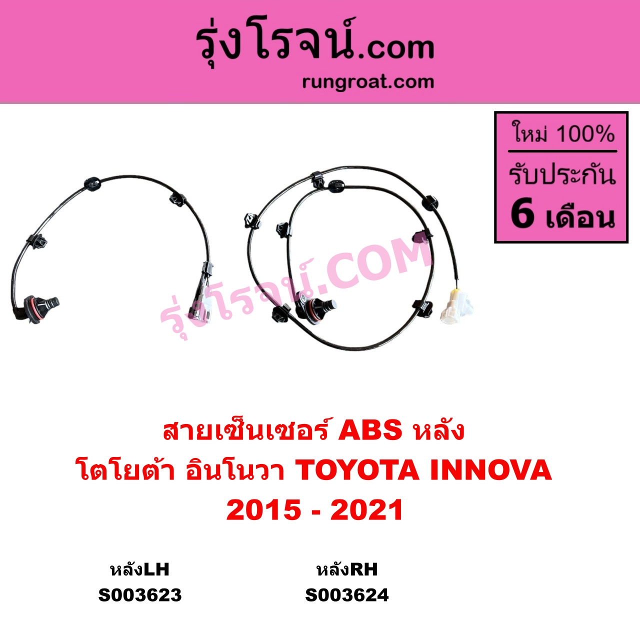 | S003623 | สายเซ็นเซอร์ ABS หลัง | TOYOTA (โตโยต้า) / INNOVA (อินโนวา 2016 – 2022) | (2015 – 2021) หลังLH | ไต้หวัน (ใหม่) |