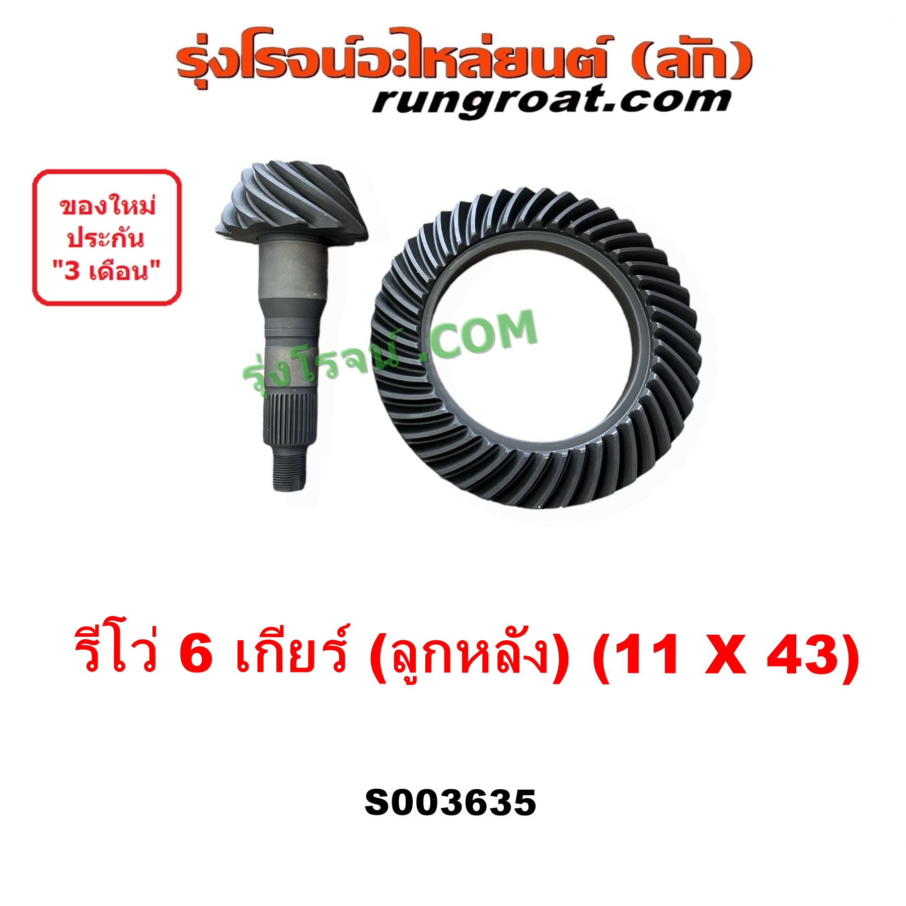 S003635 จานเดือย (เดือยหมู-บายศรี, เฟืองบายศรี เฟืองเดือยหมู) TOYOTA (โตโยต้า) / REVO (รีโว รีโว่ 2015 – 2023) (โฉมแรก / ROCCO) 6เกียร์ (11 X 43) (3.9) ไต้หวัน (ใหม่)