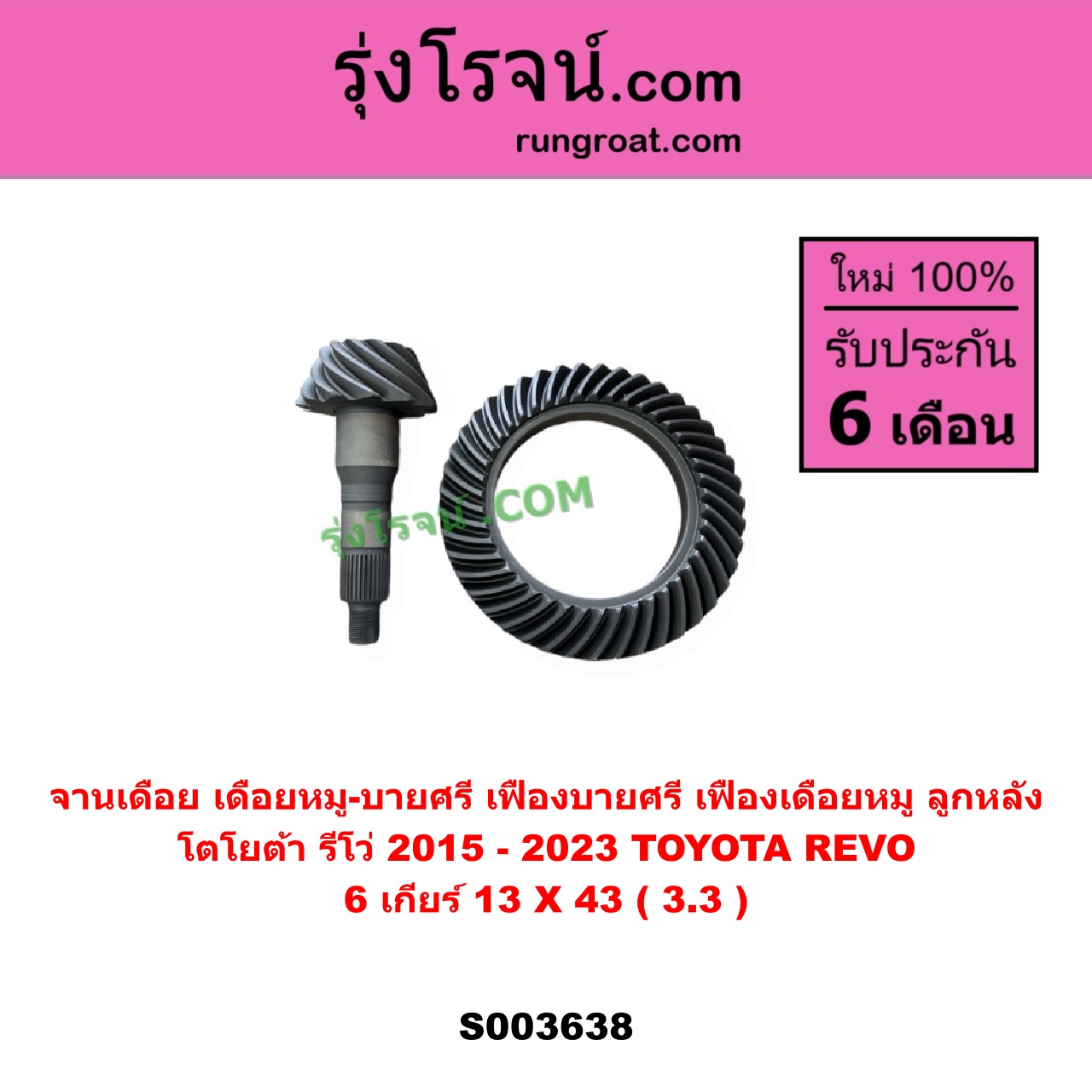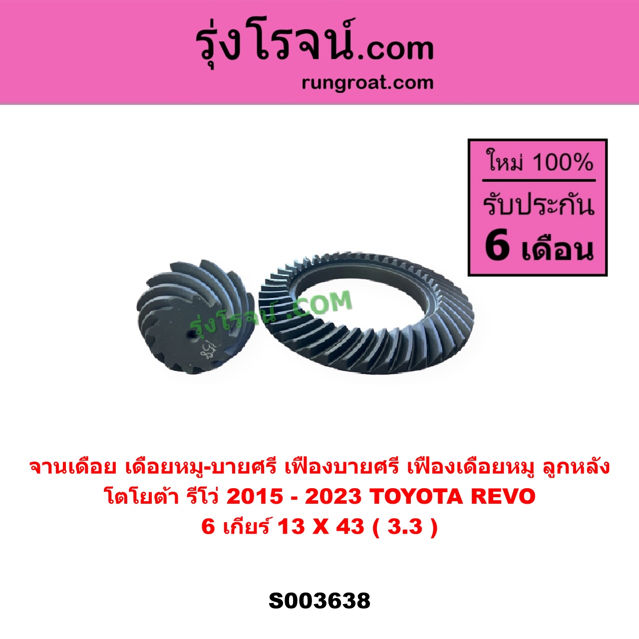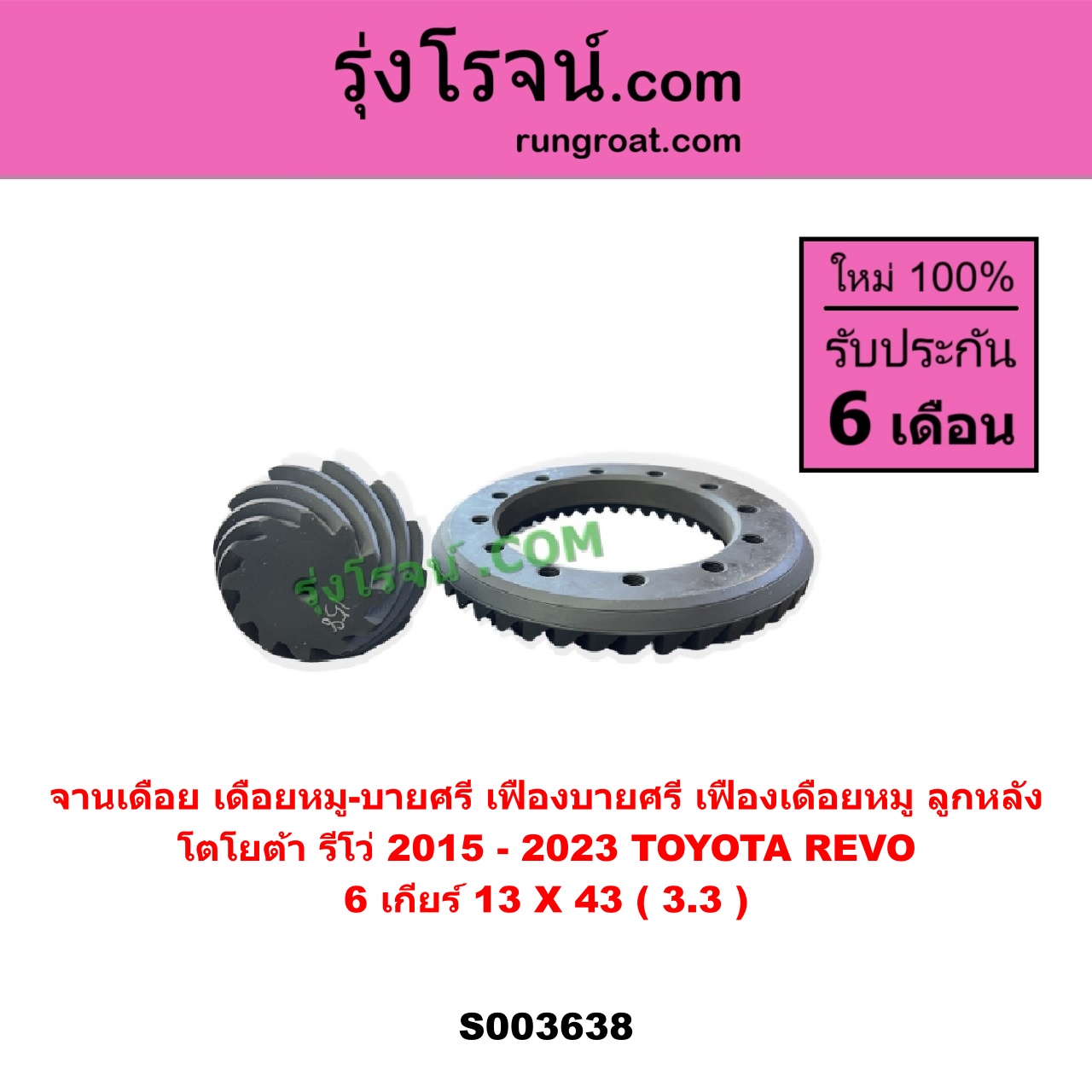 S003638 จานเดือย (เดือยหมู-บายศรี, เฟืองบายศรี เฟืองเดือยหมู) TOYOTA (โตโยต้า) / REVO (รีโว รีโว่ 2015 – 2023) (โฉมแรก / ROCCO) 6 เกียร์ (13 X 43) (3.3) ไต้หวัน (ใหม่)