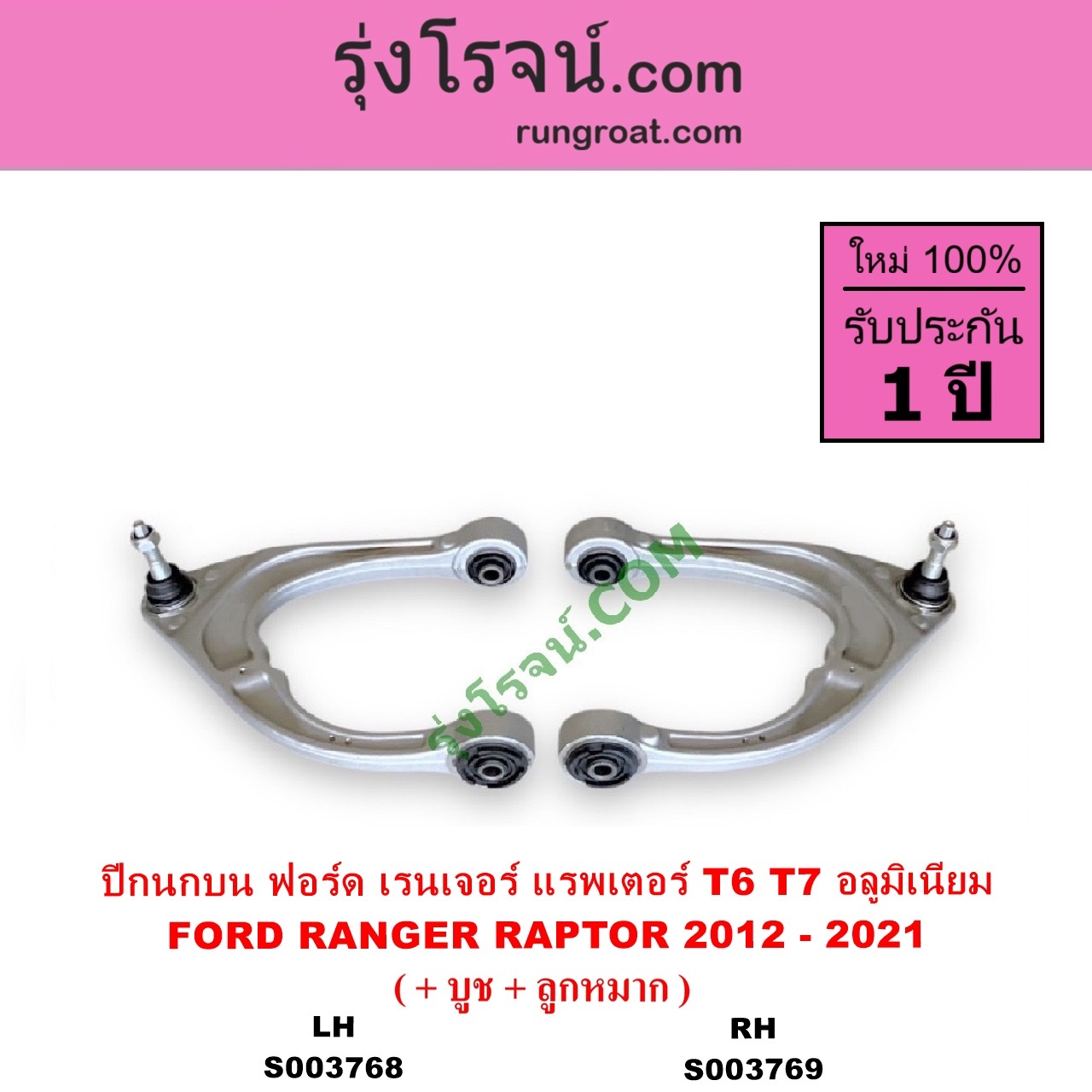 | S003768 | ปีกนกบน (+ บูท + ลูกหมาก) | FORD (ฟอร์ด) / RANGER (เรนเจอร์ T6 T7 2012 – 2021) (ไวล์ดแทรค แร็ปเตอร์ WILD TRAK RAPTOR) | (ตัวท๊อป แร๊พเตอร์ RAPTOR เป็นอลูมิเนียม) LH | ไต้หวัน (ใหม่) |
