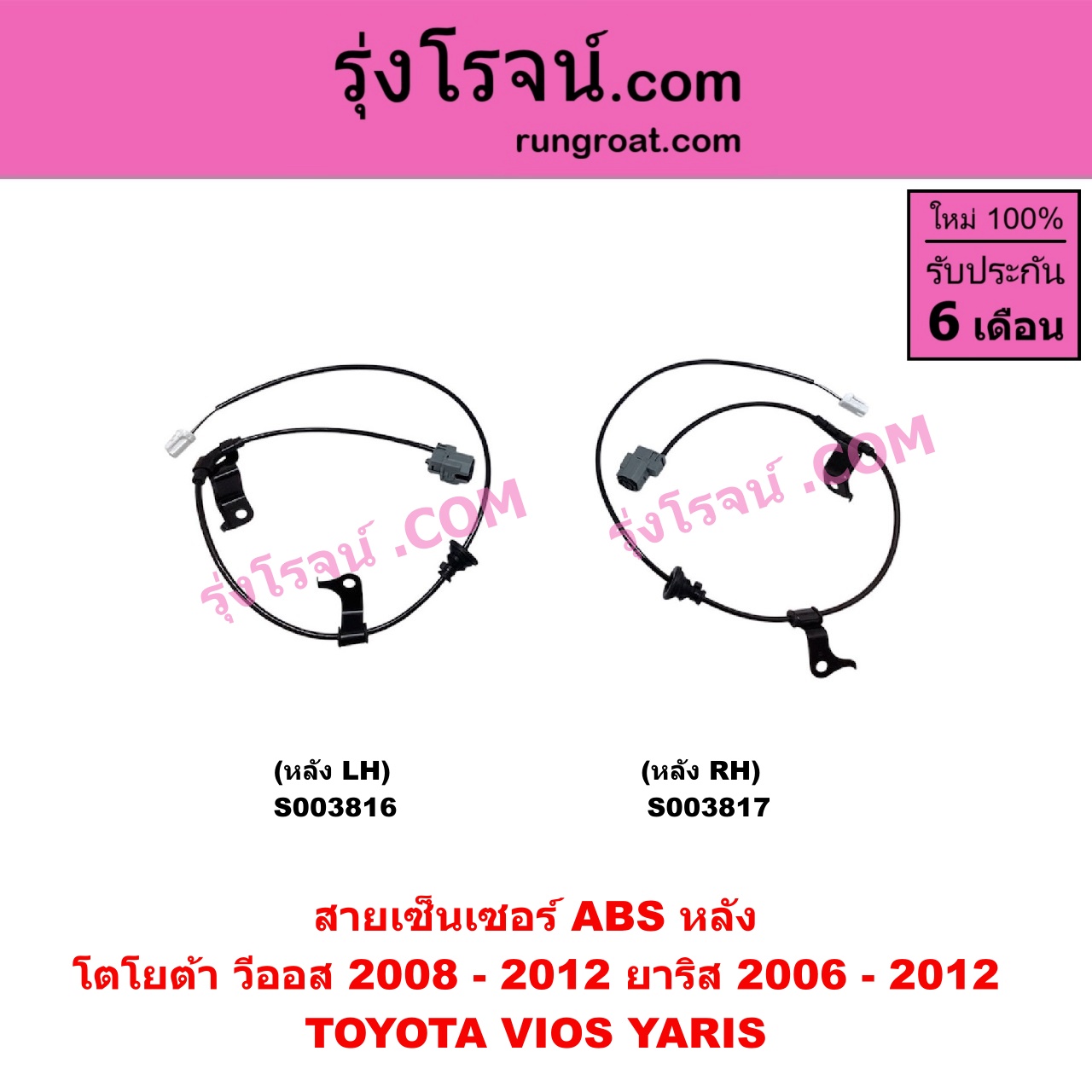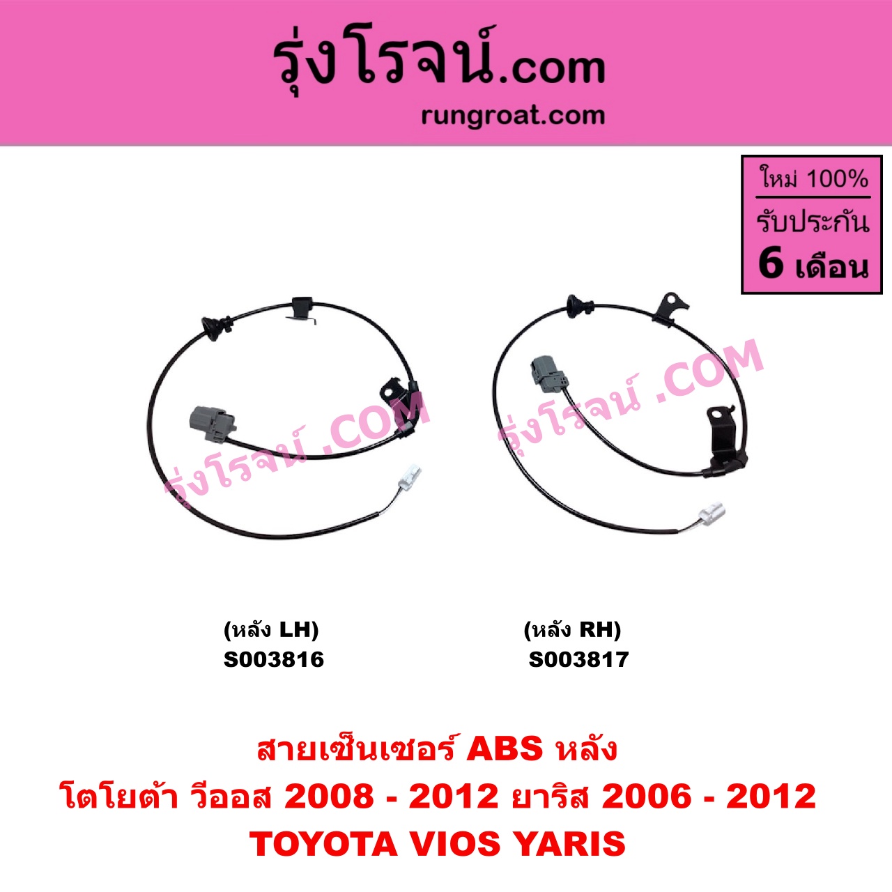 | S003817 | สายเซ็นเซอร์ ABS หลัง | TOYOTA (โตโยต้า) / VIOS (วีออส 2008 – 2012) (รุ่น 2) , TOYOTA (โตโยต้า) / YARIS (ยาริส 2006 – 2012) (รุ่นแรก) |