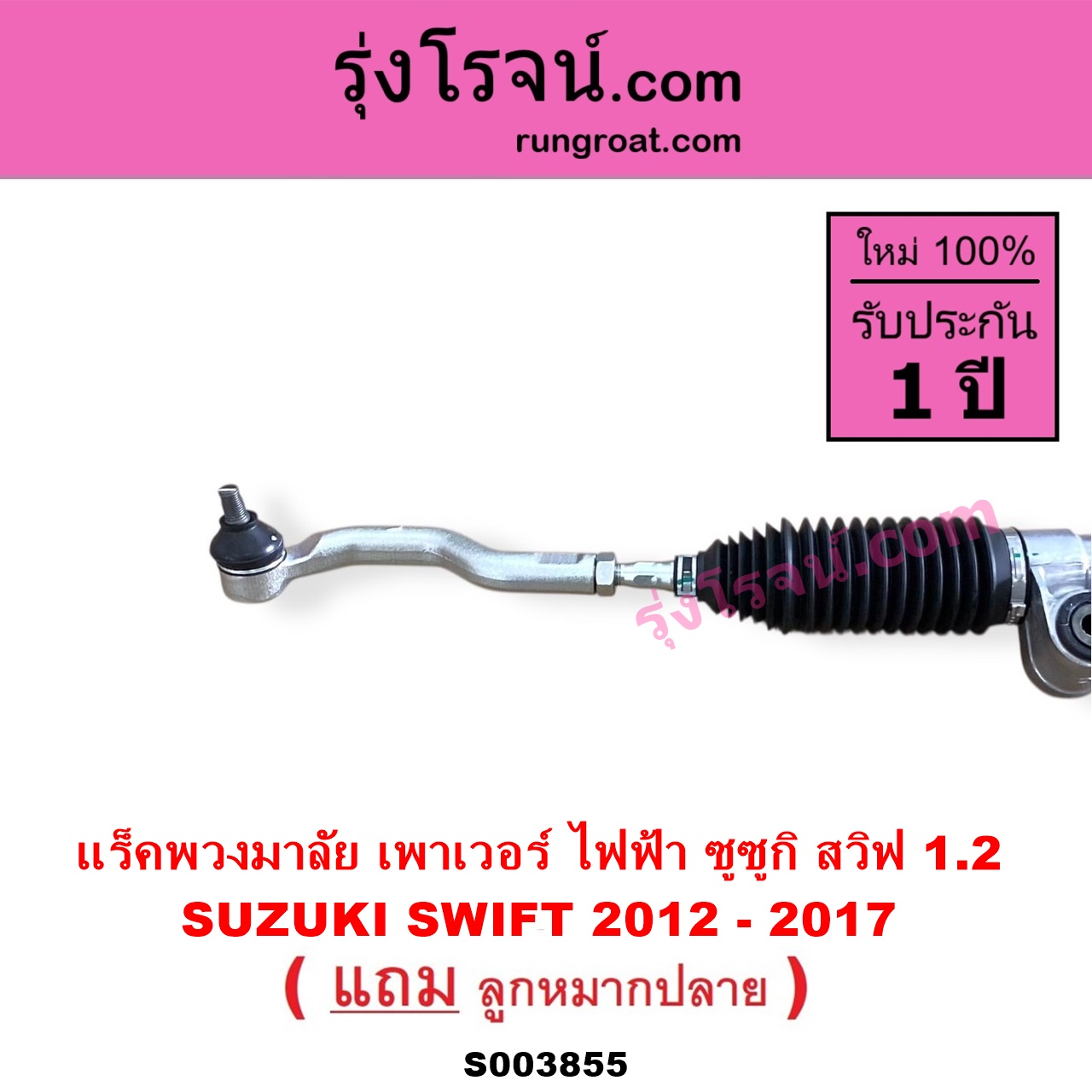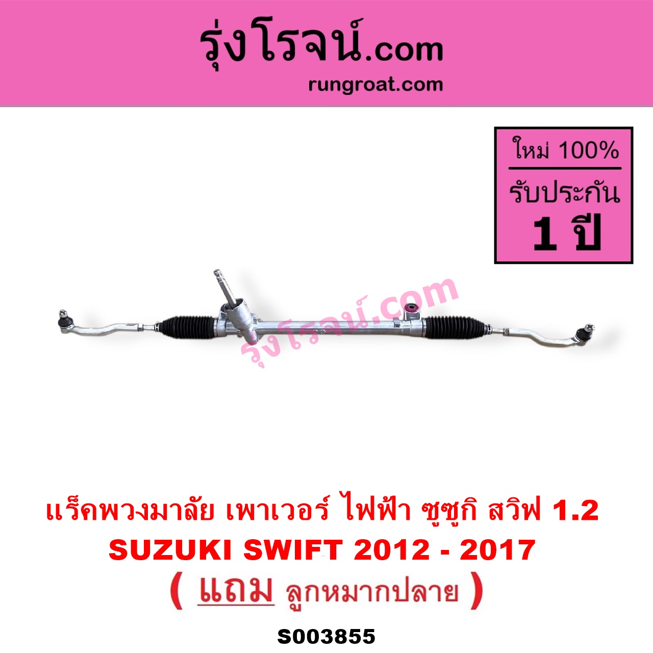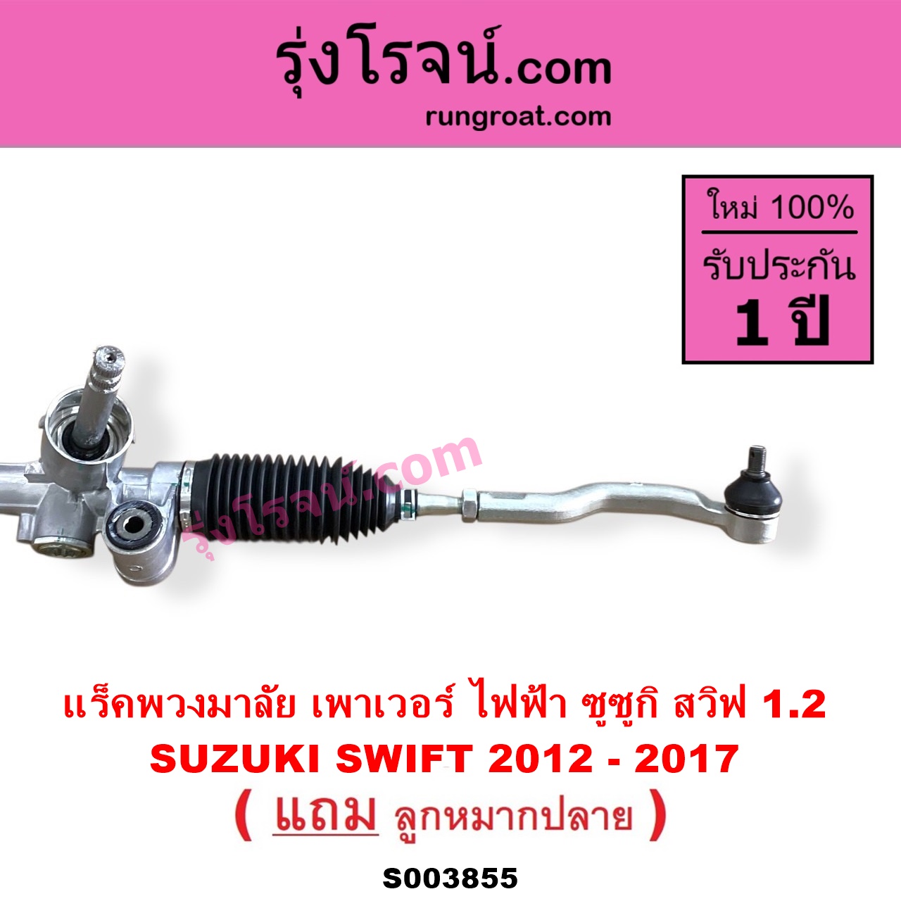 | S003855 | แร็คพวงมาลัย (แร็คเพาเวอร์) | SUZUKI (ซูซูกิ) / SWIFT (สวิฟ 2012 – 2017) (รุ่น 2 เครื่อง 1.2) | ไฟฟ้า (มอเตอร์อยู่ที่คอพวงมาลัย) | ไต้หวัน (ใหม่) |