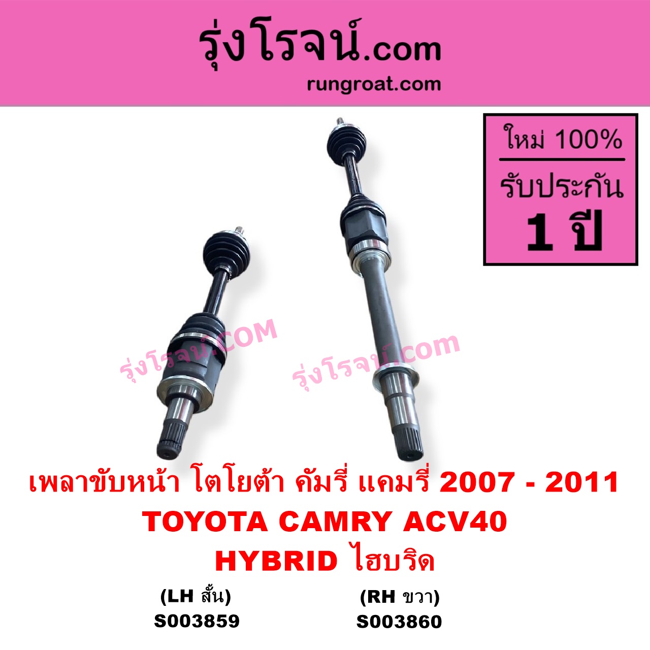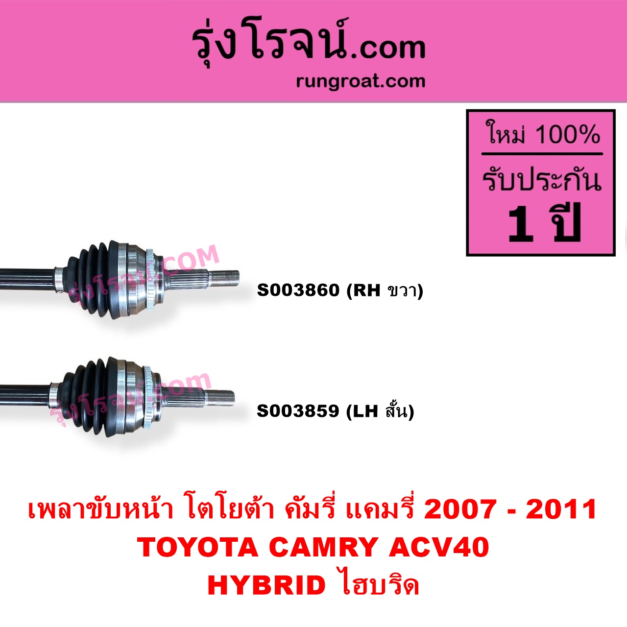 | S003860 | เพลาขับหน้า | TOYOTA (โตโยต้า) / CAMRY (คัมรี่ แคมรี่ 2007 – 2011 ไฮบริด) (ACV40) | (HYBRID ไฮบริด) (RH ยาว) | ไต้หวัน (ใหม่) |