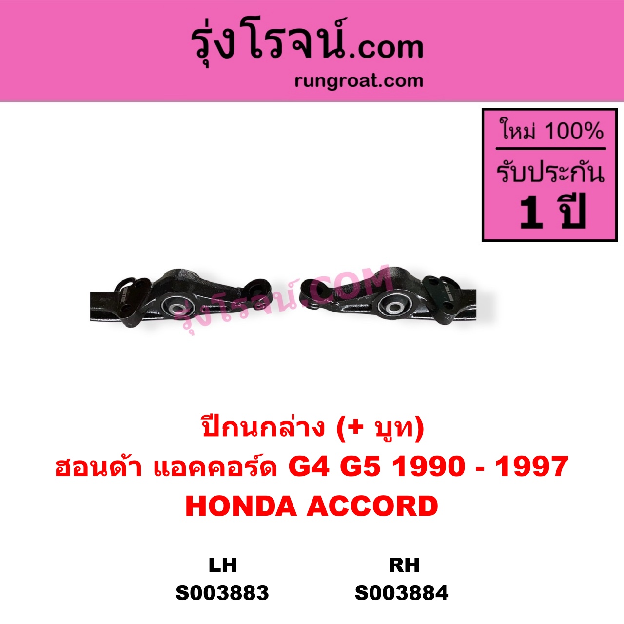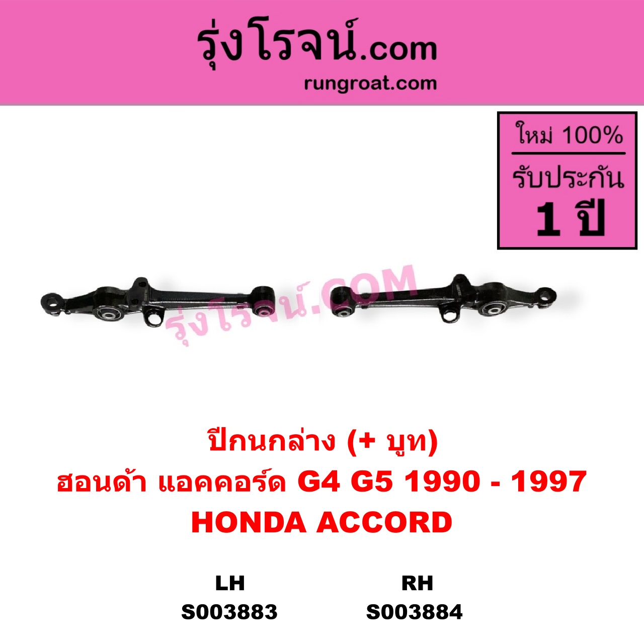 | S003883 | ปีกนกล่าง (+ บูท + ลูกหมาก) | HONDA (ฮอนด้า) / ACCORD (แอคคอร์ด 1990 – 1993) (ตาเพชร / G4) , HONDA (ฮอนด้า) / ACCORD (แอคคอร์ด 1994 – 1997) (ไฟท้ายก้อนเดียว / ไฟท้าย2ก้อน / G5) |