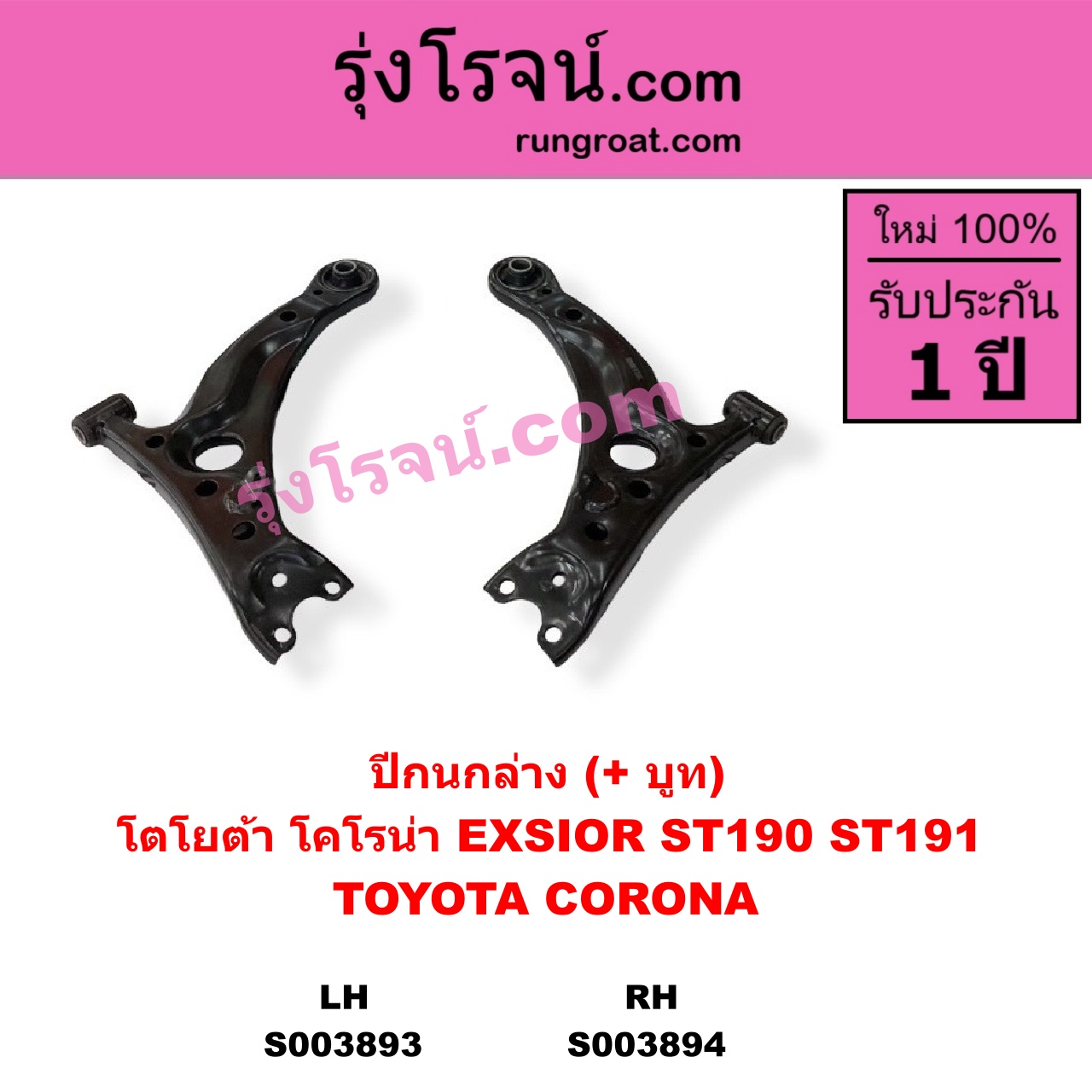 | S003893 | ปีกนกล่าง (+ บูท + ลูกหมาก) | TOYOTA (โตโยต้า) / CORONA (โคโรน่า ST190 / ST191 / EXSIOR) (ท้ายโด่ง) | LH (ไม่มีลูกหมาก) | ไต้หวัน (ใหม่) |