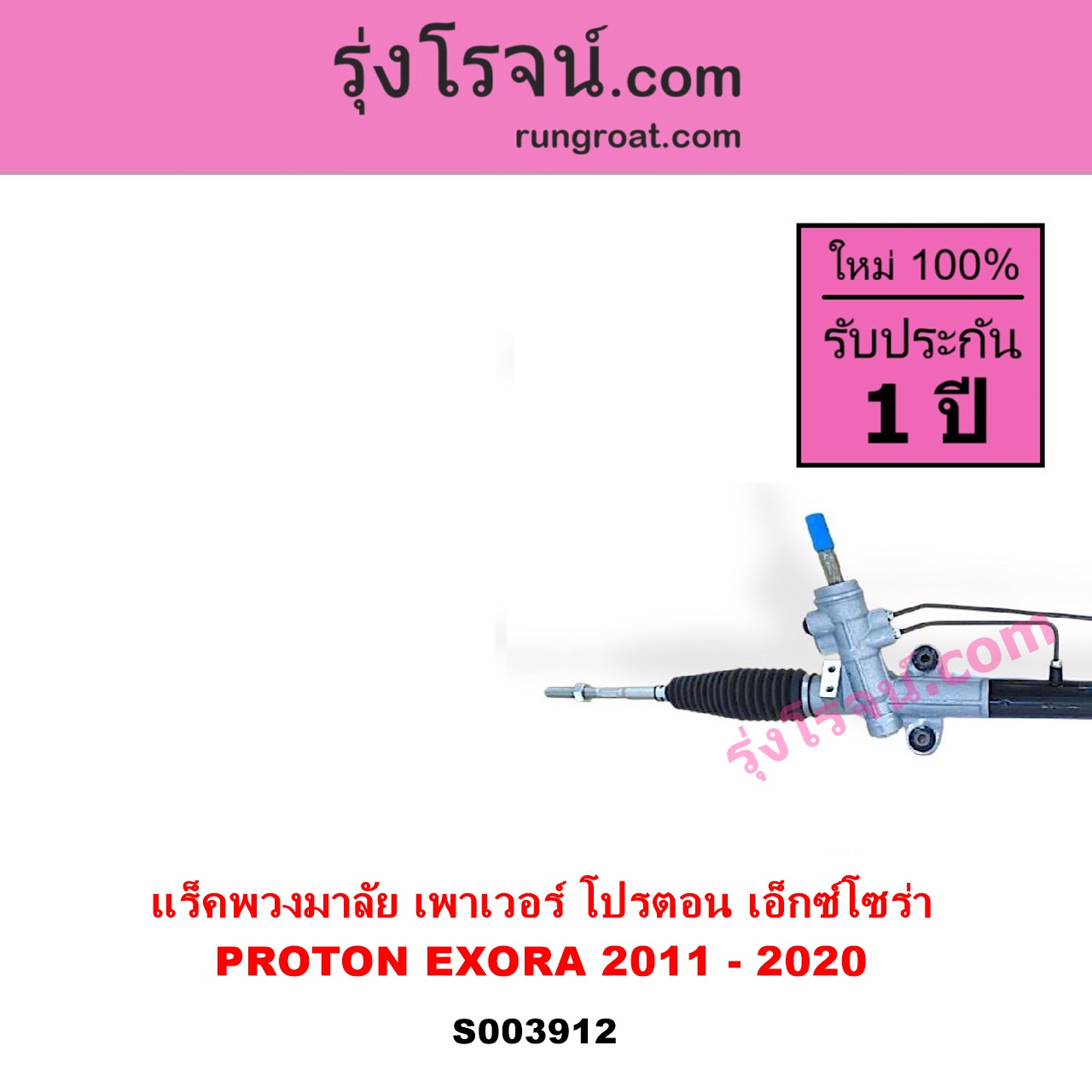 | S003912 | แร็คพวงมาลัย (แร็คเพาเวอร์) | PROTON (โปรตอน) / EXORA (เอ็กซ์โซร่า) (2011 – 2020) | POWER (ไม่มีลูกหมากปลาย) | ไต้หวัน (ใหม่) |