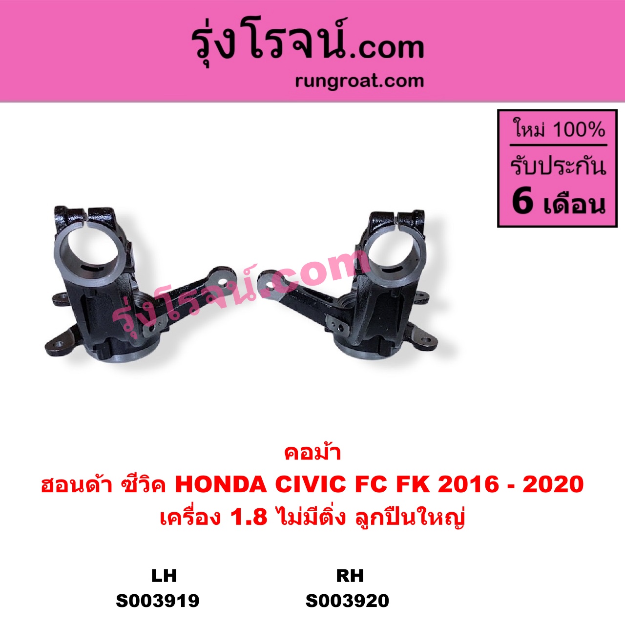 | S003919 | คอม้า | HONDA (ฮอนด้า) / CIVIC (ซีวิค 2016 – 2020) (FC / FK) | (เครื่อง 1.8 ไม่มีติ่ง ลูกปืนใหญ่) LH | ไต้หวัน (ใหม่) |