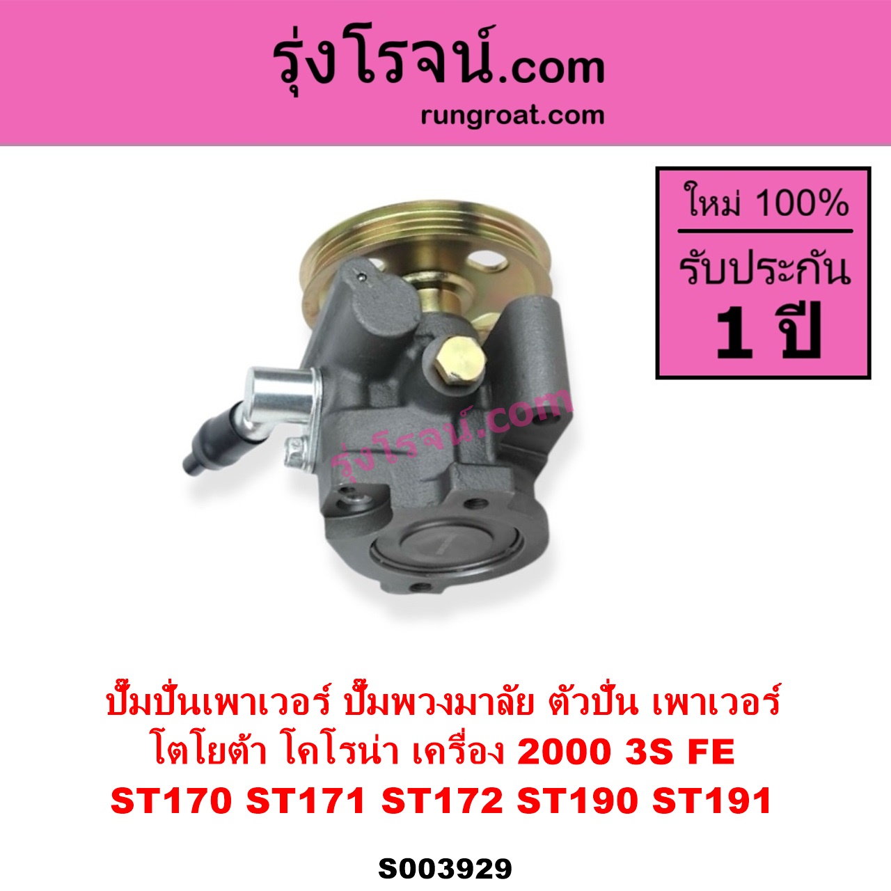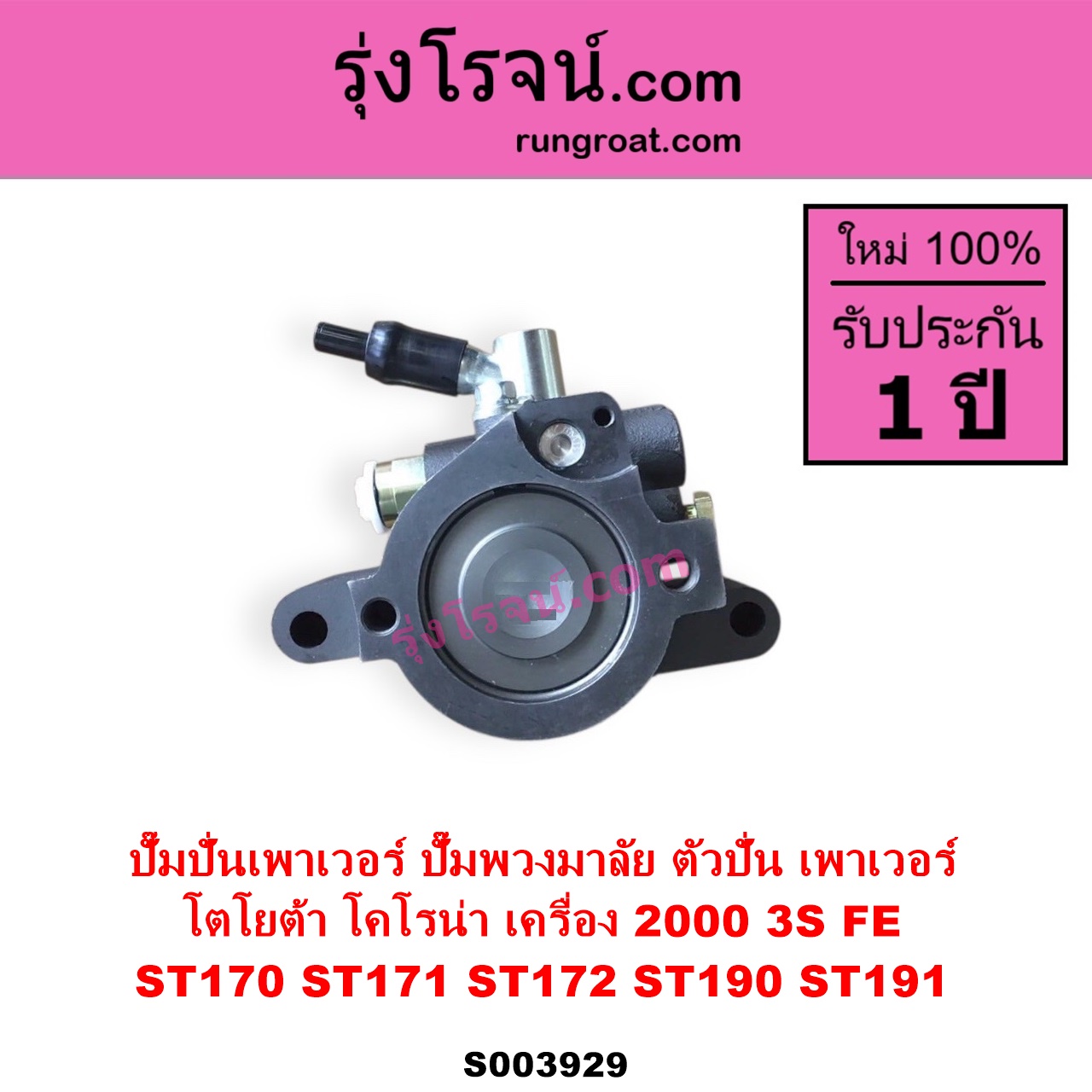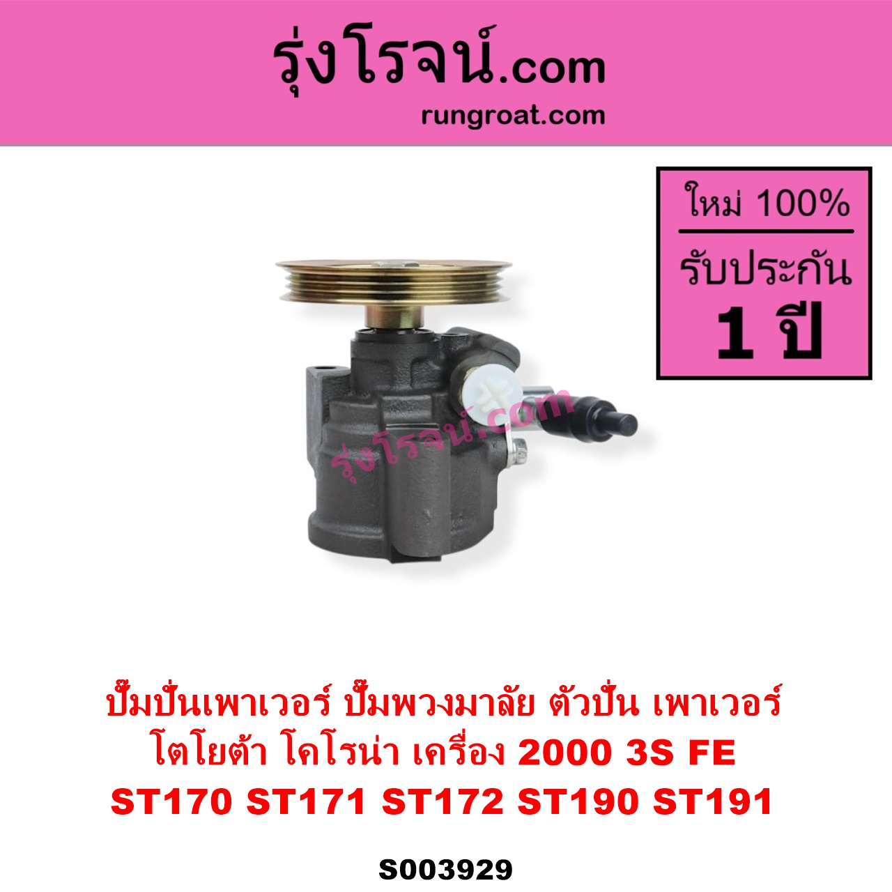 | S003929 | ปั๊มปั่นเพาเวอร์ (ปั๊มพวงมาลัย ตัวปั่น เพาเวอร์) | TOYOTA (โตโยต้า) / CORONA (โคโรน่า ST170 ST171 ST172) , TOYOTA (โตโยต้า) / CORONA (โคโรน่า ST190 / ST191 / EXSIOR) (ท้ายโด่ง) |