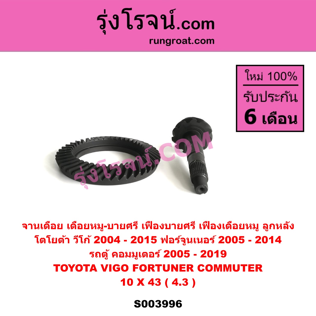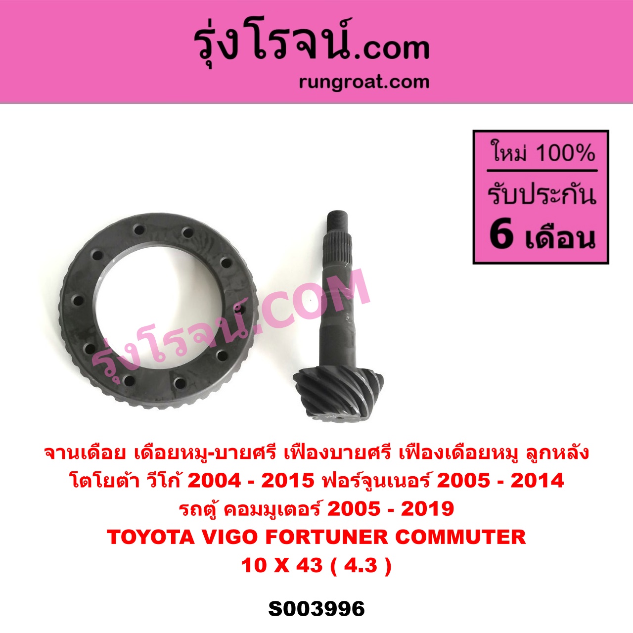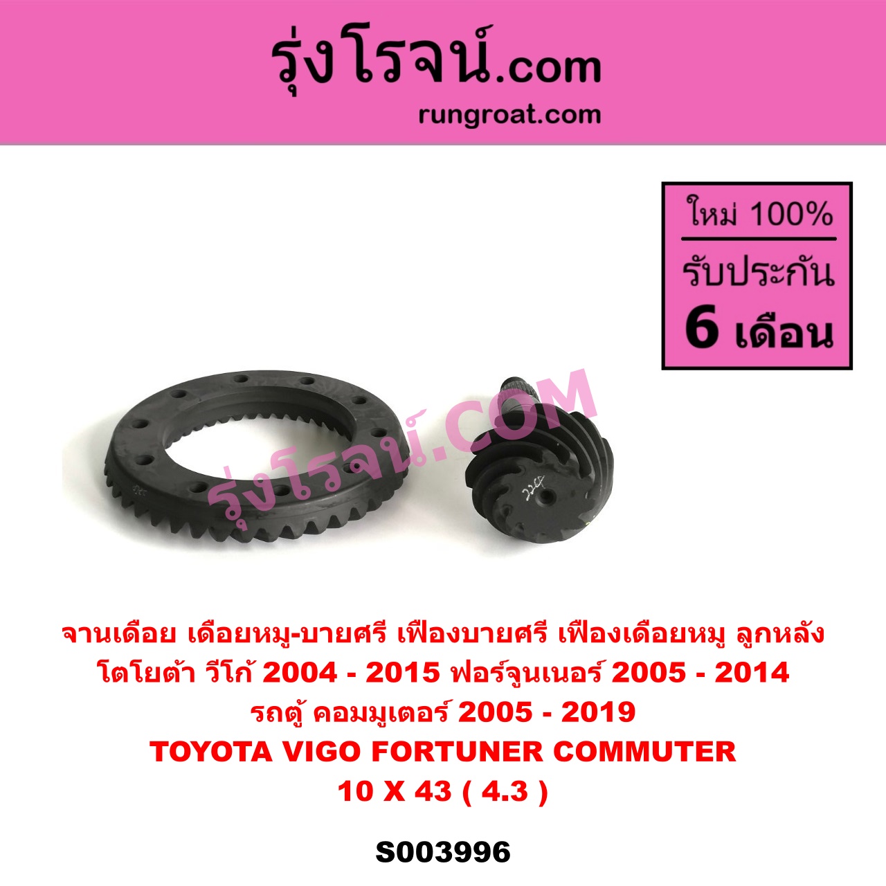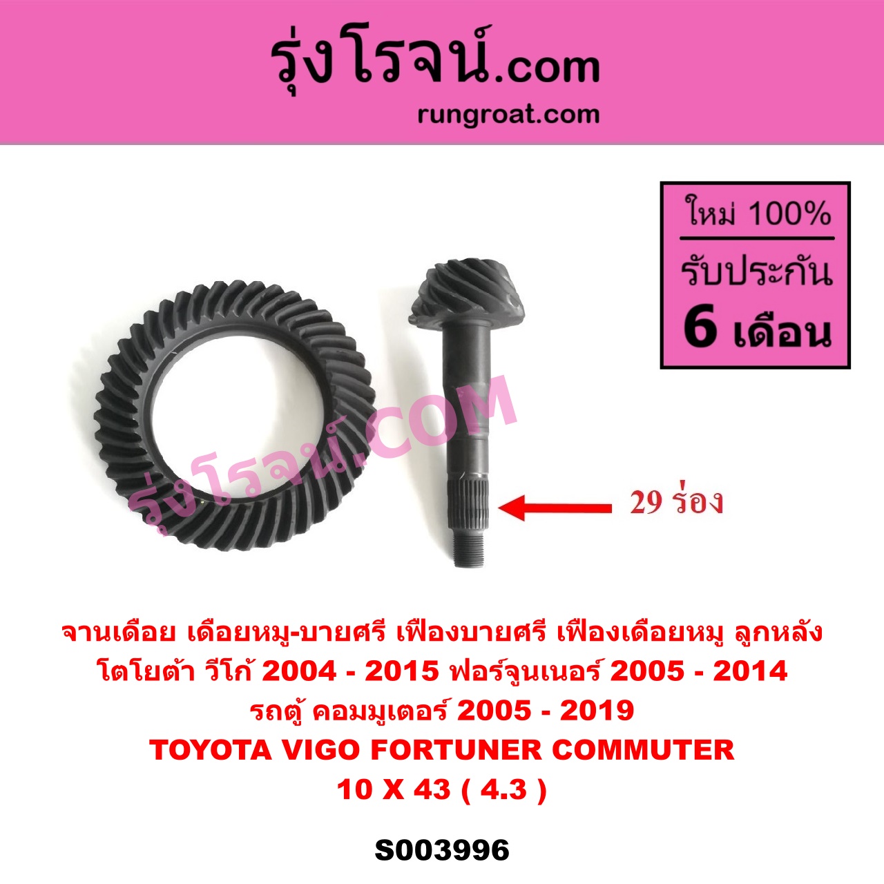 | S003996 | จานเดือย (เดือยหมู-บายศรี, เฟืองบายศรี เฟืองเดือยหมู) | TOYOTA (โตโยต้า) / COMMUTER (รถตู้ คอมมิวเตอร์ คอมมูเตอร์ 2005 – 2019) , TOYOTA (โตโยต้า) / FORTUNER (ฟอร์จูนเนอร์ 2005 – 2014) (รุ่นแรก) , TOYOTA (โตโยต้า) / VIGO (วีโก้ 2004 – 2015) |